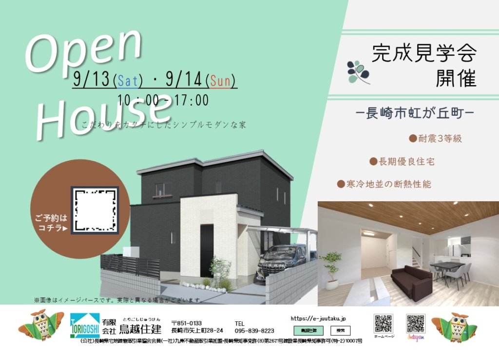 お施主様のご厚意により 9月13日(土)と9月14日(日)に長崎市虹が丘町で、完成見学会を開催させていただくことになりました。この機会に是非、家事動線や収納・生活スタイルを考えた細やかな工夫を体感してみてください。