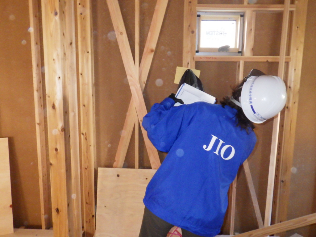 先週、日本住宅保証検査機構(JIO)により実施された戸建て住宅での躯体検査の様子です。