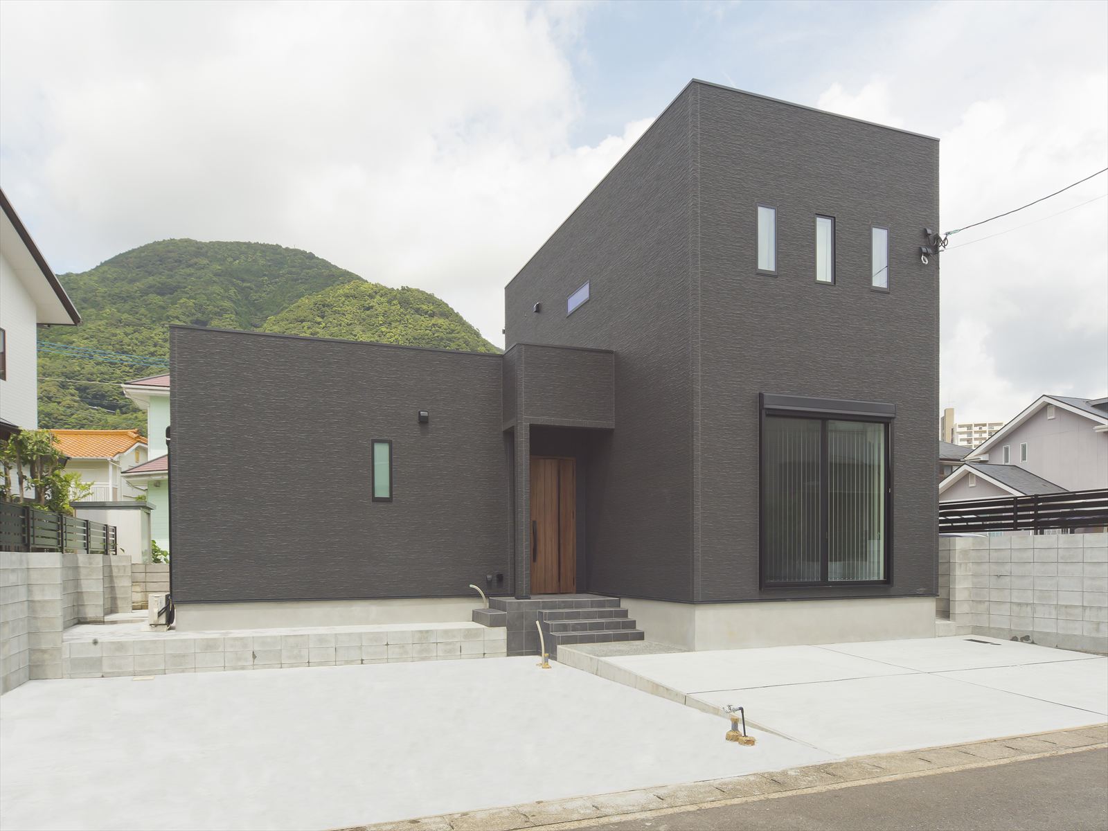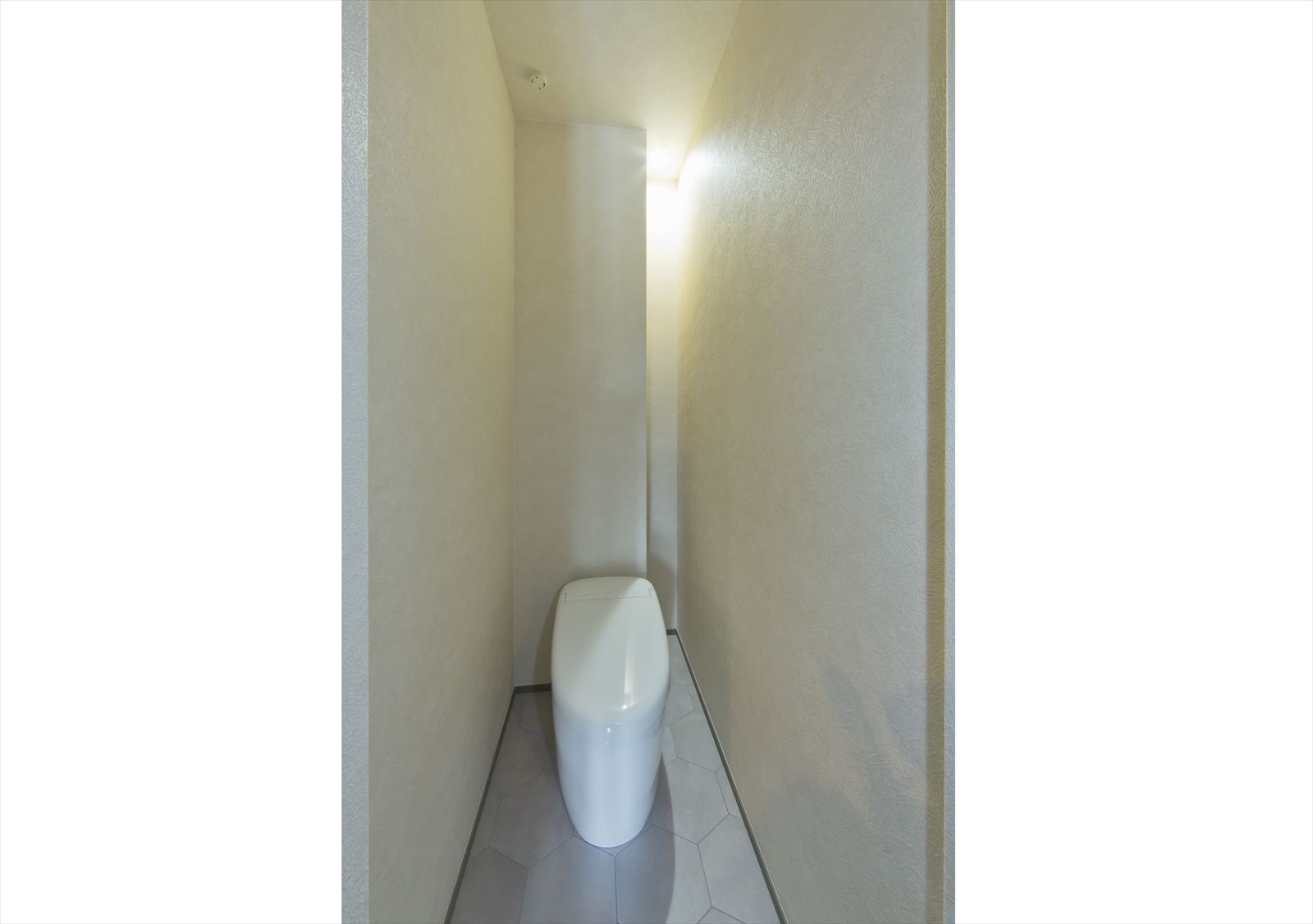 細部にまで、こだわって考え抜かれたK様邸は、どこを切り取っても完璧です。モノトーンで仕上げられた優雅な外観。玄関ドアを開けると左右に土間スペースが広がりシューズクロークや収納を確保。玄関ホールには、帰宅後に直行できるモールテックスをあしらった洗面化粧台があり玄関側から見ないような工夫がされています。リビングの床材は、高級感のあるブラックウォールナットを採用。ほかにもシステムキッチン・ハイドア・照明器具・コンセントプレートなど、こだわりは尽きません。