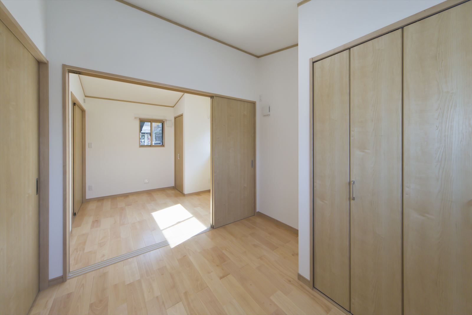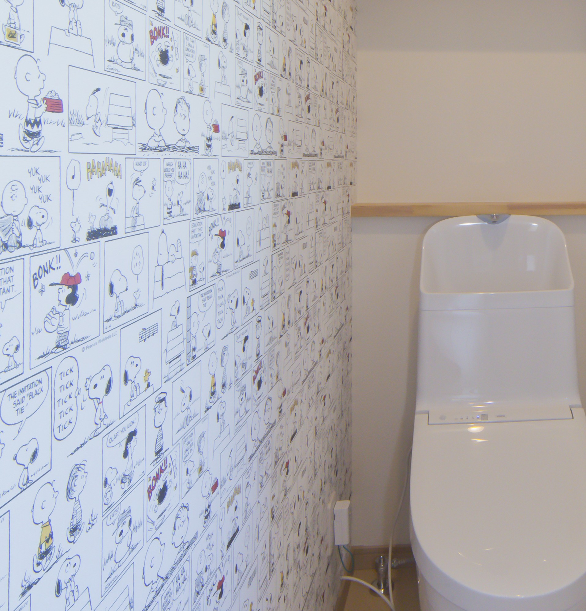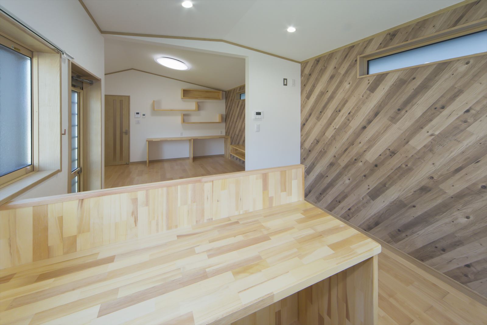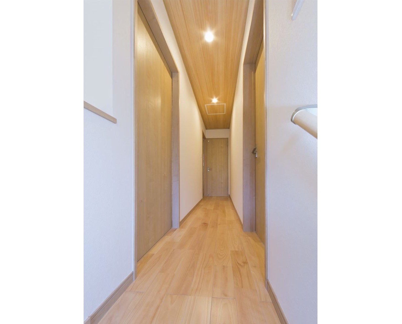 リフォーム工事により外観・内観ともに新しくなったこちらのお宅は、新築住宅そのもの。玄関ドアを開くと奥へ長い土間スペースがあり、そこにあるスライドドアの中はシューズクロークとなっています。正面には、木の枝をモチーフにした身長計付き壁紙が貼られており、これからのお子様の成長を見守ってくれることでしょう。室内に入り長い廊下の先は、LDKスペース。キッチンは、窓側に据え付けているので手元が明るく調理も快適。使い勝手を重視した、キッチンカウンターやリビング・洋室のオリジナル造作家具も見どころです。