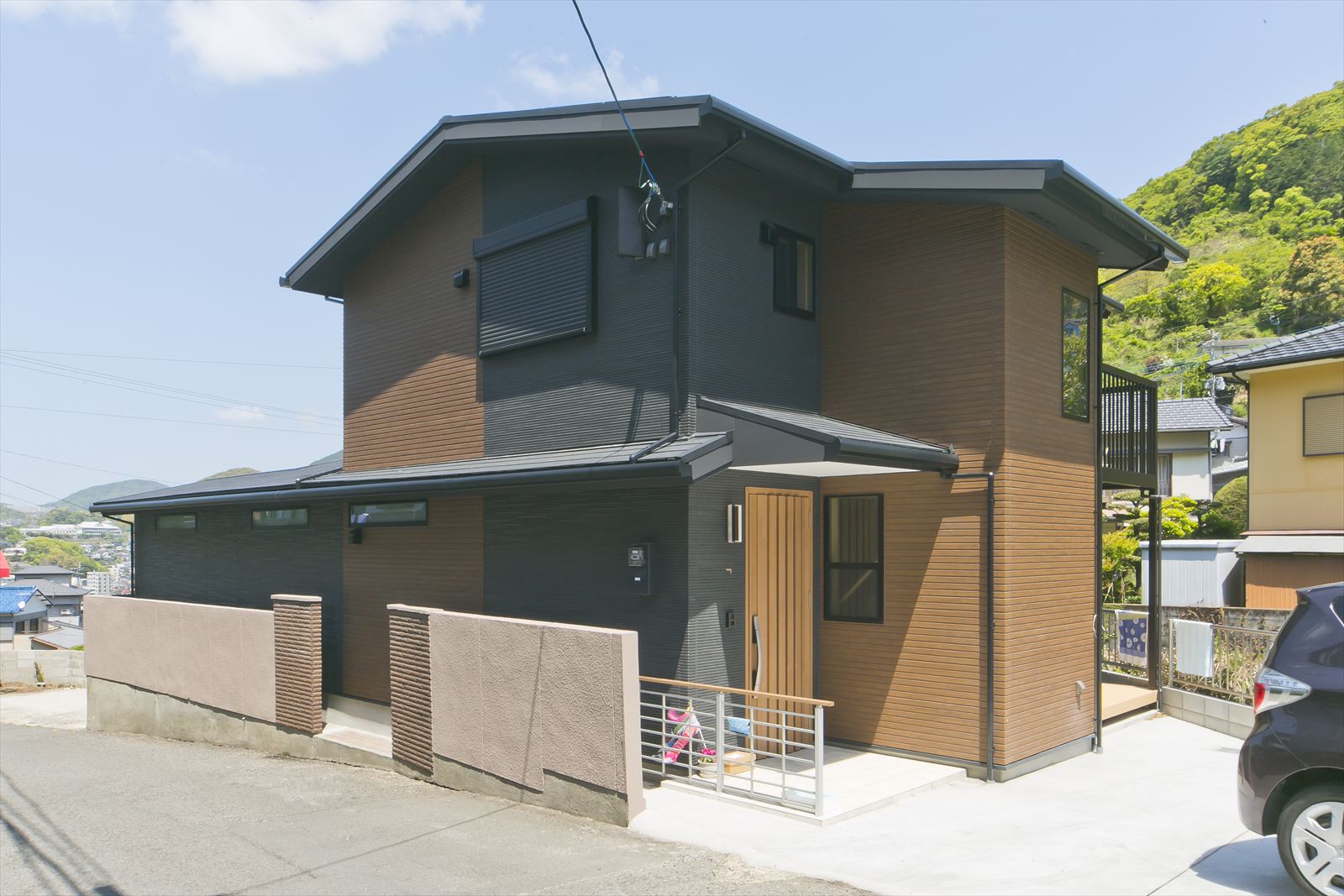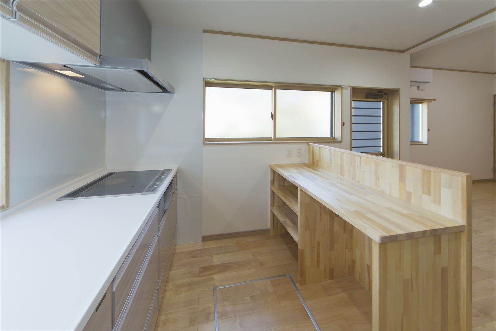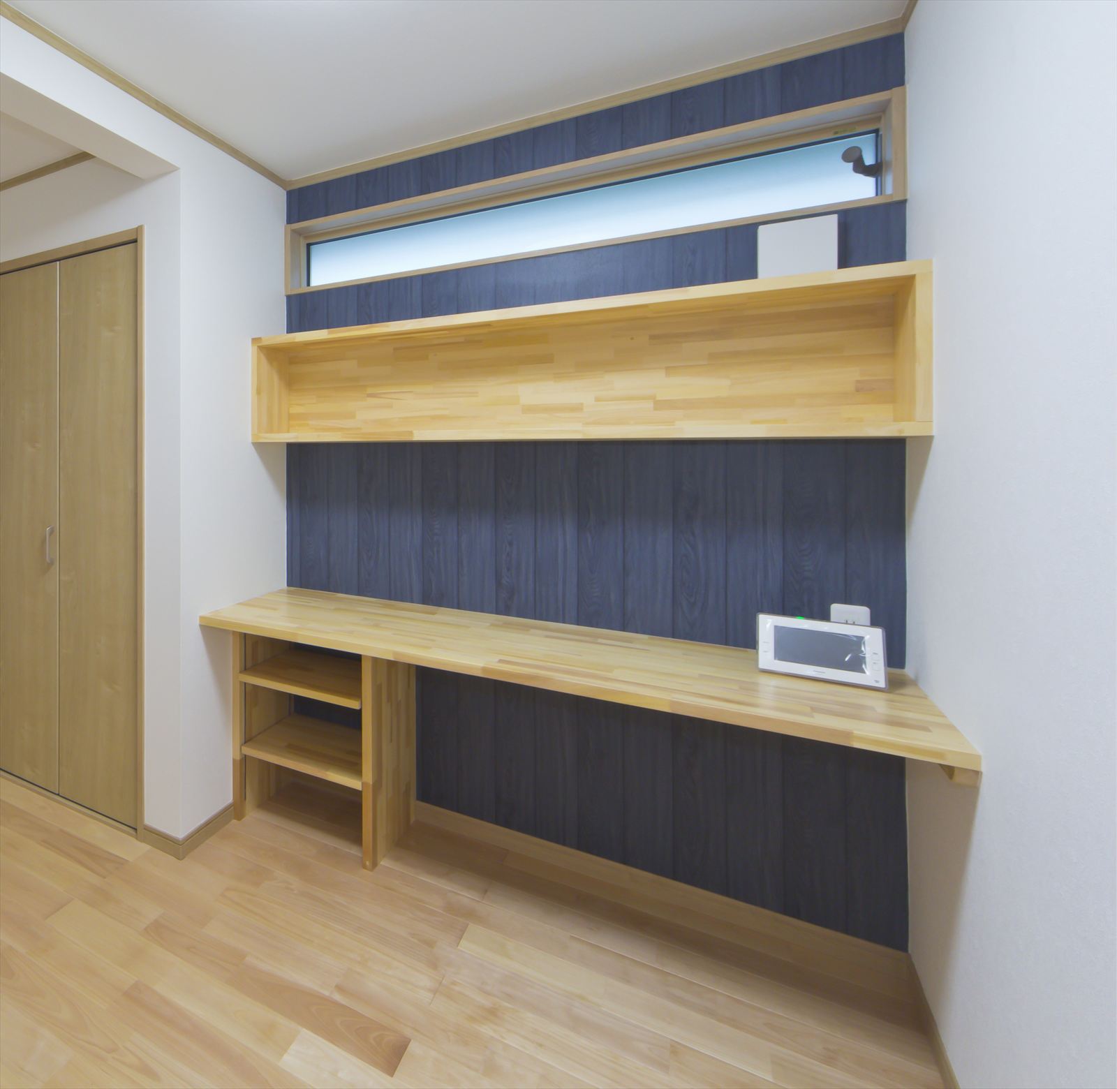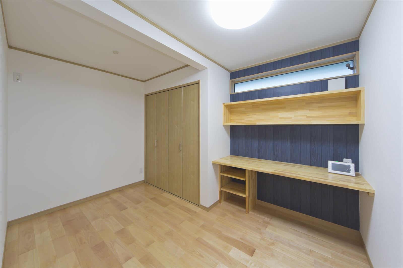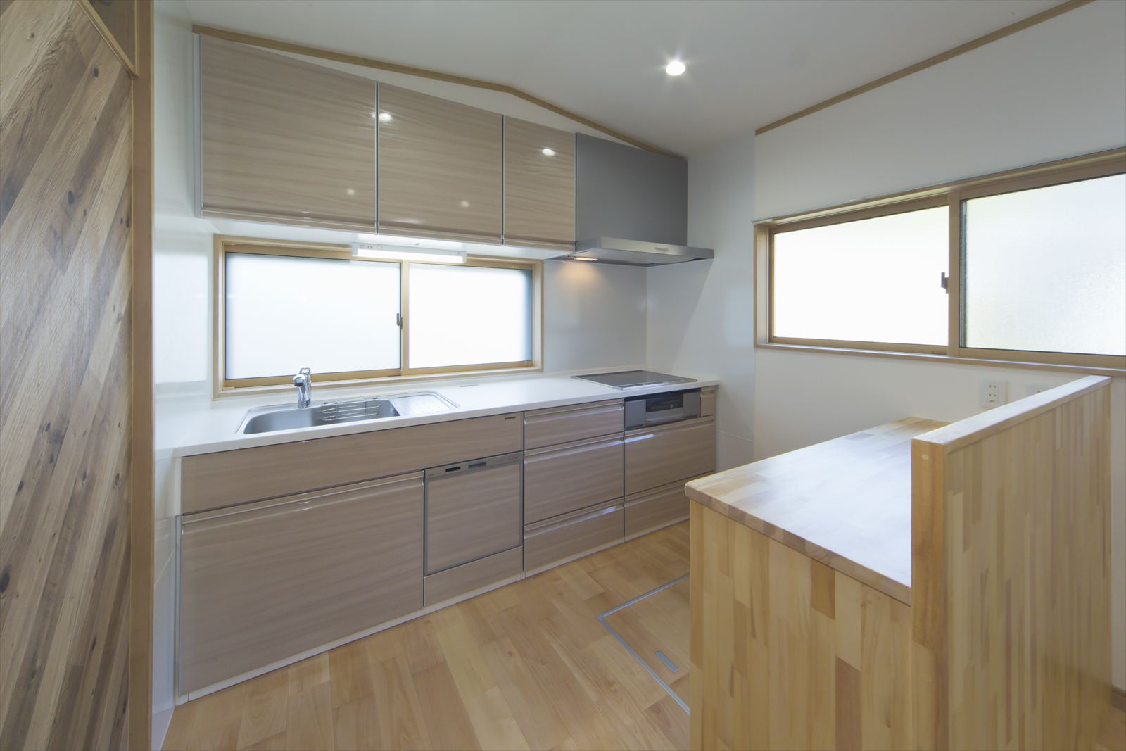 リフォーム工事により外観・内観ともに新しくなったこちらのお宅は、新築住宅そのもの。玄関ドアを開くと奥へ長い土間スペースがあり、そこにあるスライドドアの中はシューズクロークとなっています。正面には、木の枝をモチーフにした身長計付き壁紙が貼られており、これからのお子様の成長を見守ってくれることでしょう。室内に入り長い廊下の先は、LDKスペース。キッチンは、窓側に据え付けているので手元が明るく調理も快適。使い勝手を重視した、キッチンカウンターやリビング・洋室のオリジナル造作家具も見どころです。