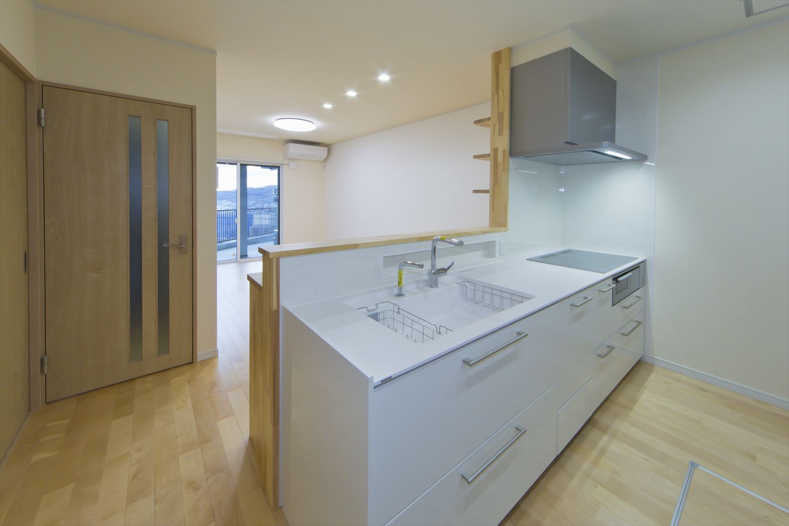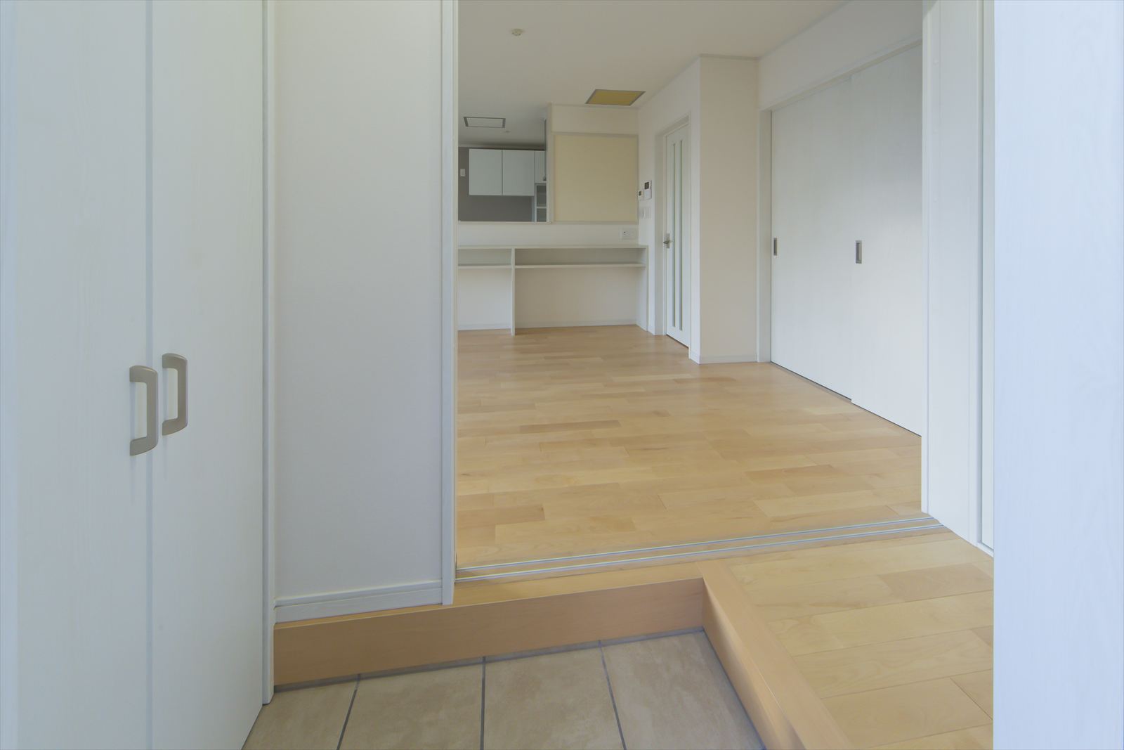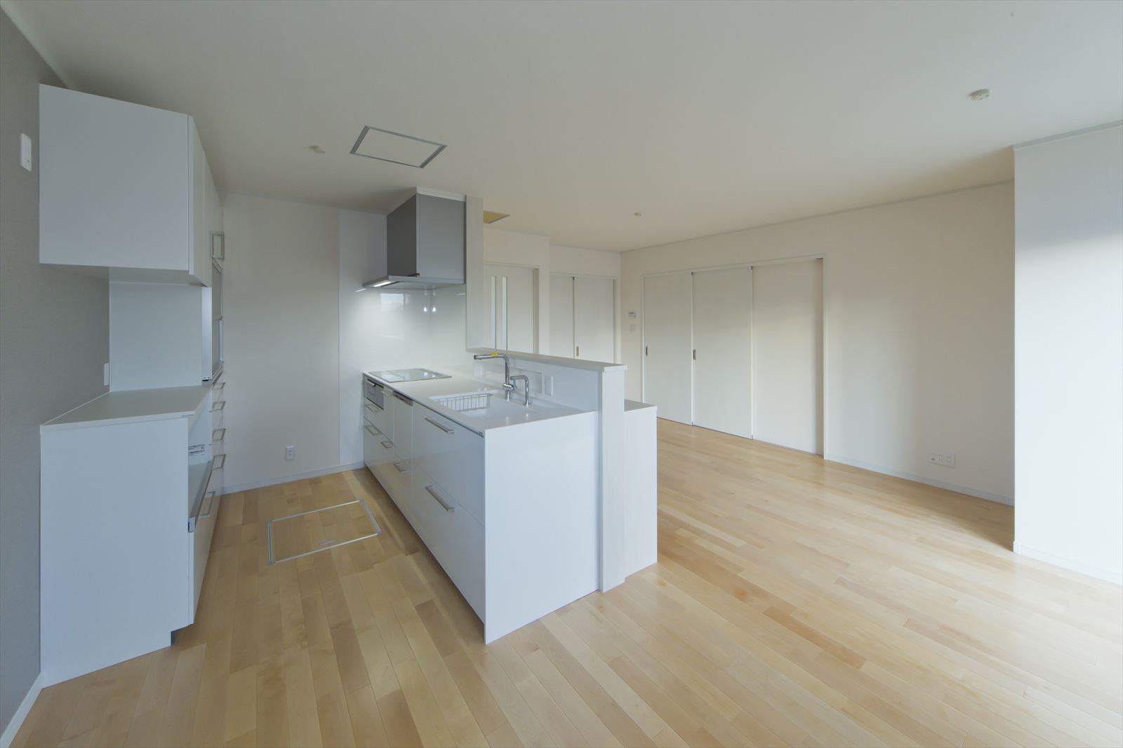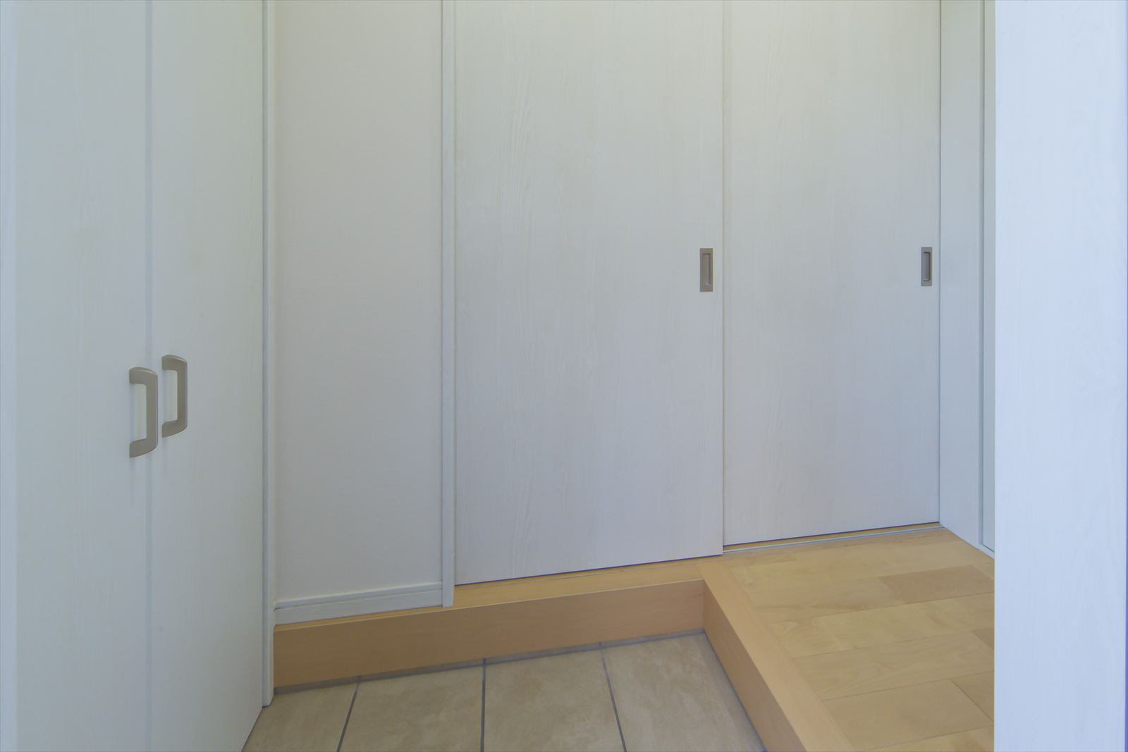 建物と駐車場に高低差のある自宅敷地を持つT様が、建て替えを期にエレベーターのある家づくりを選択なされました。それは、階段の上り下りのストレスをなくすためだけでなく、将来の事を考えてのご決断でした。駐車場に車を止め駐車場内のエレベーターで、上階へ上れば2世帯それぞれの玄関があり、ほとんど雨に濡れることもなく自宅へ帰ることができます。また、車を利用せず斜面側の階段から出入りするときのために、別の玄関も配置しました。内部は完全分離型二世帯住宅なので、リビング・水廻り設備・バルコニなどすべての生活空間が分かれています。