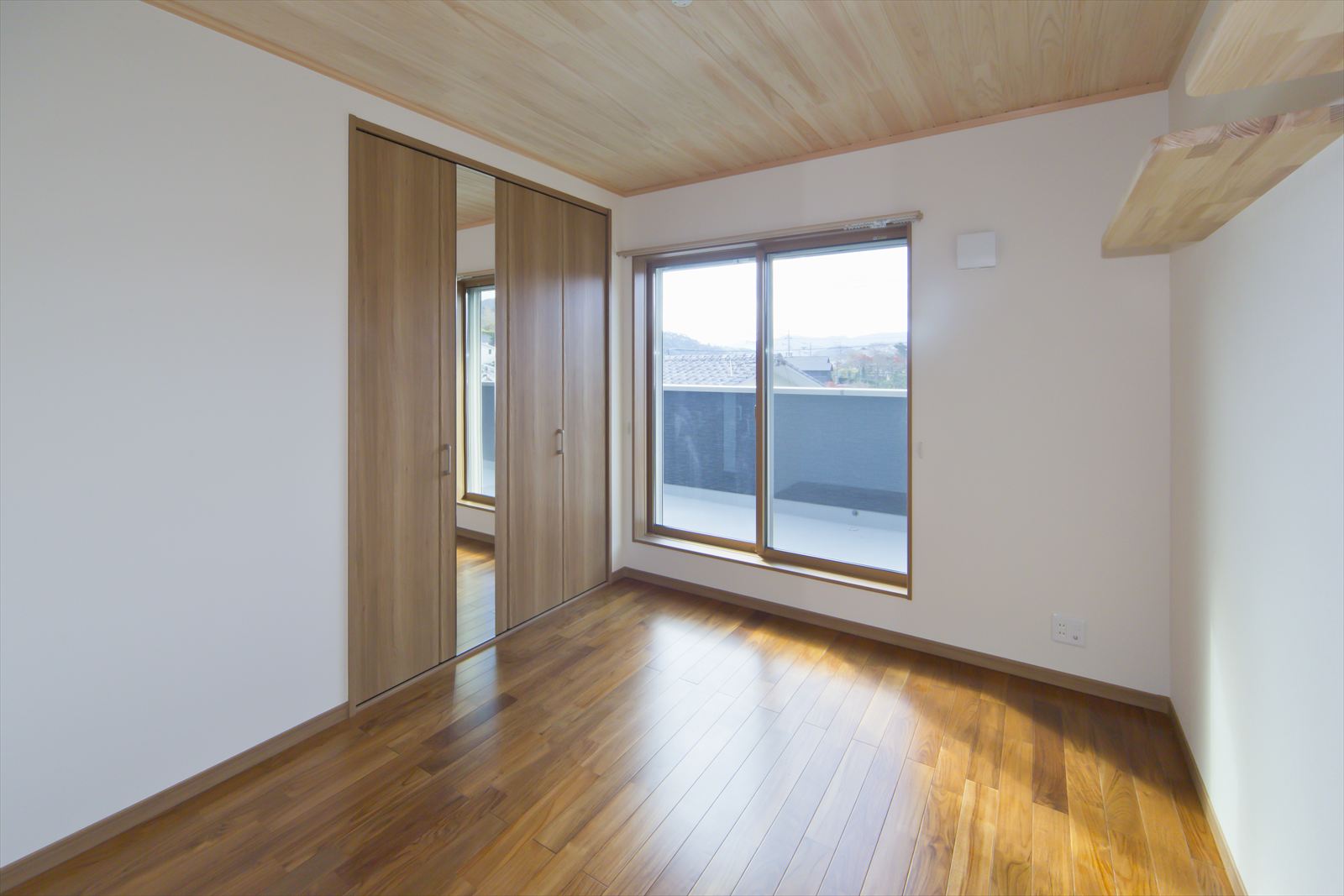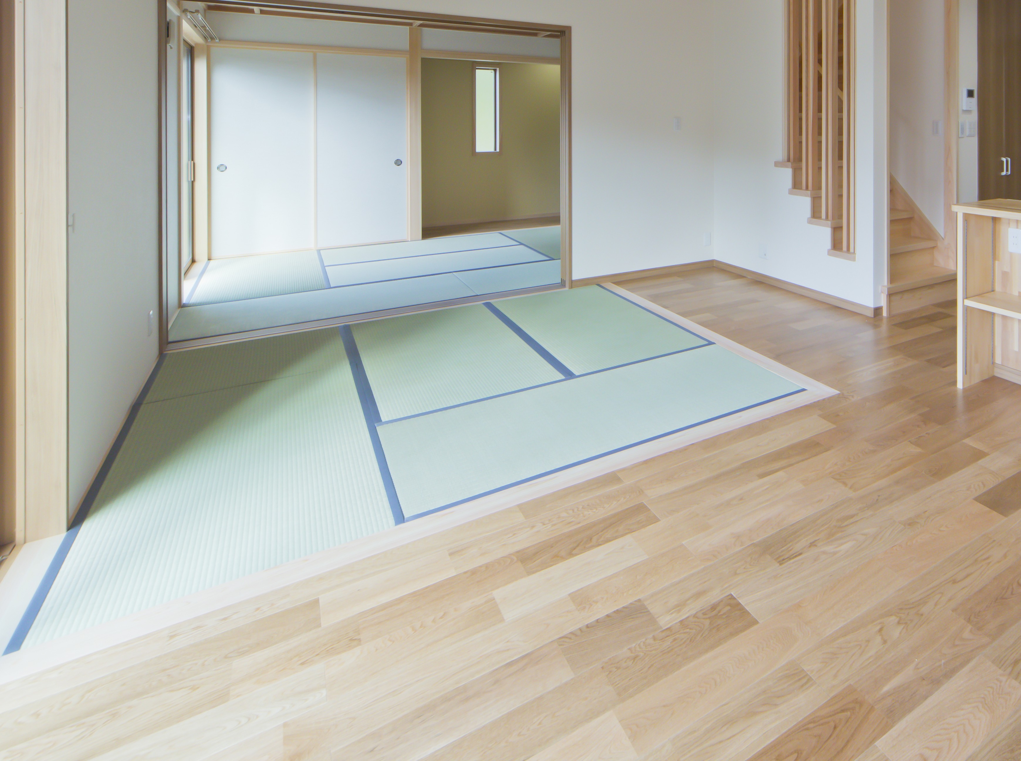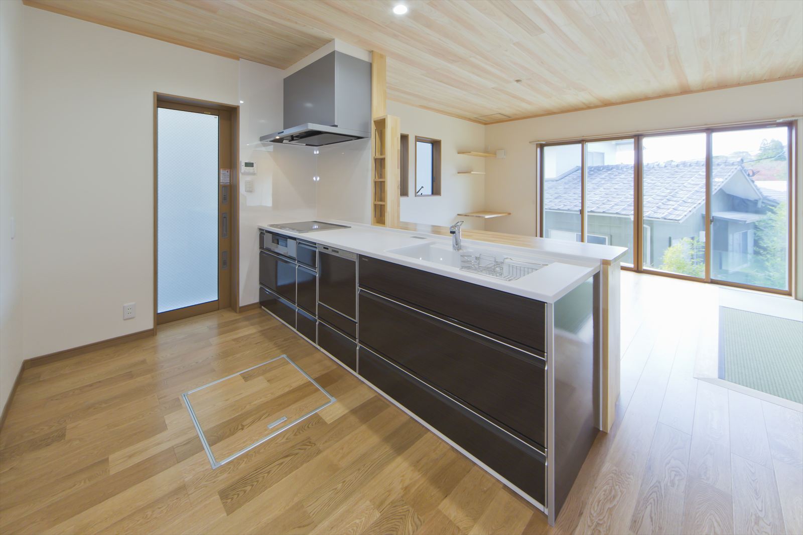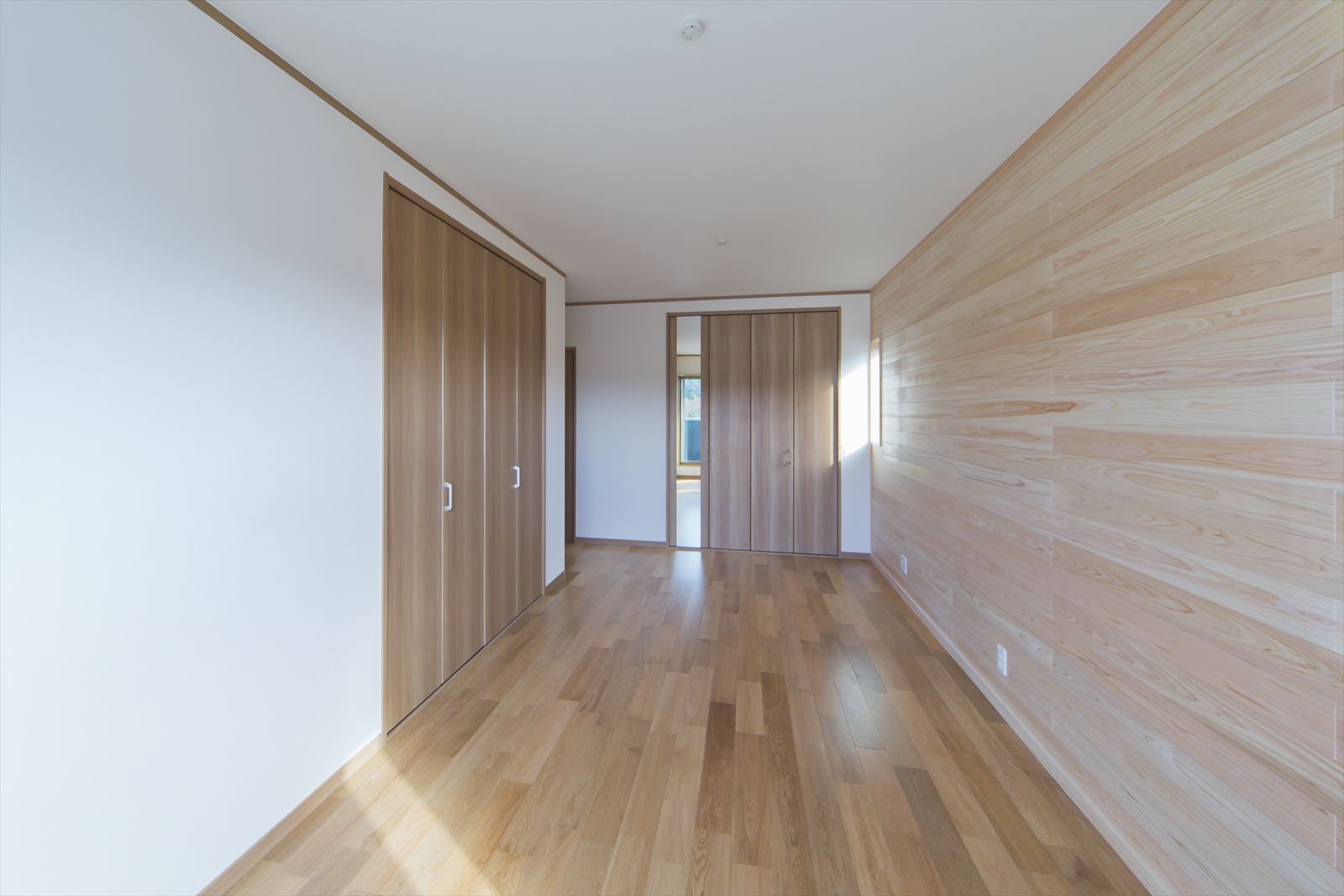 リビング天井には桧、和室天井は杉、プライベートルームの壁や天井に桧など、自然素材をふんだんに使用したお宅です。家中に広がる木の香りと美しい木目、ナチュラルな色合いは、住む人にやすらぎと安心感を与えてくれます。また、玄関とシューズクロークの土間に敷き詰められた輝く御影石は高級感と重厚感にあふれ、訪れた人の第一印象となることでしょう。他にもトイレ手洗い器に信楽焼の器を使用したり、キッチンカウンターの壁にマグネットクロスで作った掲示板を設置したりと目を引くポイントが、たくさんあります。