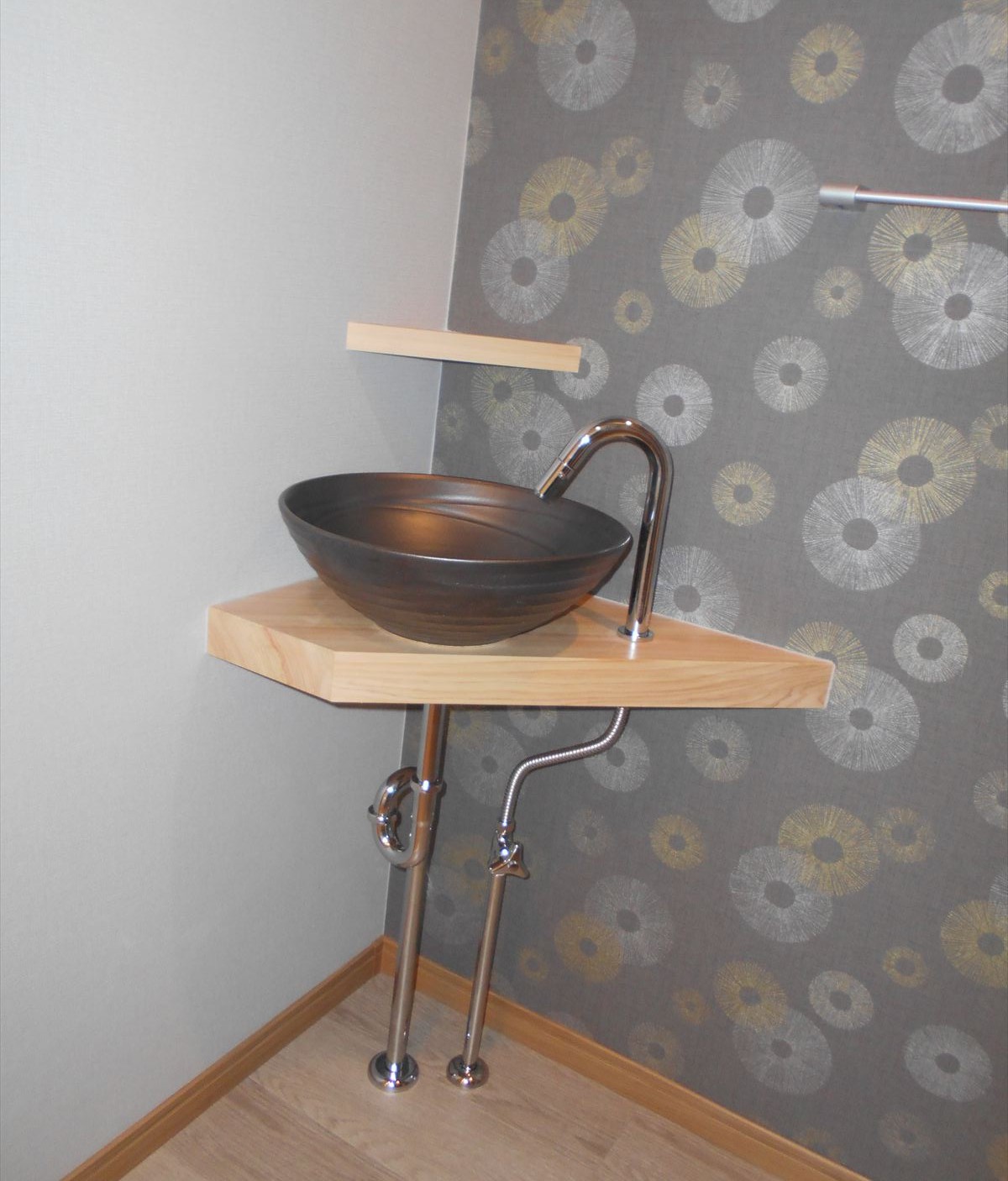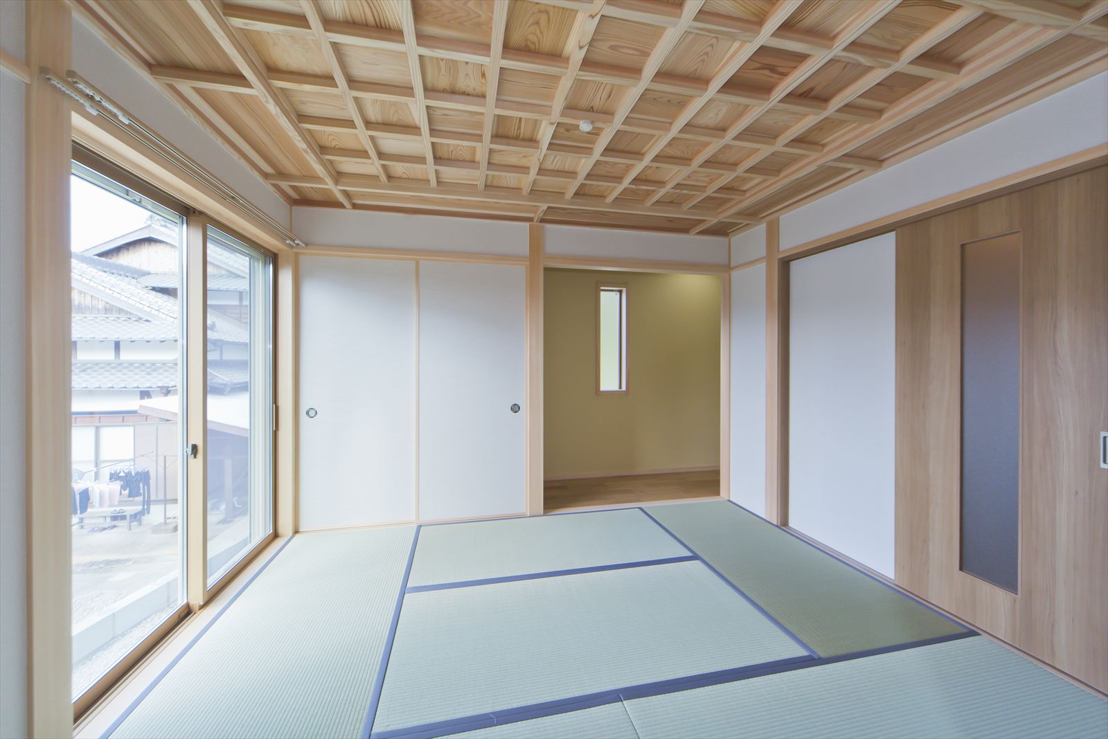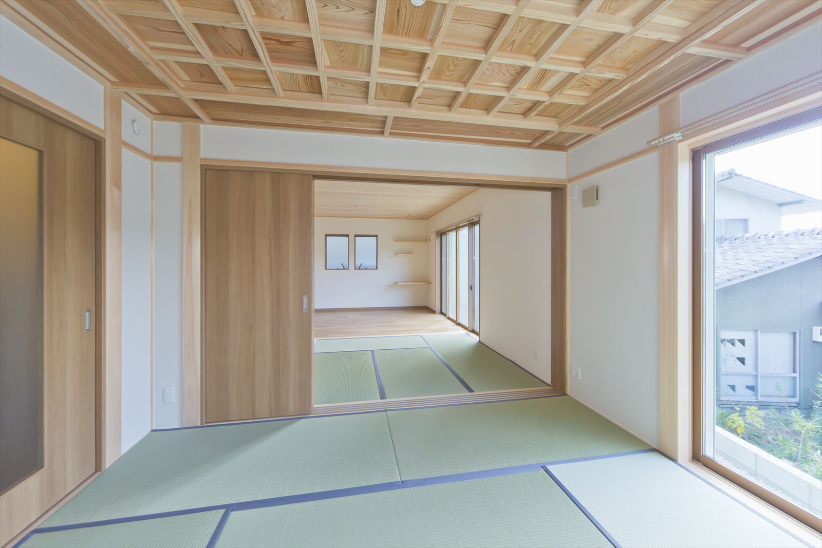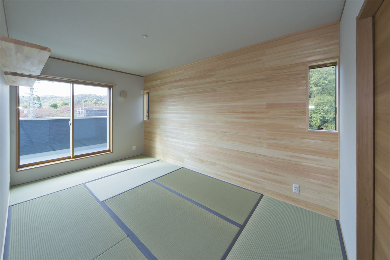 リビング天井には桧、和室天井は杉、プライベートルームの壁や天井に桧など、自然素材をふんだんに使用したお宅です。家中に広がる木の香りと美しい木目、ナチュラルな色合いは、住む人にやすらぎと安心感を与えてくれます。また、玄関とシューズクロークの土間に敷き詰められた輝く御影石は高級感と重厚感にあふれ、訪れた人の第一印象となることでしょう。他にもトイレ手洗い器に信楽焼の器を使用したり、キッチンカウンターの壁にマグネットクロスで作った掲示板を設置したりと目を引くポイントが、たくさんあります。