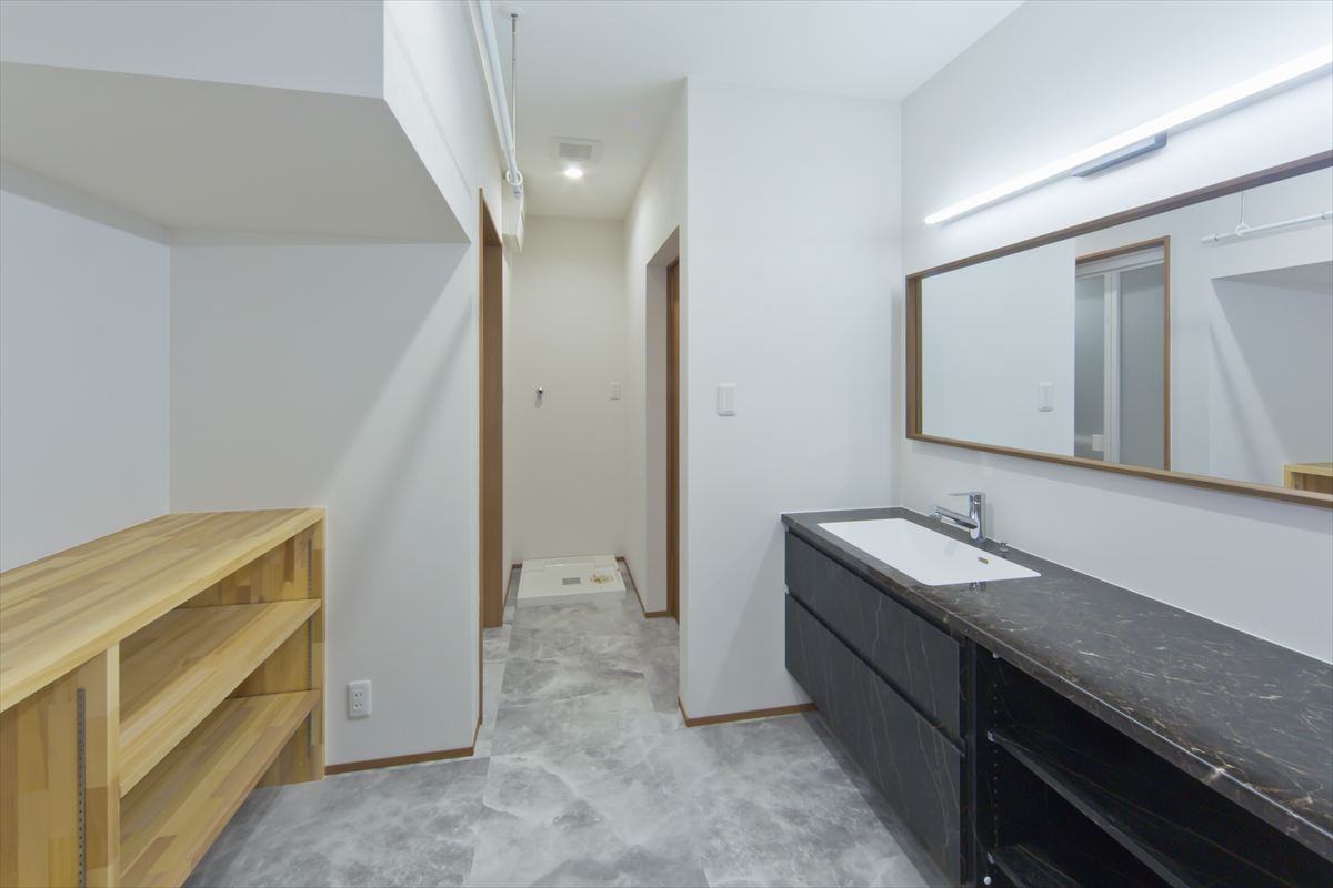 将来を考えて、十分な収納スペースを確保いたしました。玄関には、コート掛けのあるシューズクロークを造作。キッチン奥には、マグネットクロスを使用して作った掲示板のあるパントリーなど、どこを見ても安心できる収納力。また、キッチンカウンターの収納棚は、可動式なので棚板を取り外すとスタディーコーナーへと変身できます。