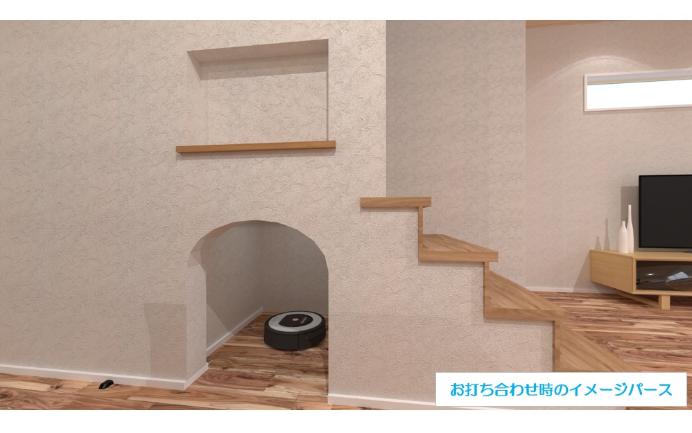 訪れた人の第一印象となる玄関スペースは、シューズクロークまでフラットに土間が続く開放感のある設計。シューズクロークは、そのまま室内へとつながっているので、外出時・帰宅時の動線がスムーズ。玄関ホールとリビングの床材は、深みのある色合いが特徴の「無垢材アカシア」。天井の木目柄と調和し、温かみと重厚感を演出し豊かな時間を作ってくれることでしょう。また、階段下にルンバ専用の小部屋があるところも見逃せないポイントです。
