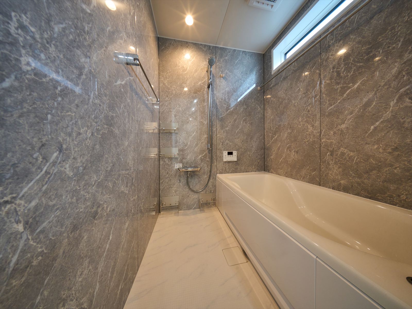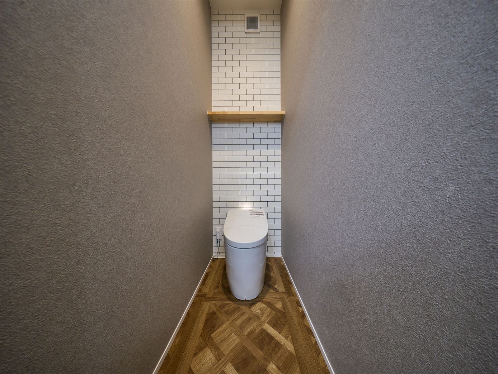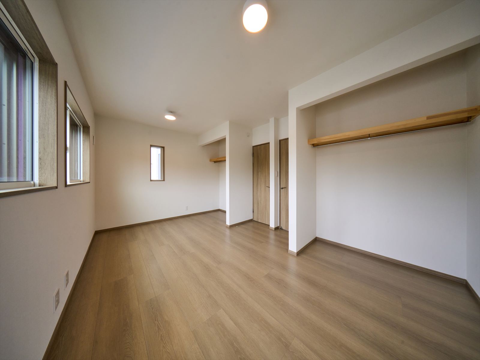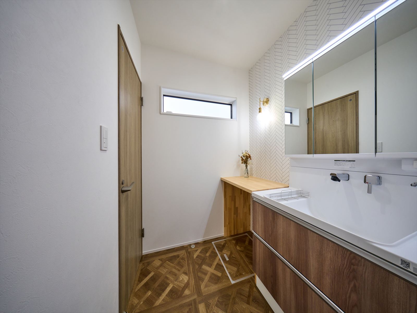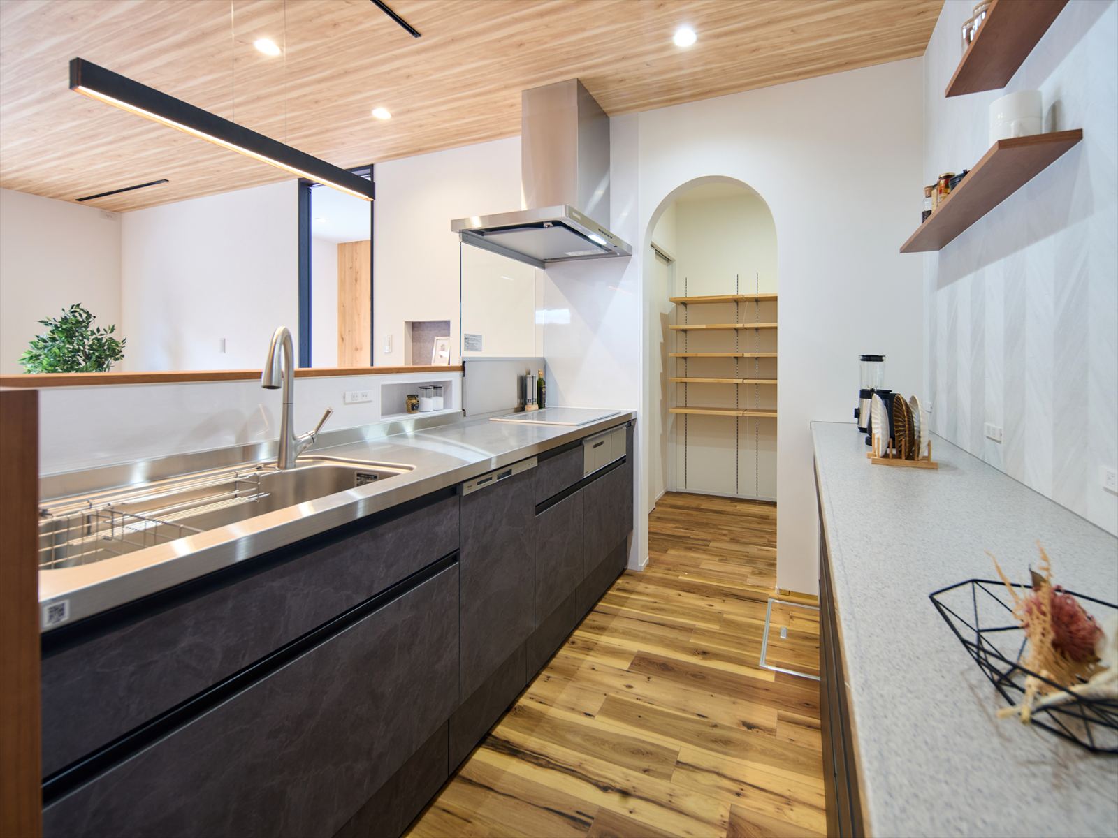 訪れた人の第一印象となる玄関スペースは、シューズクロークまでフラットに土間が続く開放感のある設計。シューズクロークは、そのまま室内へとつながっているので、外出時・帰宅時の動線がスムーズ。玄関ホールとリビングの床材は、深みのある色合いが特徴の「無垢材アカシア」。天井の木目柄と調和し、温かみと重厚感を演出し豊かな時間を作ってくれることでしょう。また、階段下にルンバ専用の小部屋があるところも見逃せないポイントです。