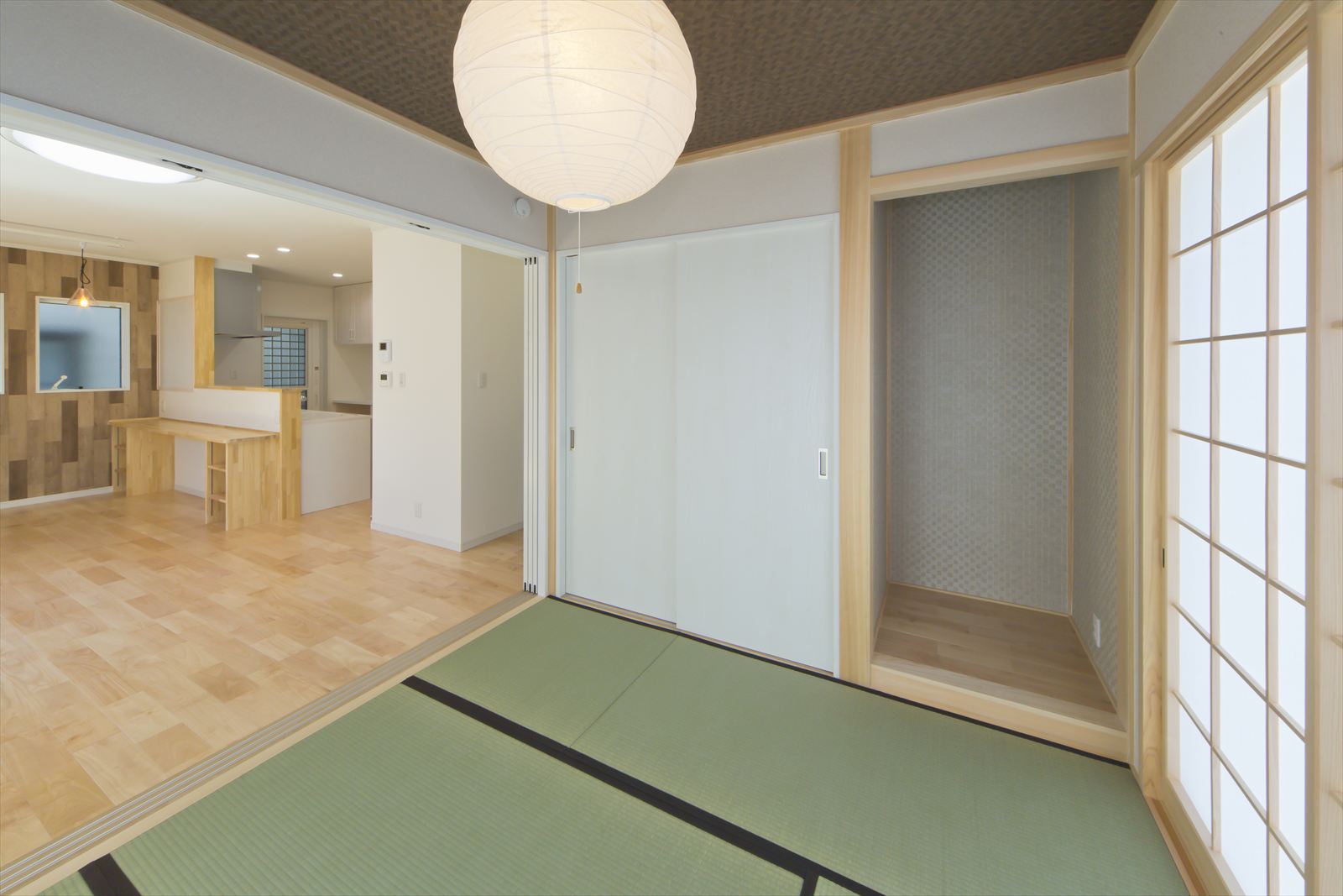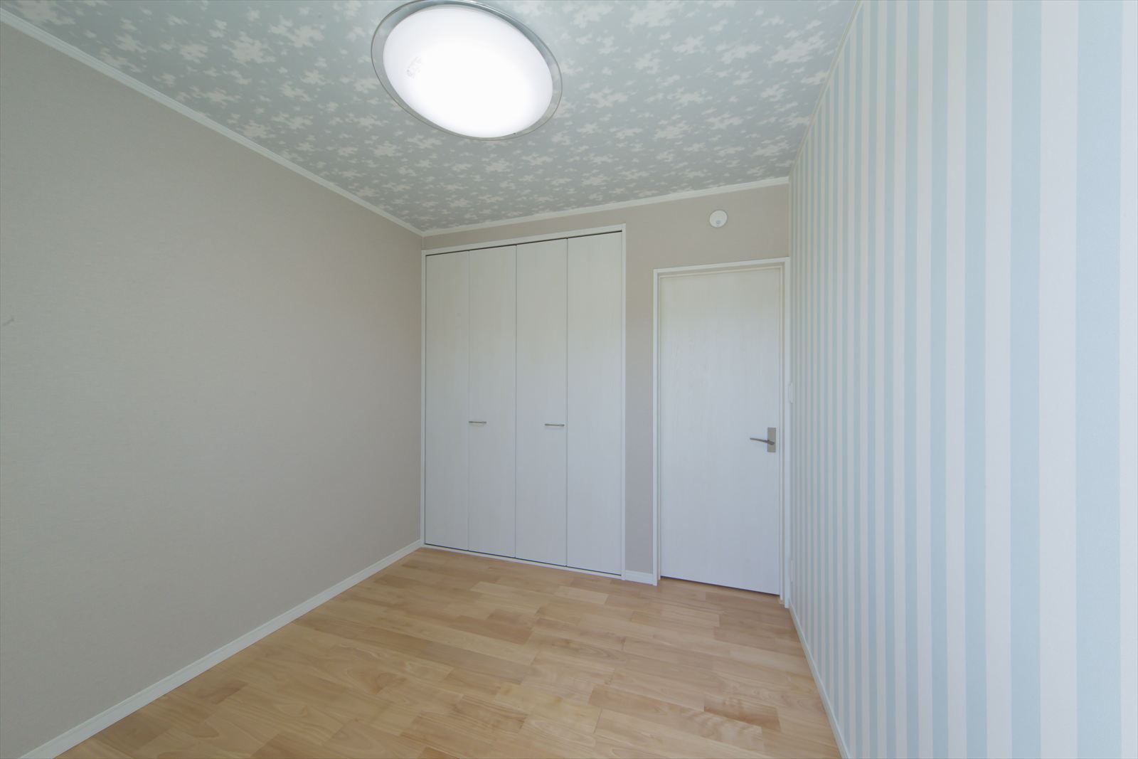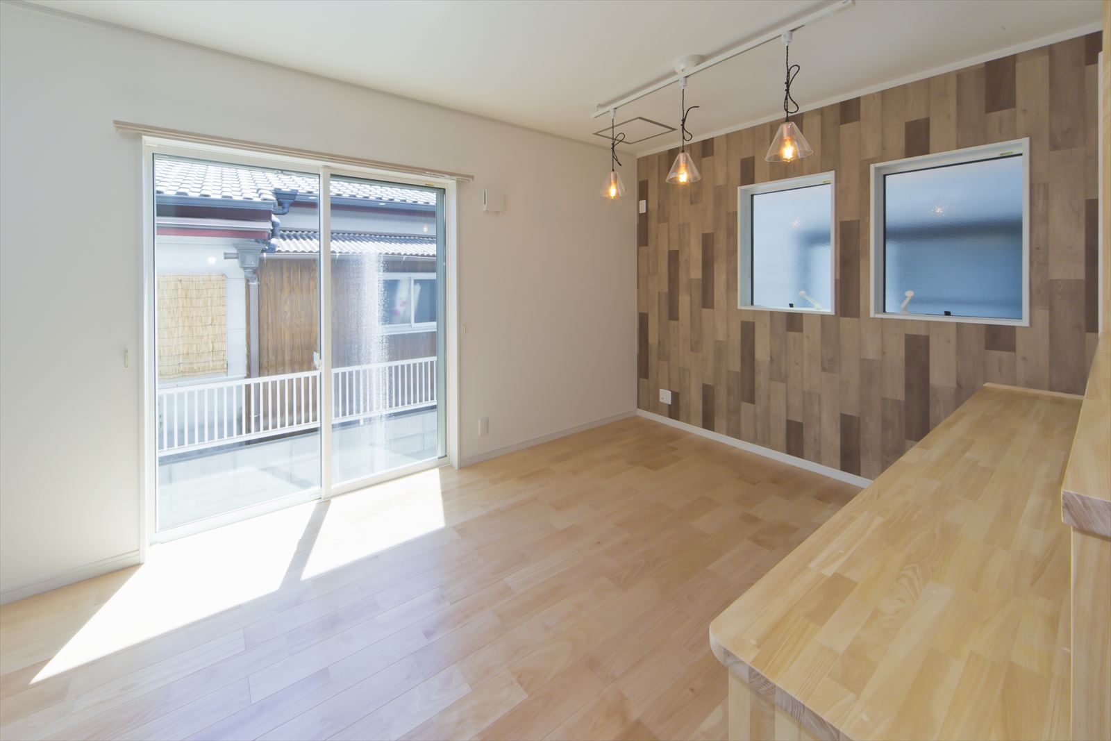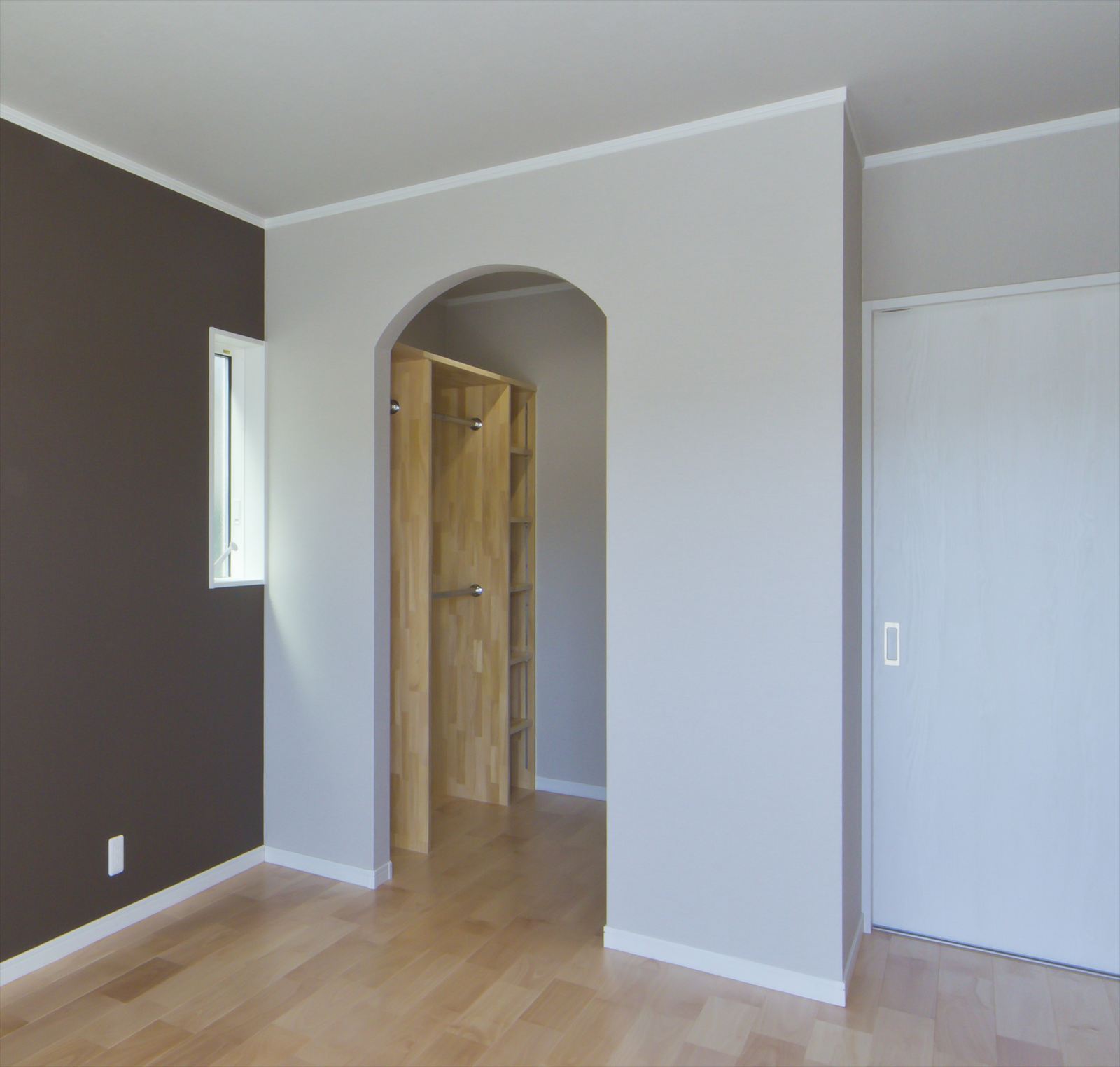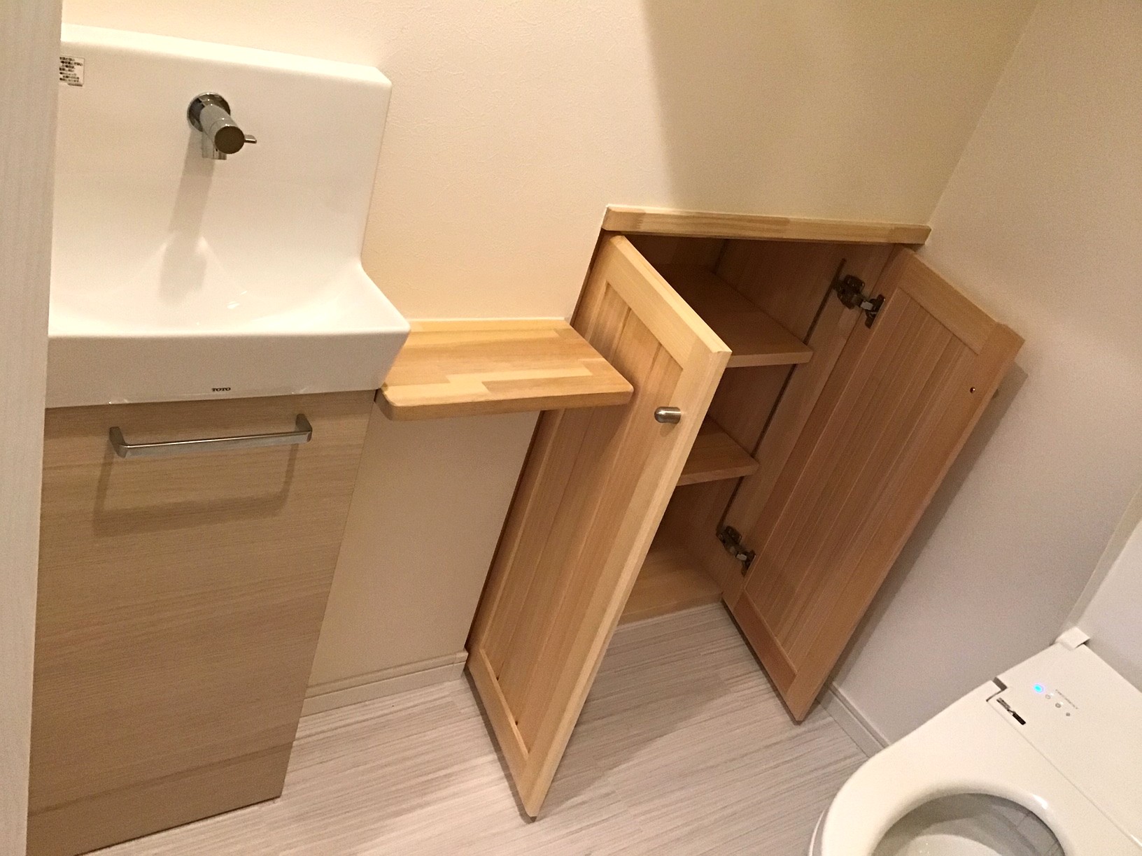 白と青のコントラストが鮮やかなS様邸には、自由設計ならではの、ご紹介ポイントがたくさんあります。シューズクロークは、玄関ホールへと通り抜けられるように配置されているのでスッキリと無駄のない玄関ホールとなっており、そのホールの壁には、ちょっとした小物などが置けるニッチを2か所設置しました。家族が集まるダイニングには、収納棚付きの長いカウンターやマグネットクロスの掲示板を造作し、キッチンの背面には、手作りの収納棚を造作しています。また、隣り合った洗面脱衣室とトイレには、それぞれに階段下スペースを利用して作った収納スペースを確保しています。無駄のない工夫が、毎日の暮らしを応援してくれることでしょう。