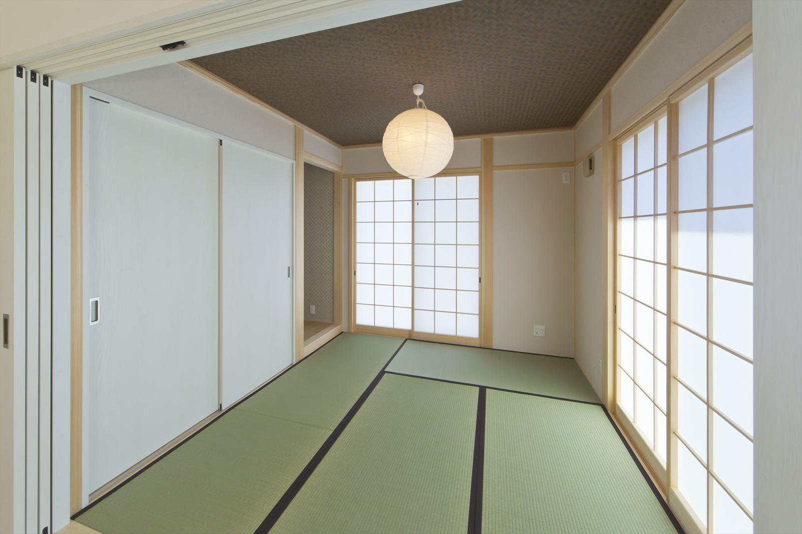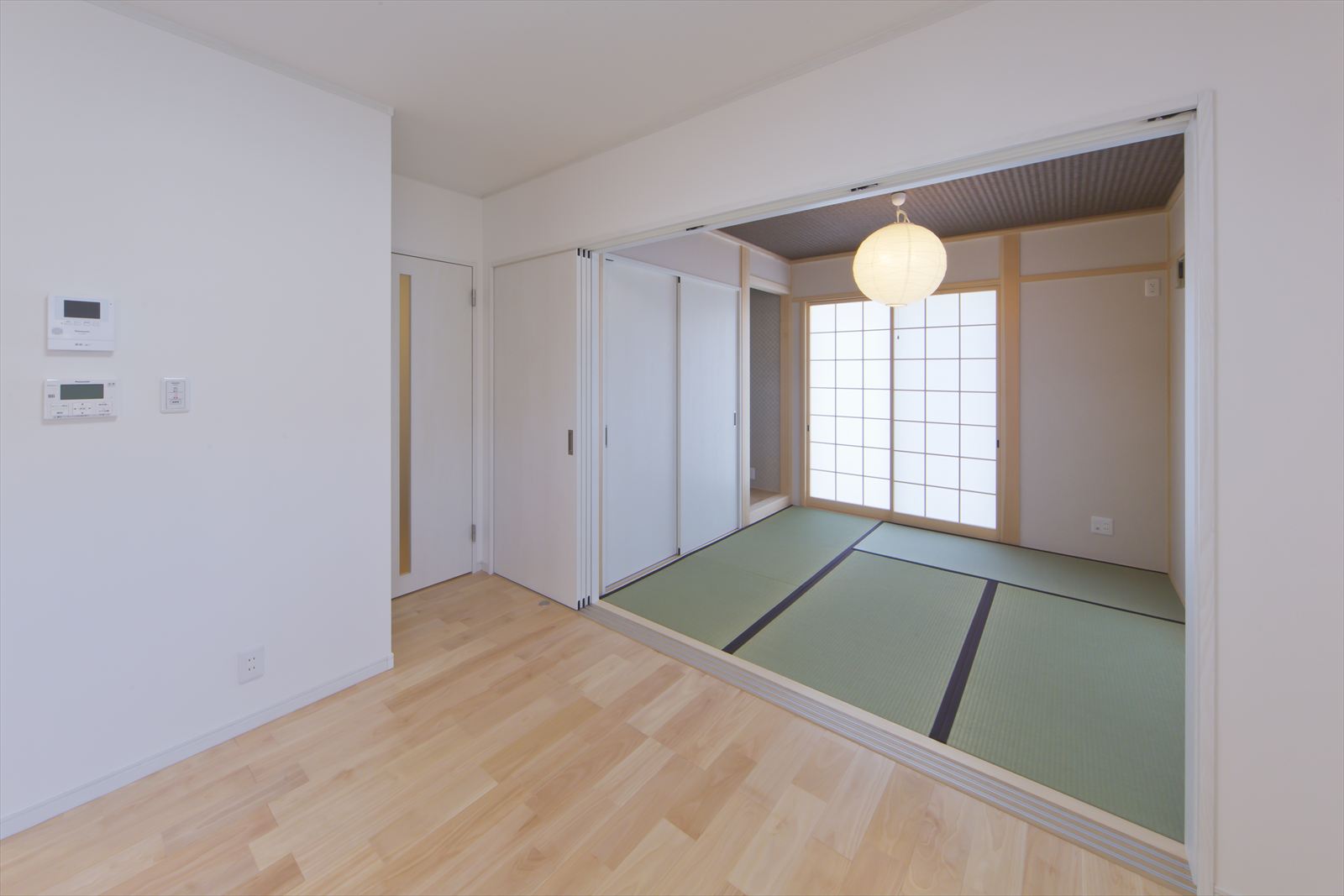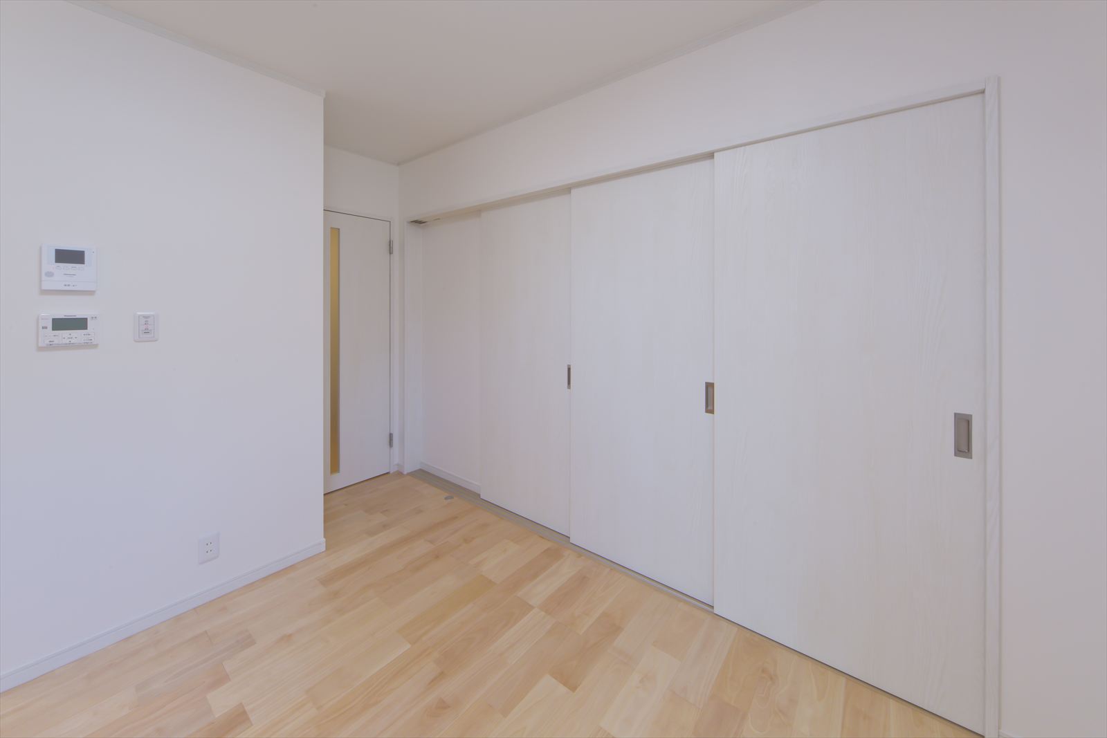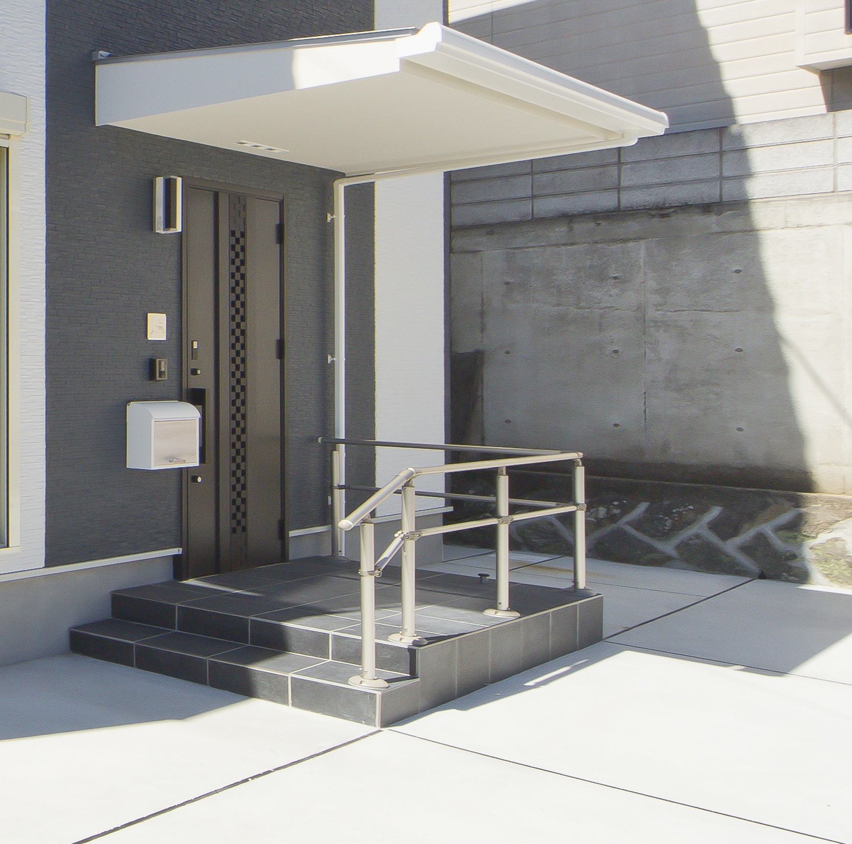 白と青のコントラストが鮮やかなS様邸には、自由設計ならではの、ご紹介ポイントがたくさんあります。シューズクロークは、玄関ホールへと通り抜けられるように配置されているのでスッキリと無駄のない玄関ホールとなっており、そのホールの壁には、ちょっとした小物などが置けるニッチを2か所設置しました。家族が集まるダイニングには、収納棚付きの長いカウンターやマグネットクロスの掲示板を造作し、キッチンの背面には、手作りの収納棚を造作しています。また、隣り合った洗面脱衣室とトイレには、それぞれに階段下スペースを利用して作った収納スペースを確保しています。無駄のない工夫が、毎日の暮らしを応援してくれることでしょう。