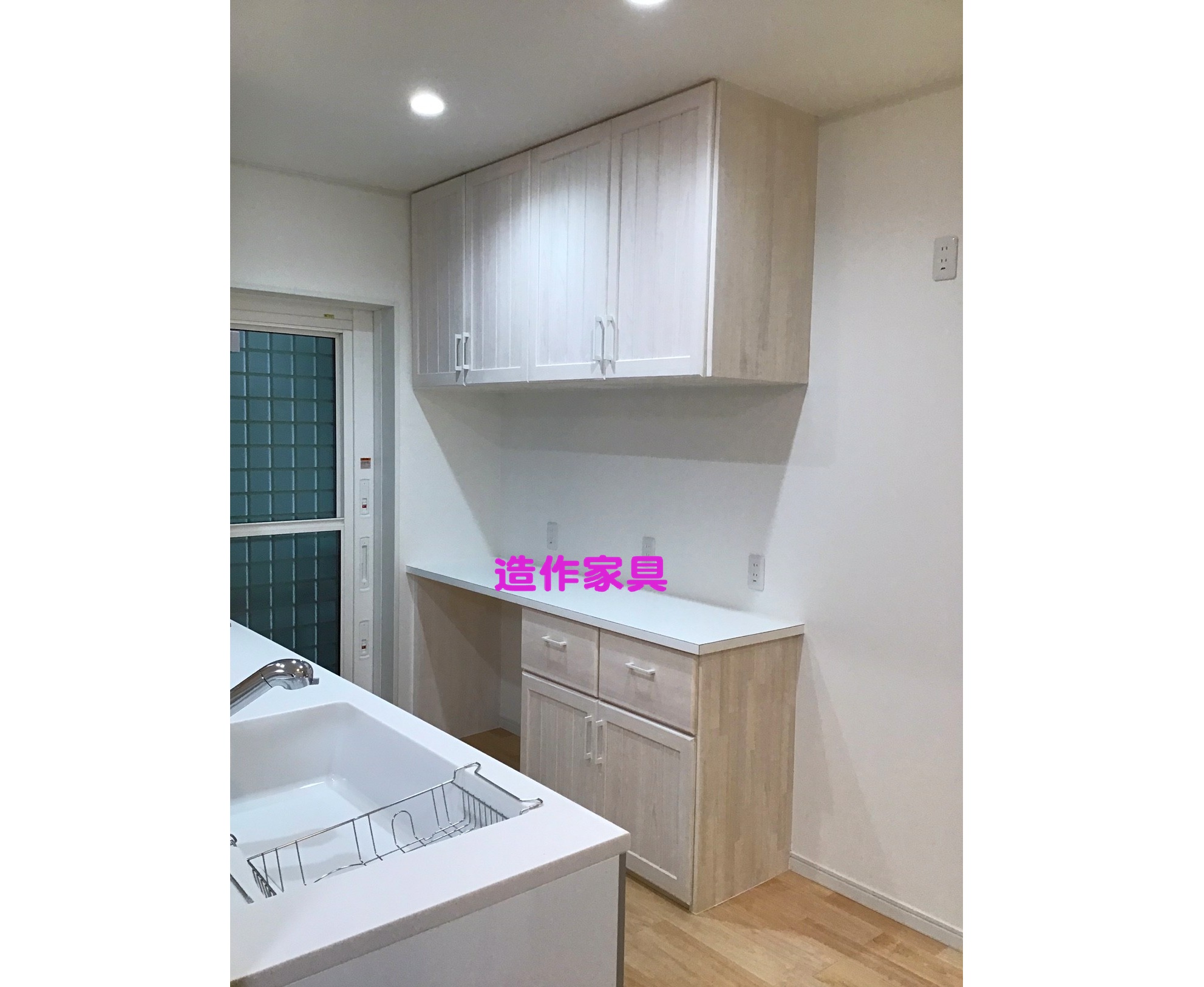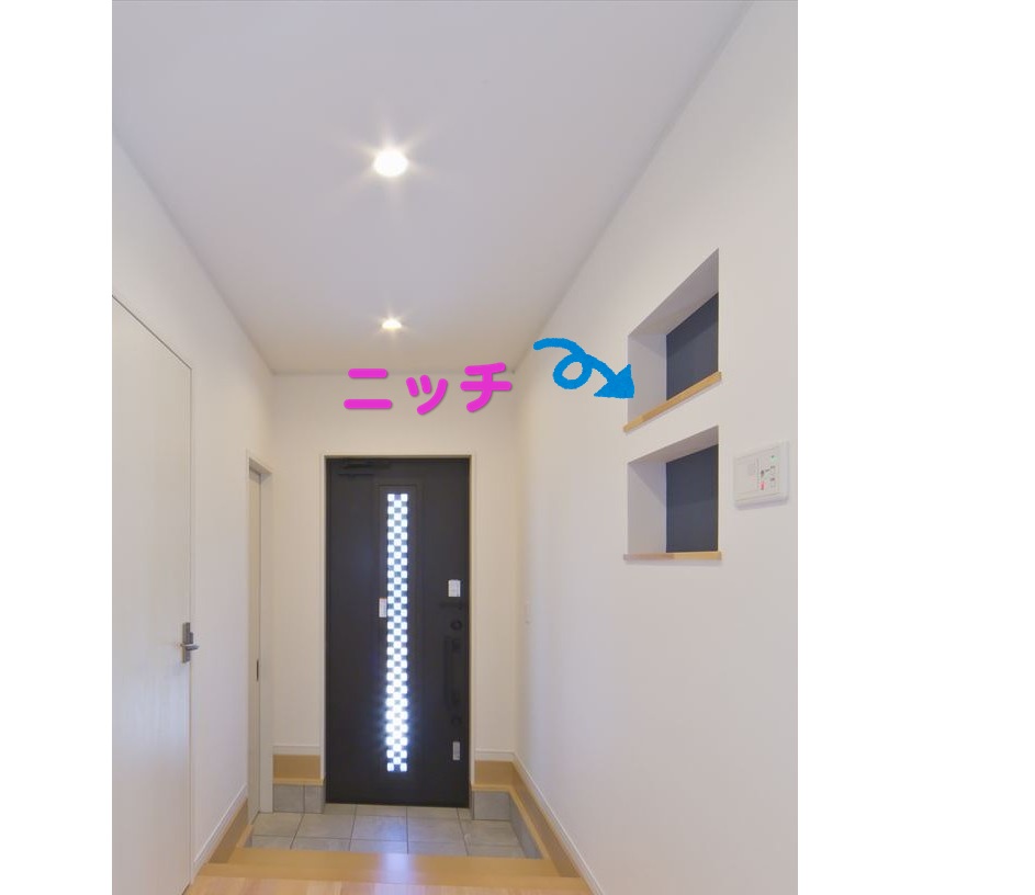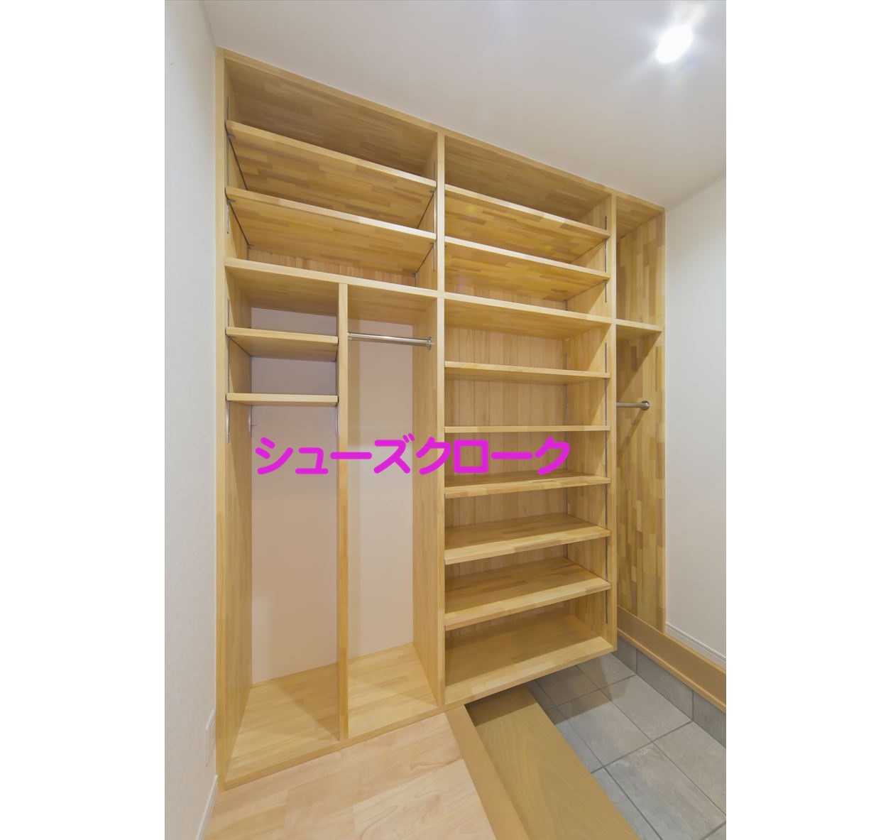 白と青のコントラストが鮮やかなS様邸には、自由設計ならではの、ご紹介ポイントがたくさんあります。シューズクロークは、玄関ホールへと通り抜けられるように配置されているのでスッキリと無駄のない玄関ホールとなっており、そのホールの壁には、ちょっとした小物などが置けるニッチを2か所設置しました。家族が集まるダイニングには、収納棚付きの長いカウンターやマグネットクロスの掲示板を造作し、キッチンの背面には、手作りの収納棚を造作しています。また、隣り合った洗面脱衣室とトイレには、それぞれに階段下スペースを利用して作った収納スペースを確保しています。無駄のない工夫が、毎日の暮らしを応援してくれることでしょう。