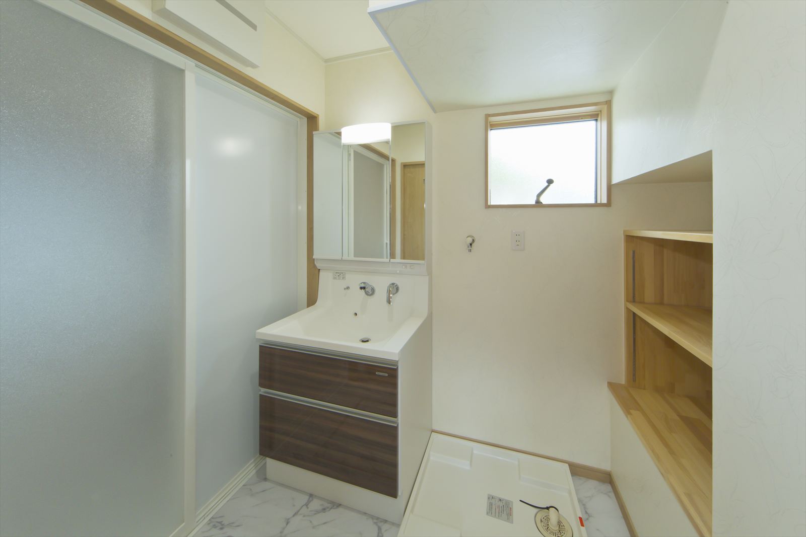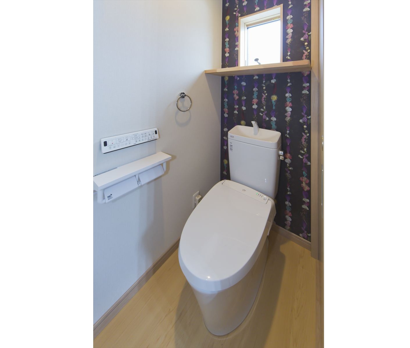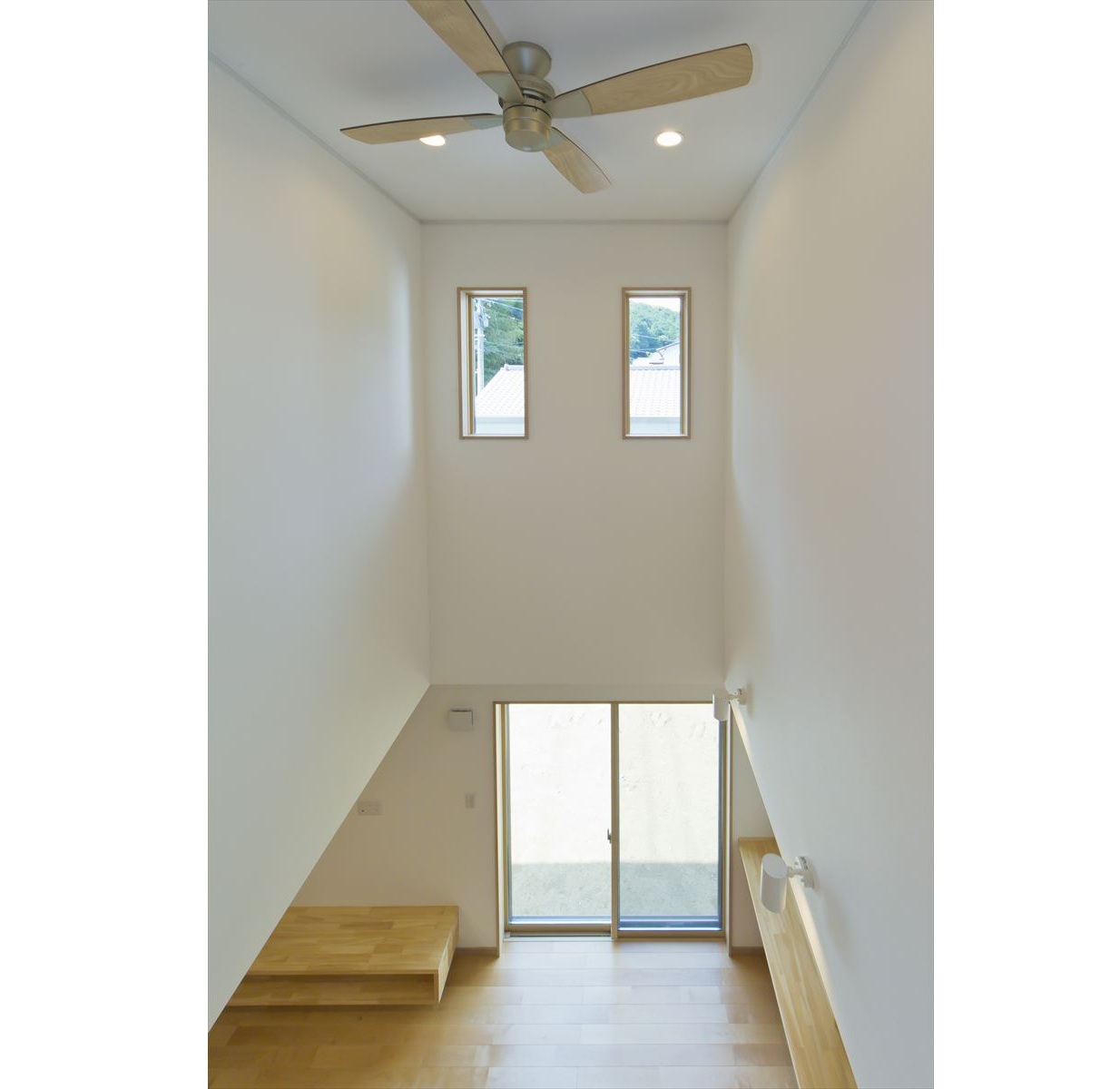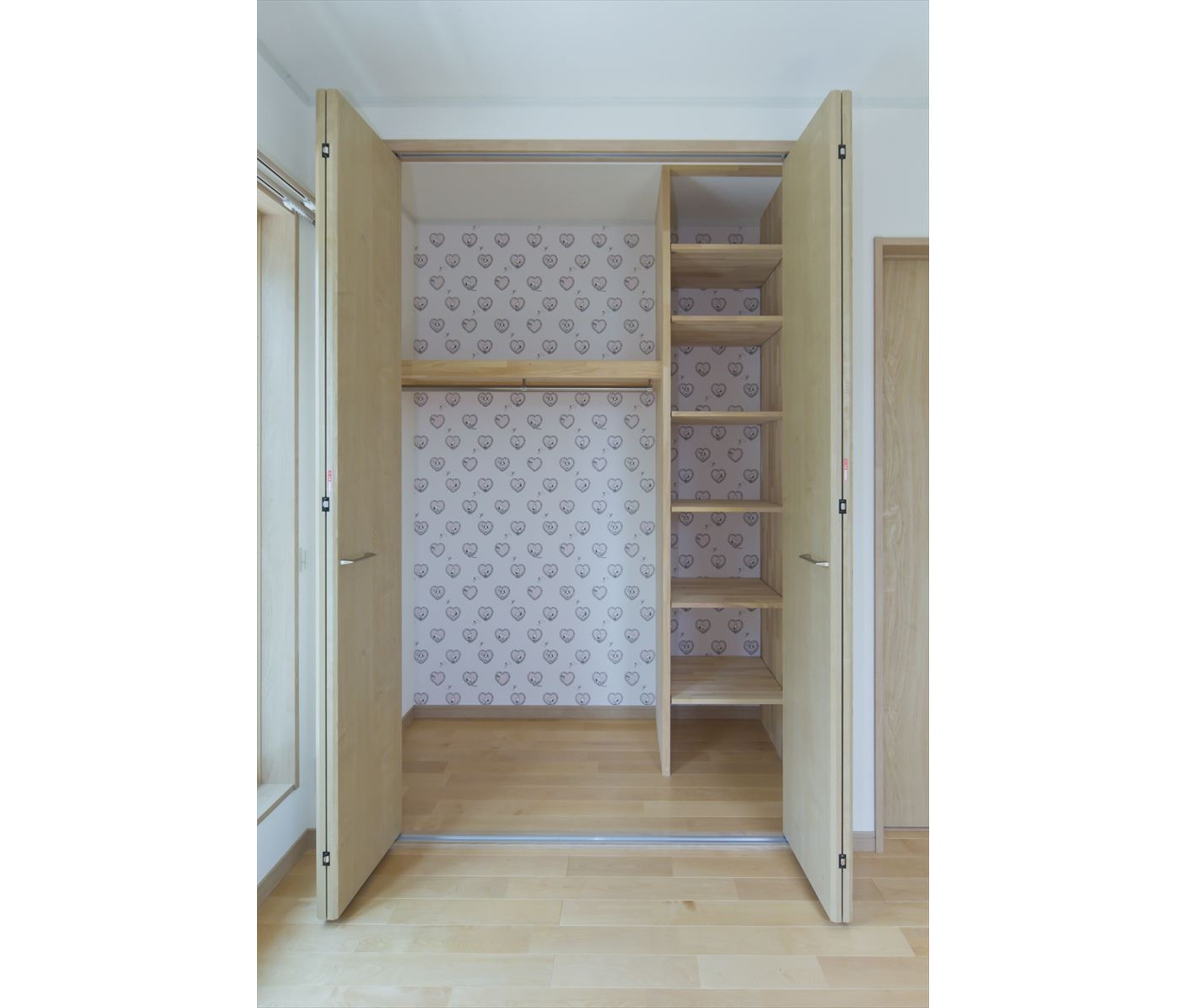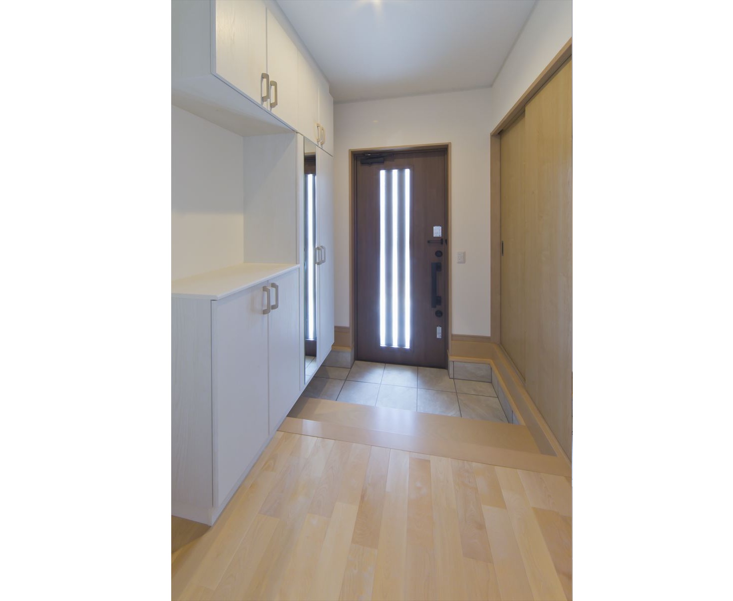 リビングへの扉を開くと吹き抜けの天井から柔らかな自然光が降り注ぐH様邸。ちょうどダイニングの真上に吹き抜けの天井があるので、キッチンに立っていても2階ホールの様子が分かり、会話を交わすことだって可能です。また、リビングを挟んで、キッチンの正面に位置するモダンな畳スペースは、3枚の引込戸の開閉によりリビングの一部として、また個室として幅広く活用することができます。