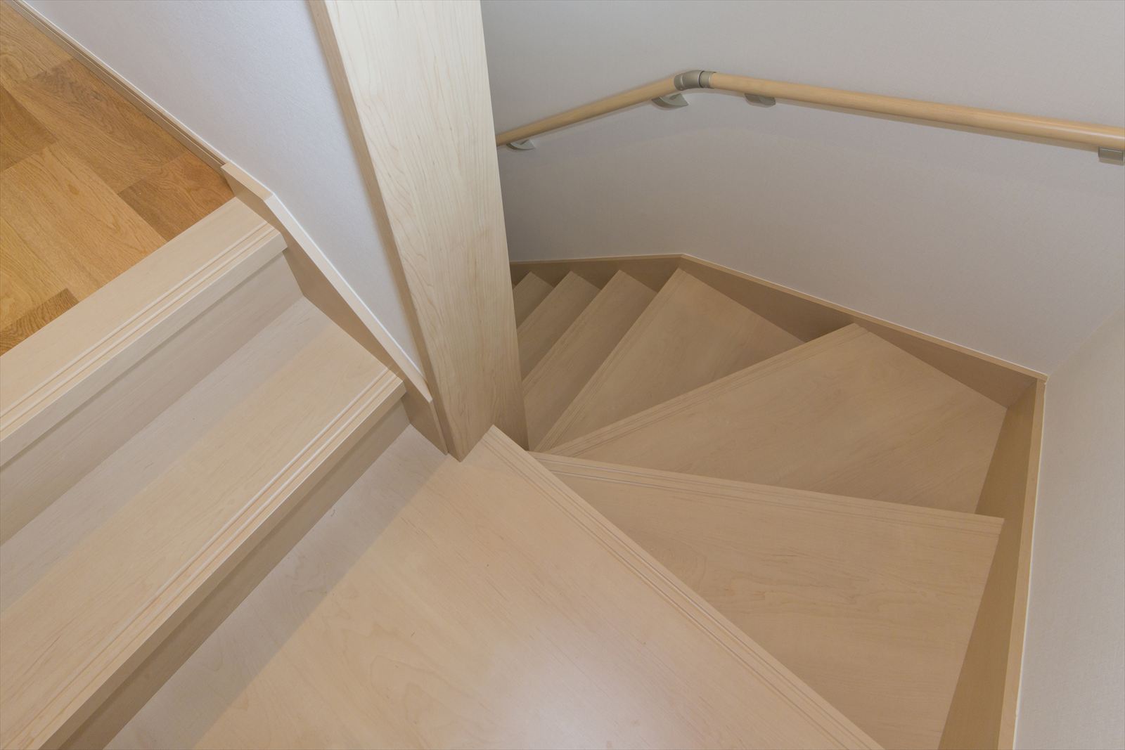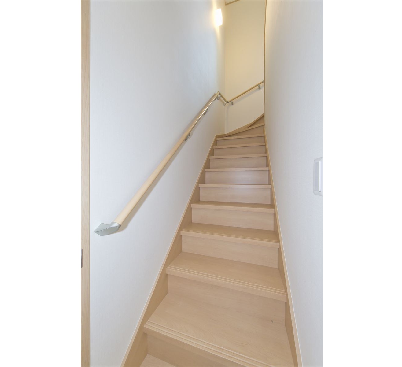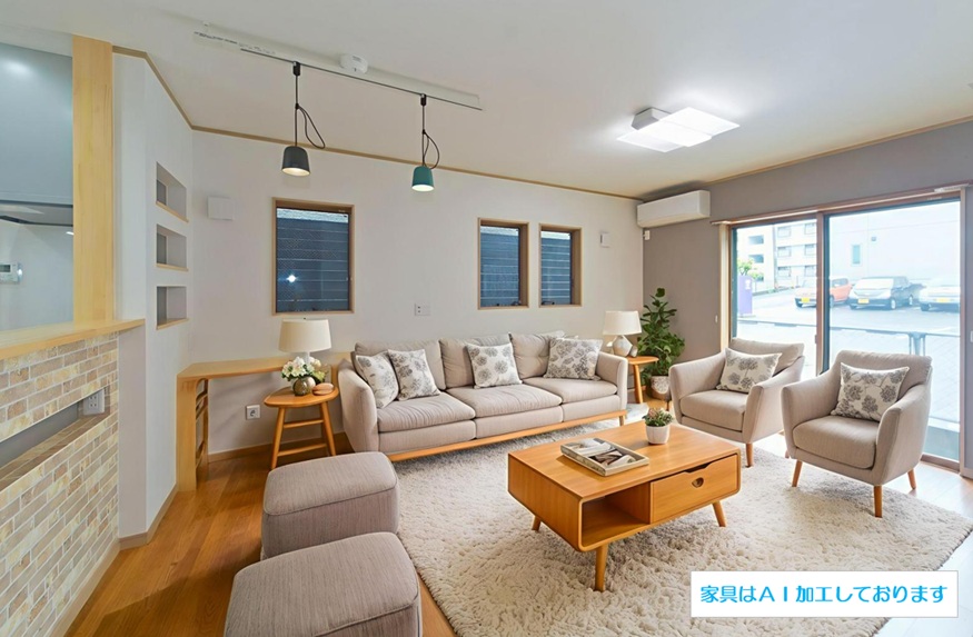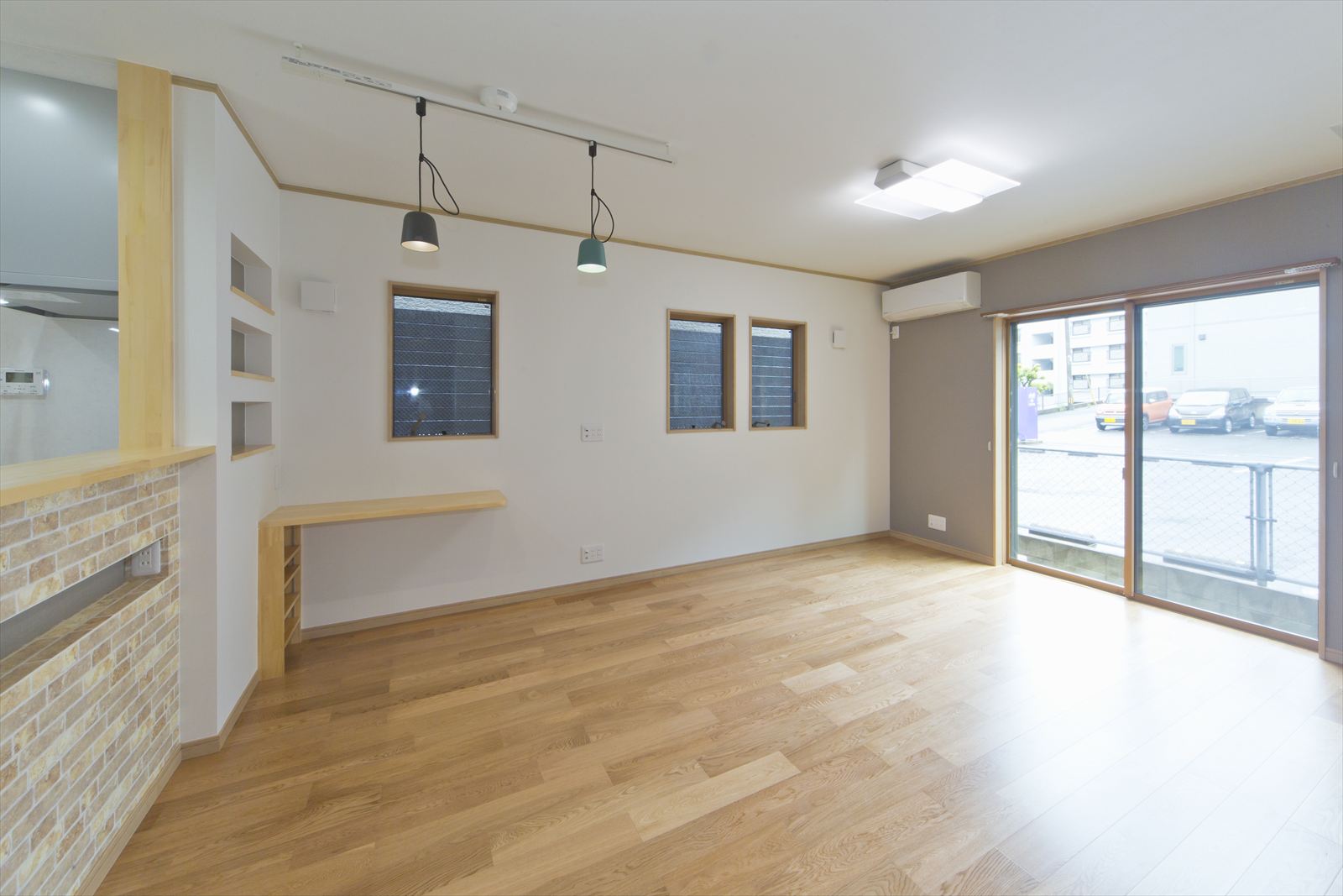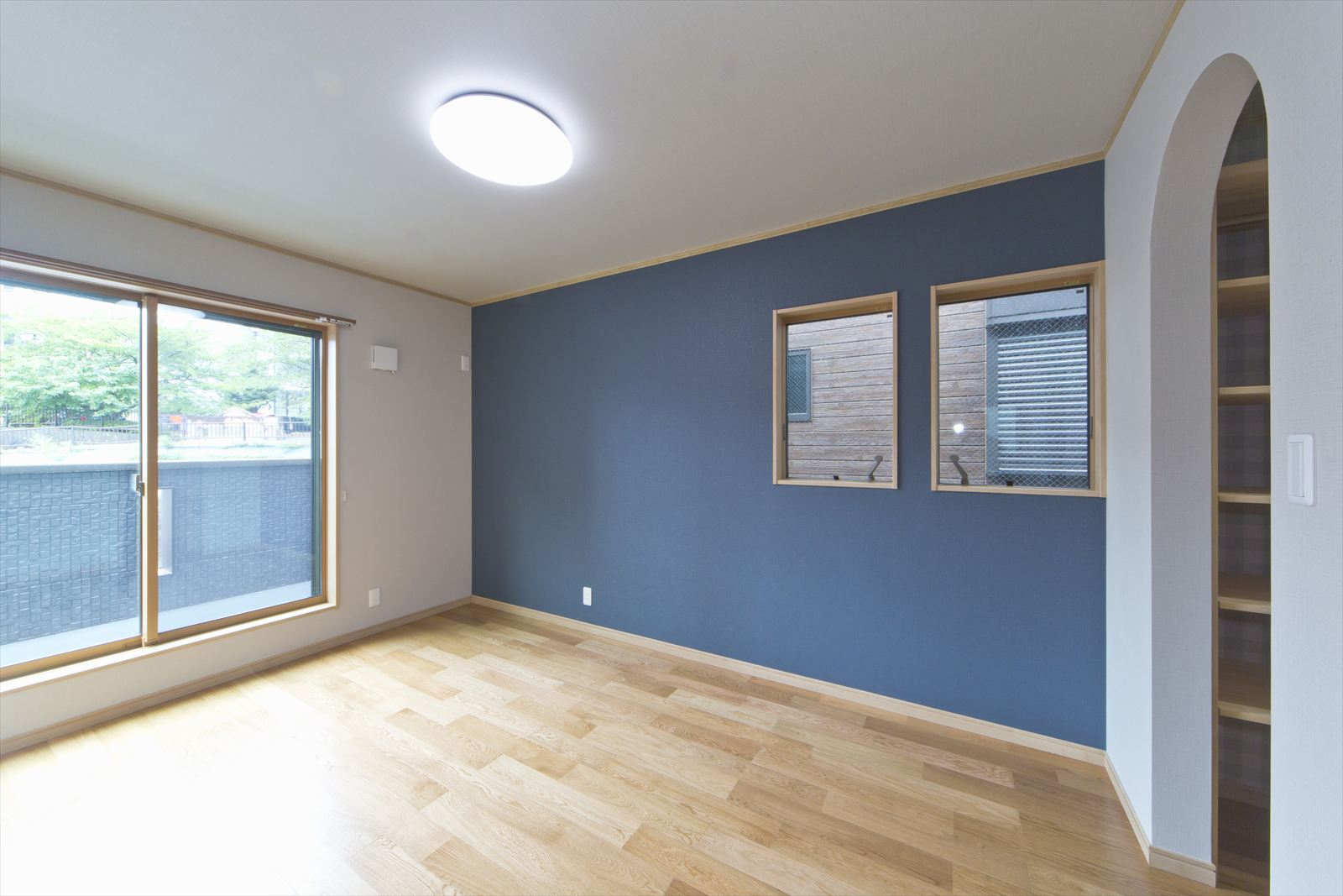 住宅が密集した地域で、敷地面積約34坪という条件の中、駐車場を十分に確保し建てられたY様邸ですが、建物内部も無駄なく効率よく設計されています。まず、玄関には階段下スペースを利用した建具のないオープンタイプの収納スペースがあり、玄関ホールには壁の厚みを利用したスリッパラックが作られています。また、キッチン横には、両開き戸の物入が3か所もありカテゴリーごとの収納が可能になりました。他にも各所に作ったニッチやアール開口のウォークインクローゼットなども快適な暮らしを応援してくれることでしょう。