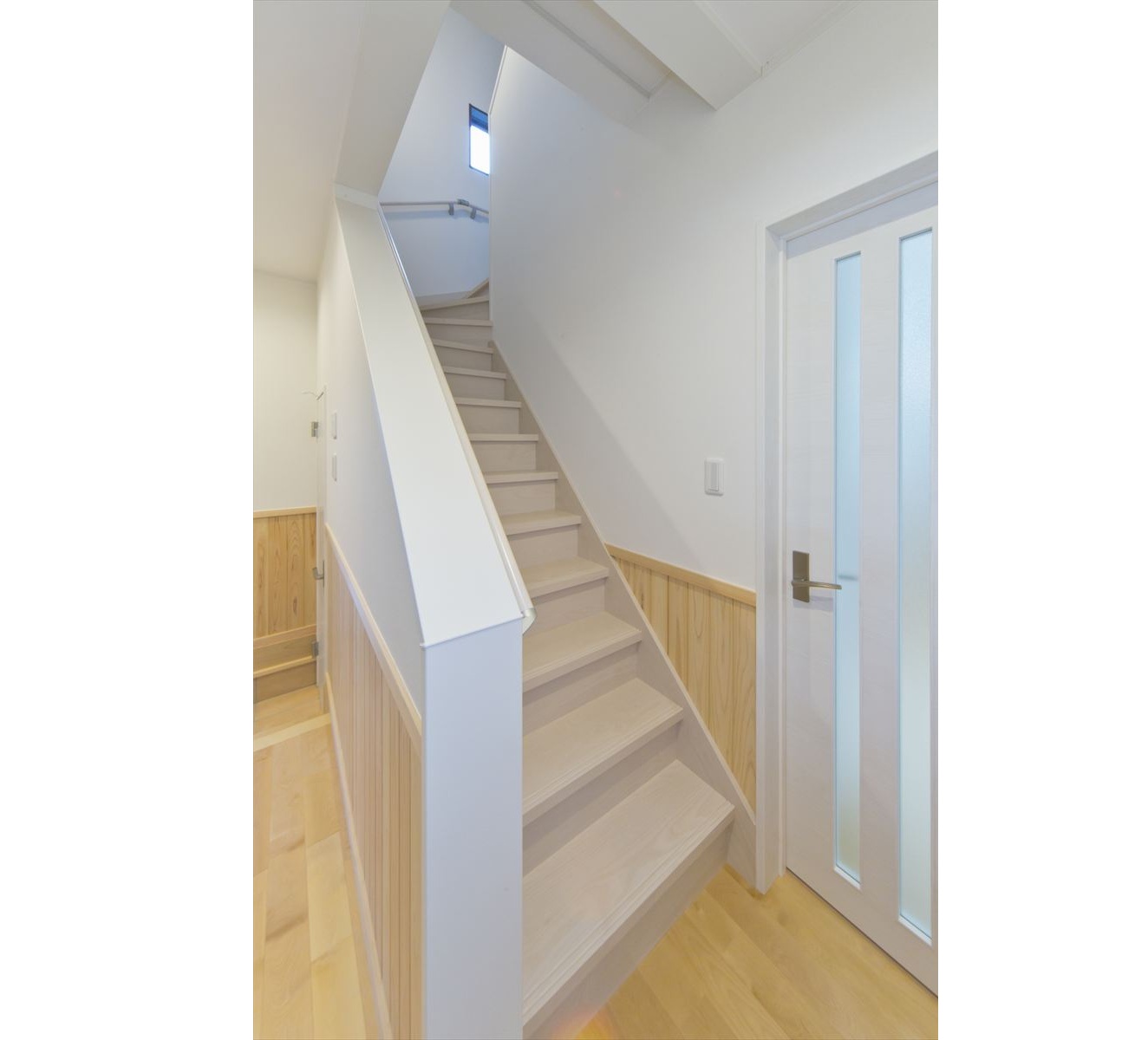 住宅密集地に建てられたK様邸には、2階にロフトが設けられています。ロフトは、屋根裏のスペースを利用して作られた空間ですが、天井高を1.4m以下に抑えることによって床面積に含まれず固定資産税の対象外となるメリットがあります。ロフトの活用方法として ・お子様の想像を膨らませるワクワク空間 ・読書や映画、趣味の物作りスペース ・来客用の就寝室として ・書斎として など多彩な用途があり家族の強い味方となってくれます。