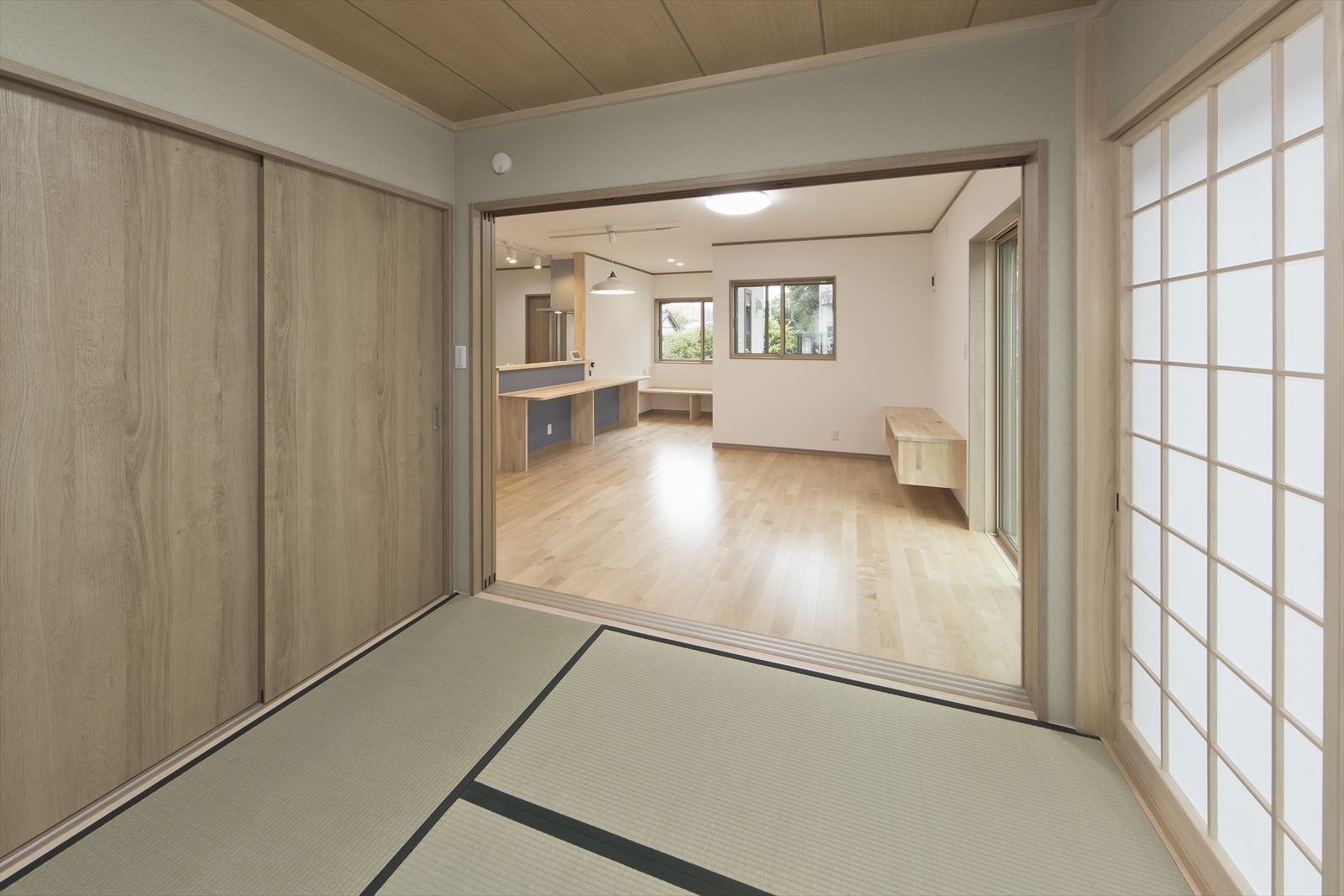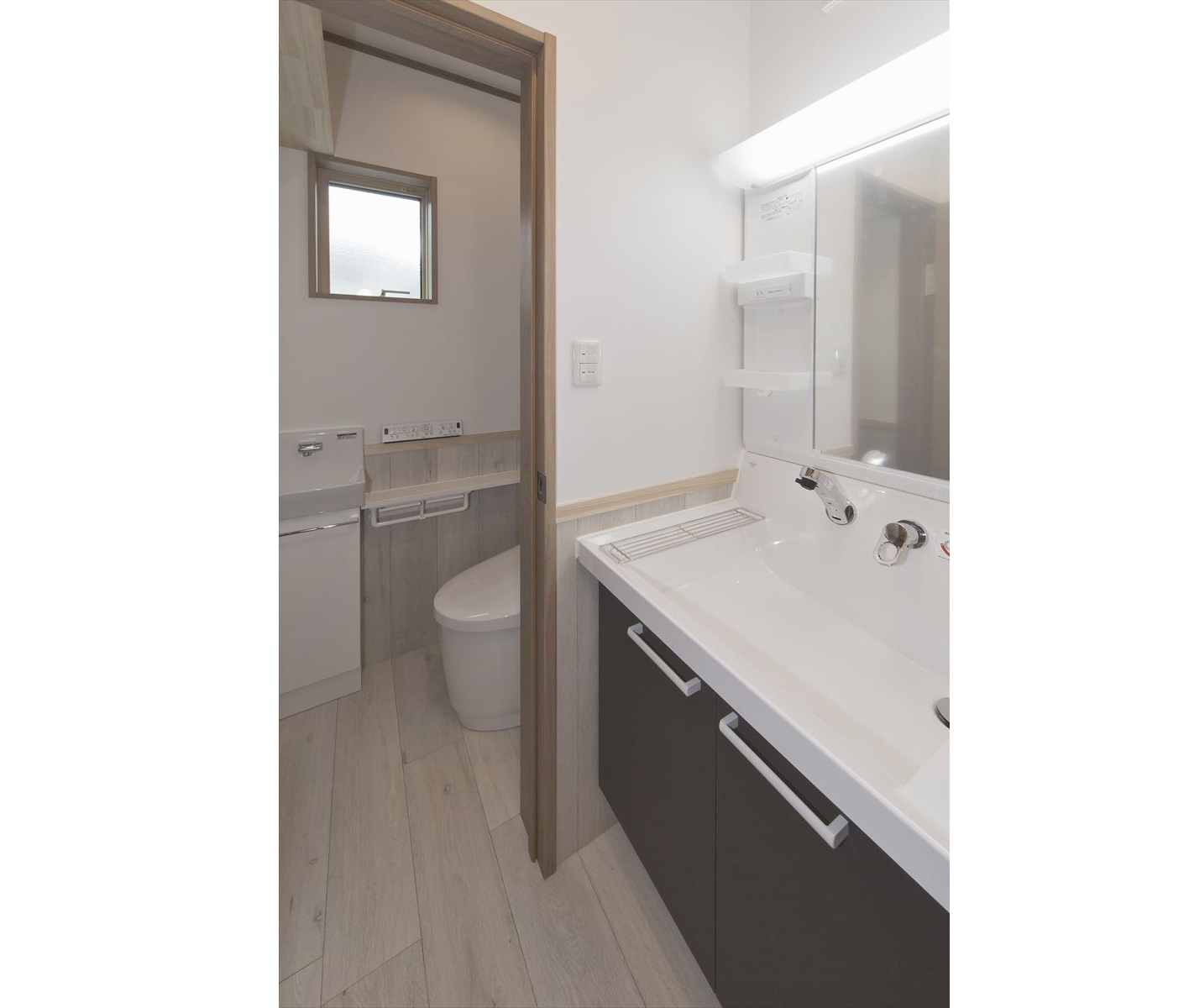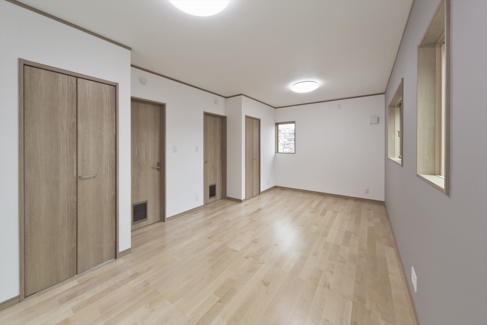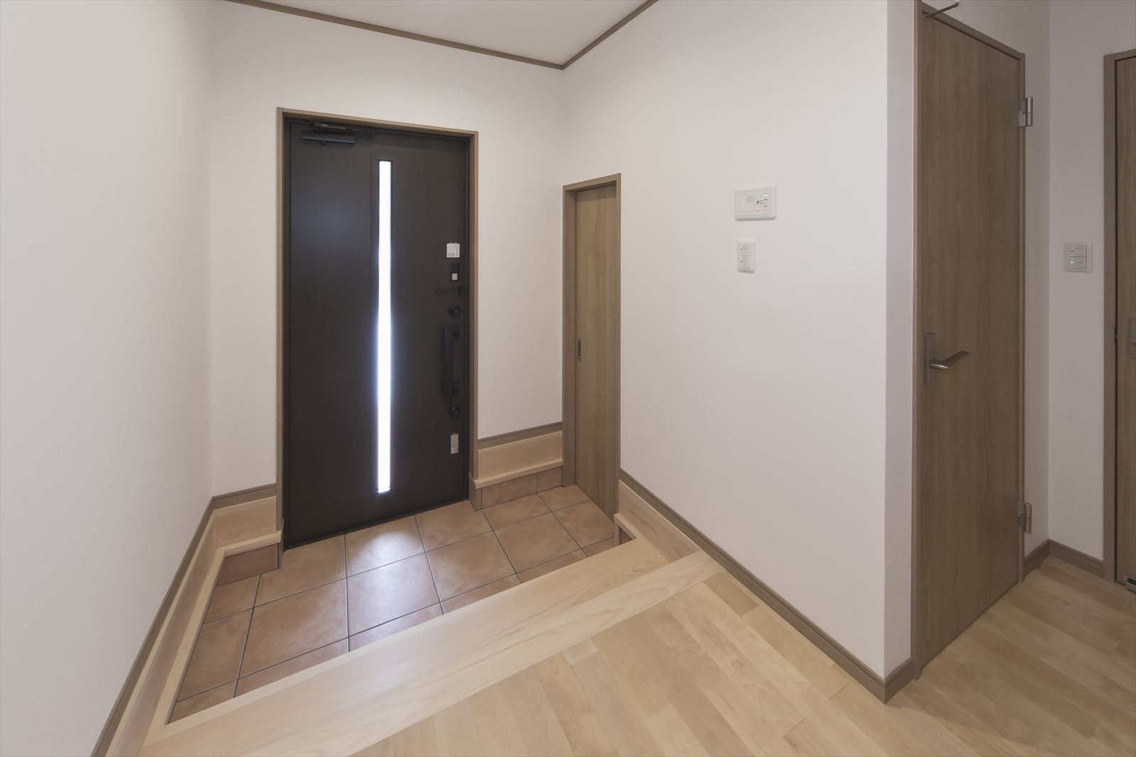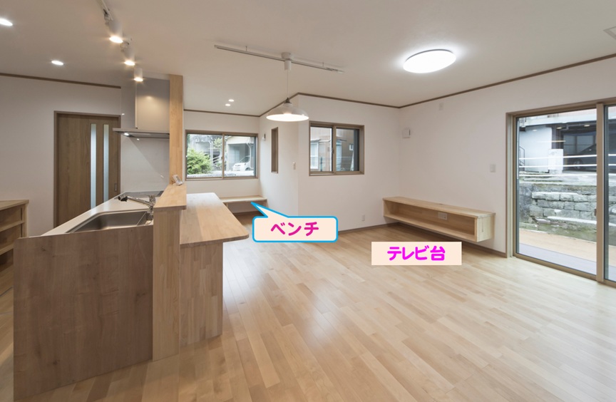 毎日の暮らしの中で繰り返される作業の効率を考えて、さまざまなアイディアで造作家具を備え付けたK様邸です。玄関横のシューズクロークには、収納棚とハンガーパープがコの字型の壁全面に造作されているので帰宅後には、靴だけでなくコートや遊具などをすぐに片付けることができます。また、キッチン奥のドアを開くとパントリーがあり、この中には収納棚と一緒に広いカウンターが備え付けられ作業台やワークスペースとしても利用可能となっています。他にもスタディーコーナーとしても活用できる広いキッチンカウンターや作業台があるウォークインクローゼットなど工夫がいっぱい。プライベートルームの扉に取り付けられたペットドアも家族の一員であるネコの事を考えた大切なポイントですね。