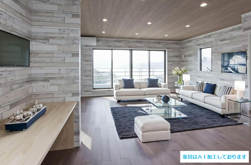 見晴らしのいい高台に建つK様邸。建築当初からこの眺めを活かした家づくりを望まれて、2階にリビングを配置しました。リビングの南側には大きな開口があり、四季折々に移り変わる海や山の眺望が暮らしをより豊かにしてくれることでしょう。1階には、プライベートルームや浴室・洗面室などを配置しており洗面室の隣には、ランドリールームを兼ねた家事室があります。