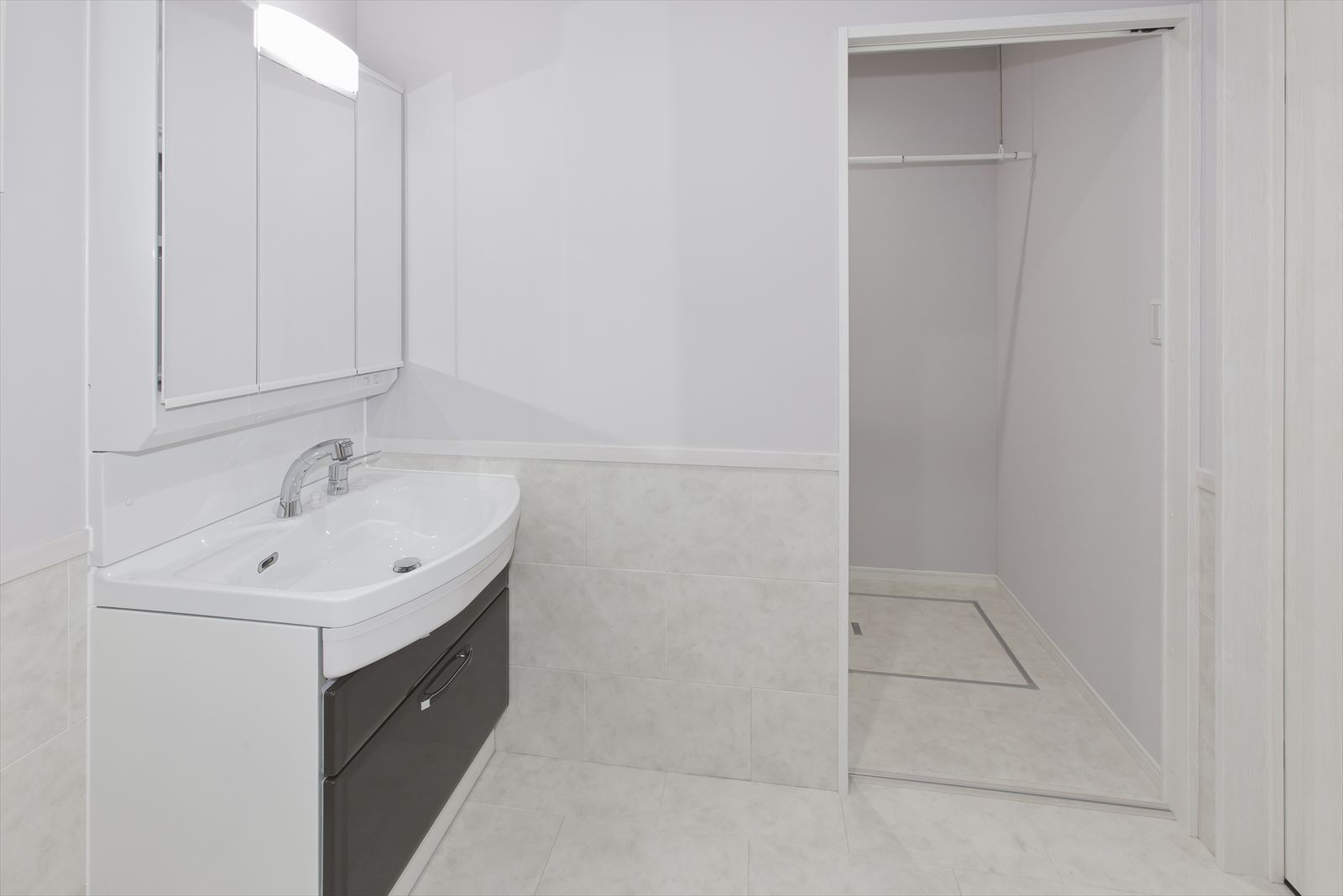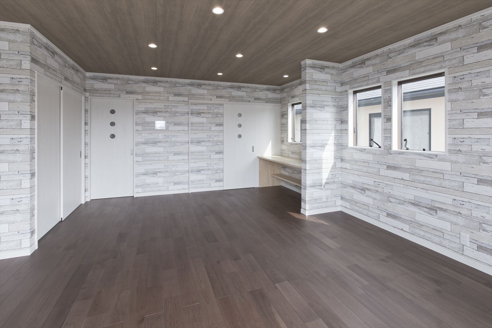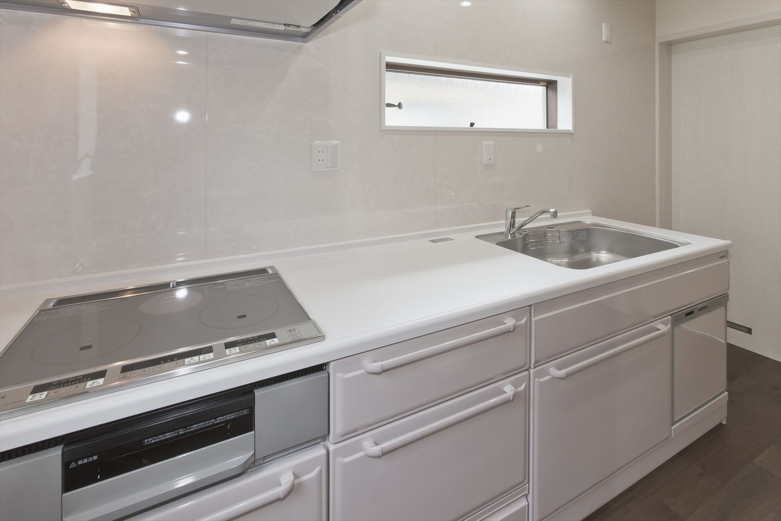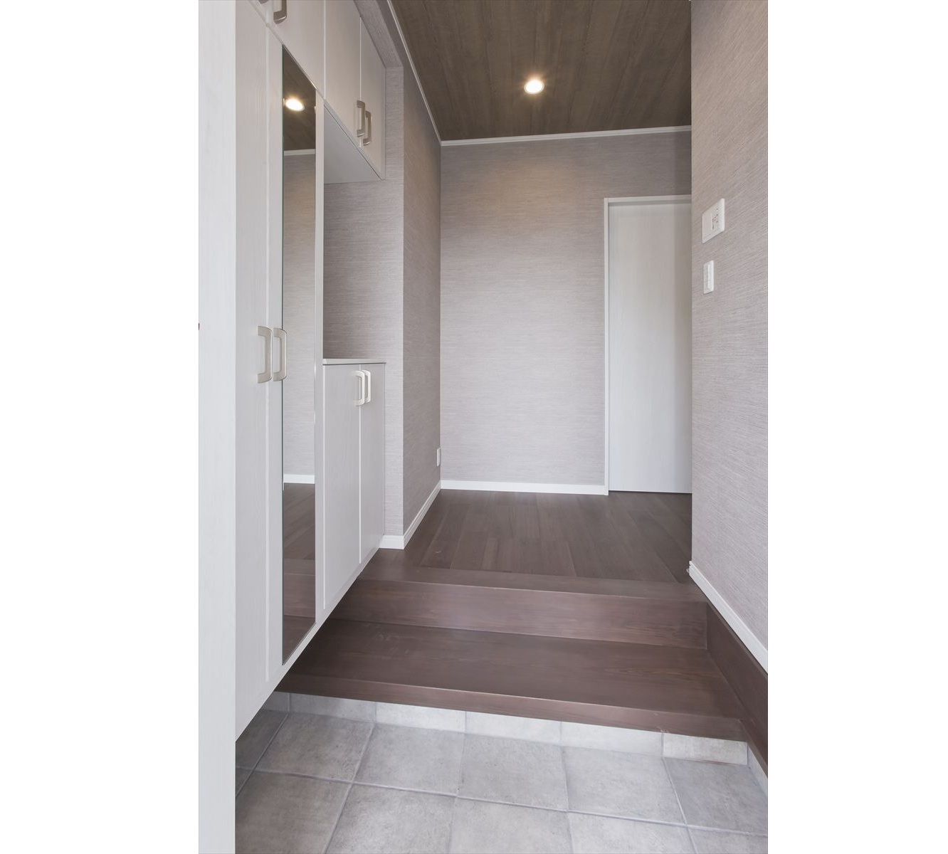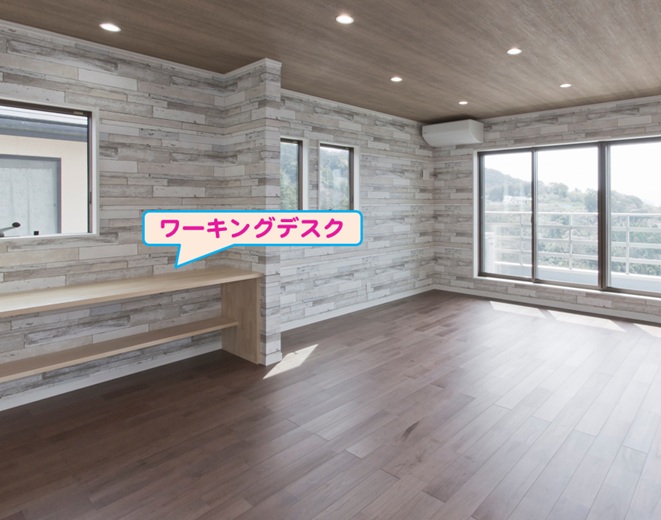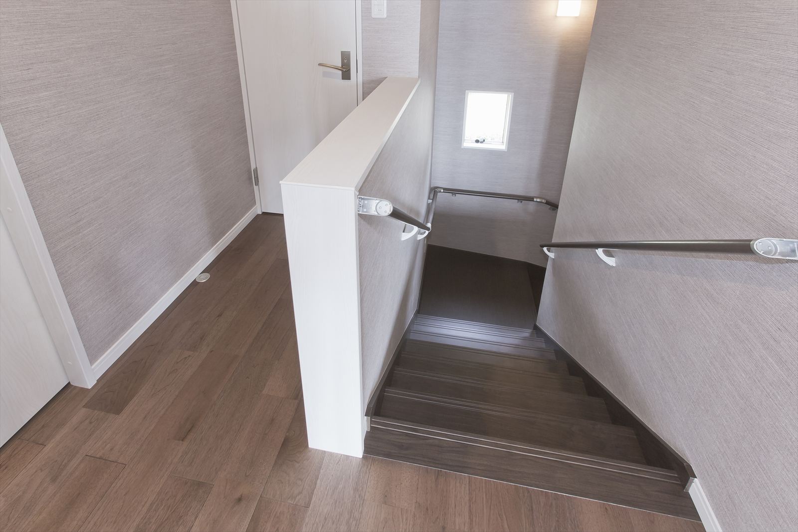 見晴らしのいい高台に建つK様邸。建築当初からこの眺めを活かした家づくりを望まれて、2階にリビングを配置しました。リビングの南側には大きな開口があり、四季折々に移り変わる海や山の眺望が暮らしをより豊かにしてくれることでしょう。1階には、プライベートルームや浴室・洗面室などを配置しており洗面室の隣には、ランドリールームを兼ねた家事室があります。