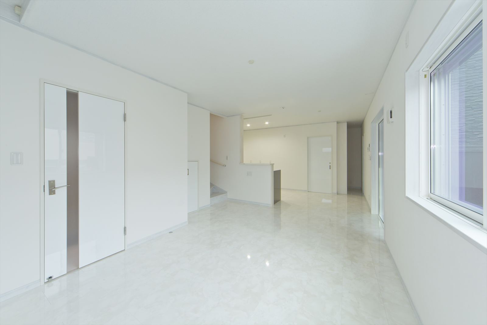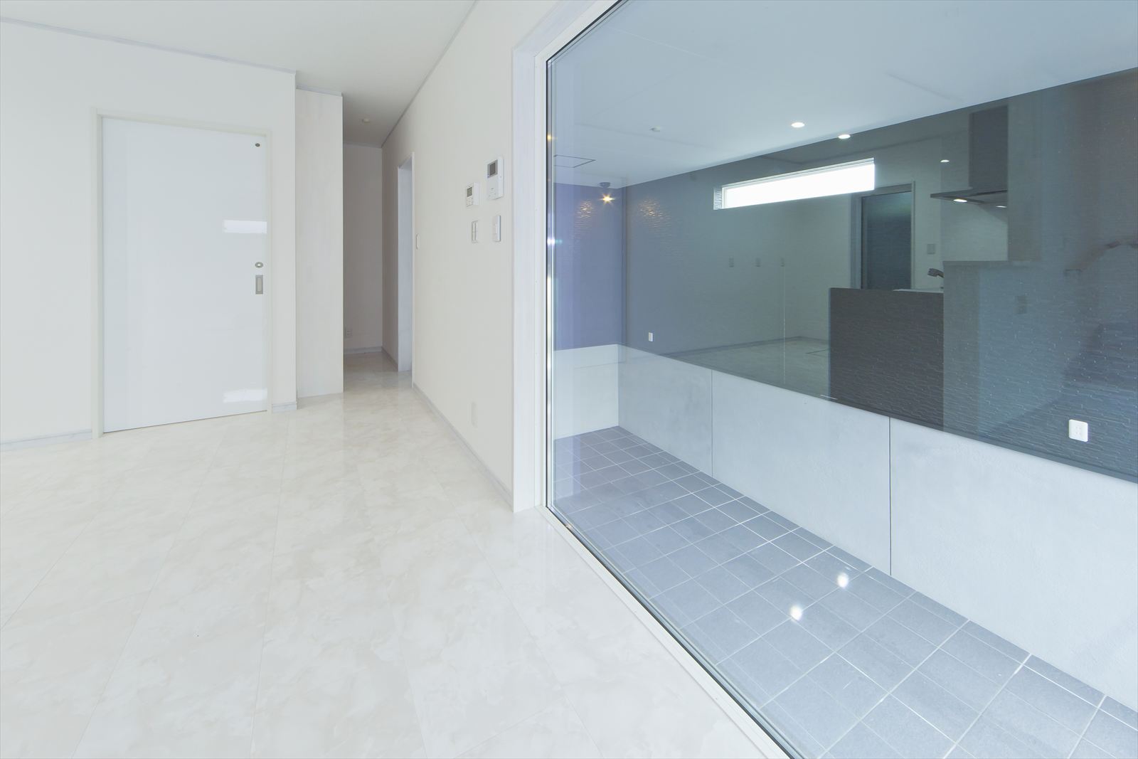 ビルトインガレージが、絶対条件だったS様。外観・建物内部のデザインや配置まで、ご自身で資料を集められ理想の家づくりについて、お話しをしてくださり一緒にプラン作りを進めてていきました。そして、いよいよ着工。まずは、道路から高さがあり傾斜地にある敷地内に車が入るように造成工事から始まりました。建物内部は、1階リビングが天井・床・壁のすべてを白く、2階とロフトはモノトーン調をご希望。また、ビルトインガレージに駐車後は、リビングへダイレクトに入ることができる出入口や室内からいつでも車を眺めることができるFIX窓も当初からのご計画でした。
