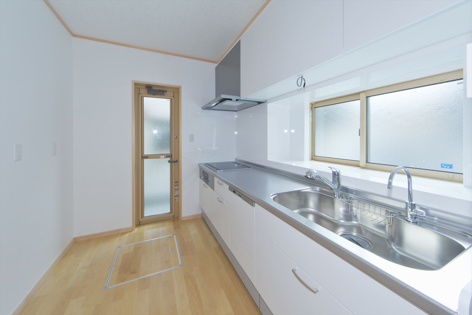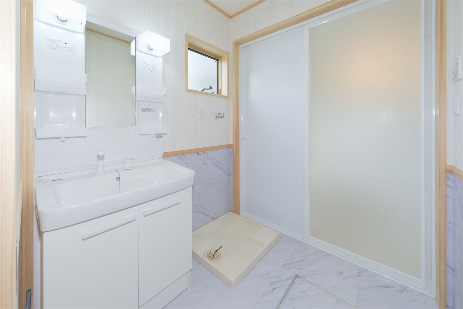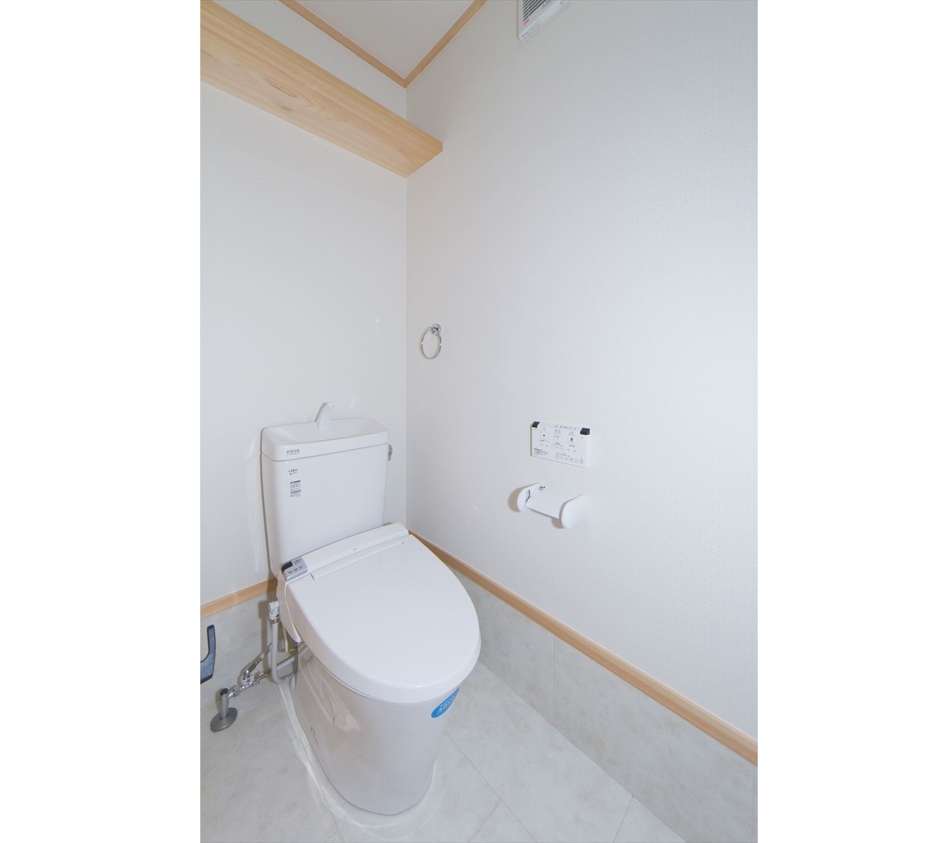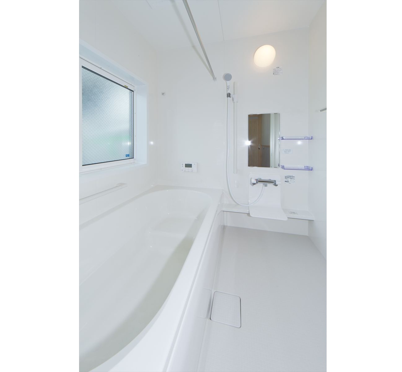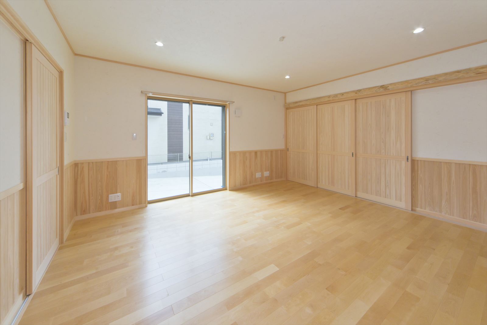 玄関までのアプローチは、将来の事を考えて階段とスロープを備えた平屋の住宅。リビングを中心に和室・プライベートルーム・収納が配置され無駄のないコンパクトなご自宅が完成いたしました。いたるところに桧や杉を使用しており、その中でも玄関の扉を開けて最初に目に入るのが、職人さん手作りの下駄箱。厚みのある杉板の天板は、年月を重ねるほど深みを増していくことでしょう。