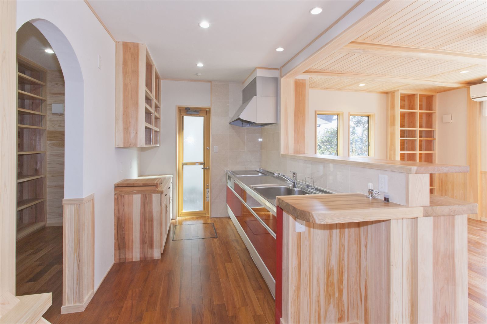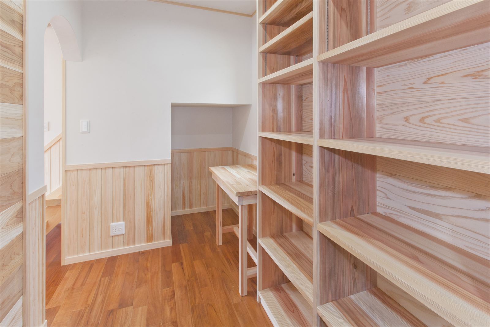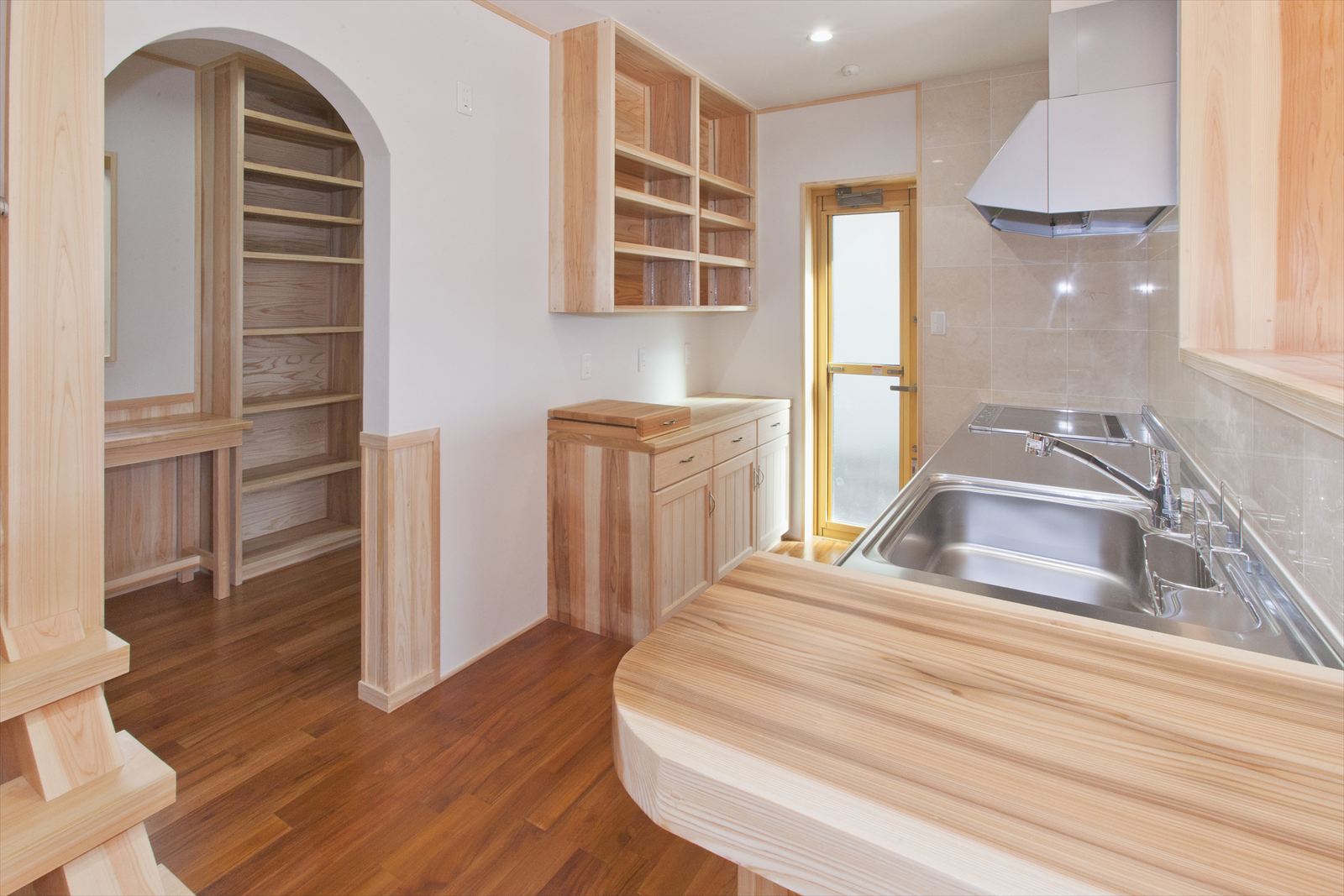 ・キッチンの後ろにワーキングデスクを兼ねたパントリー