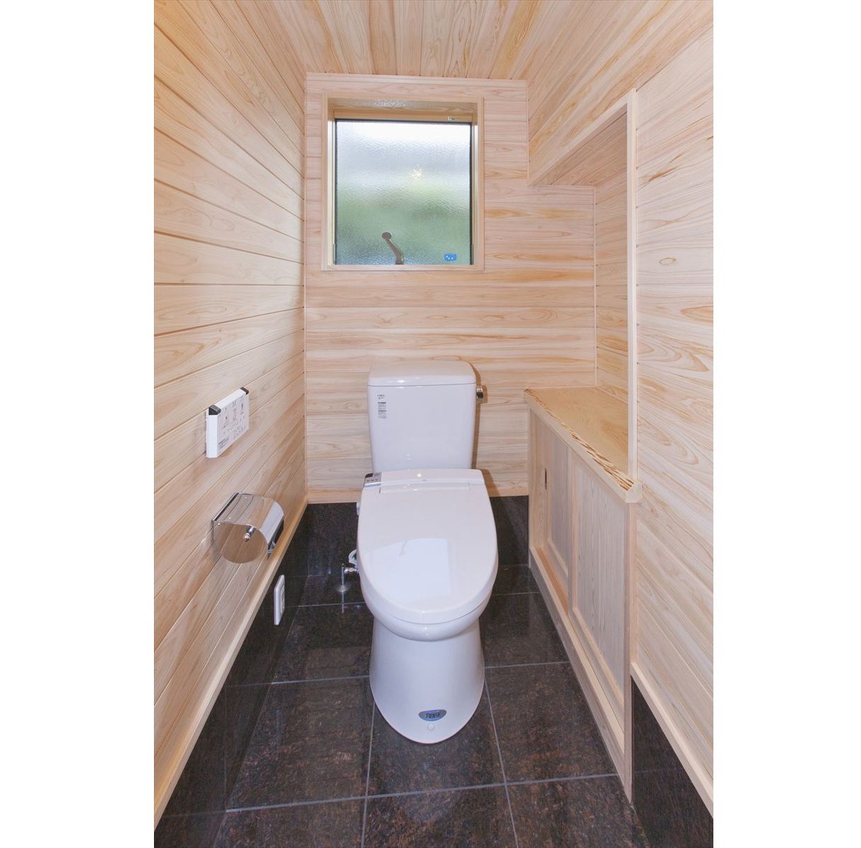 ・1階トイレには、桧と御影石を使用