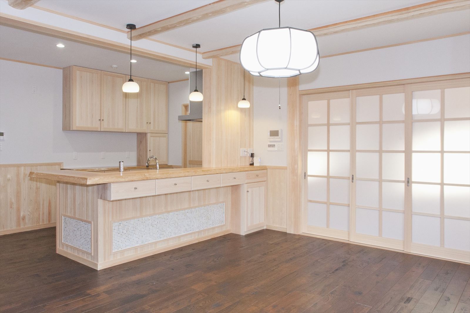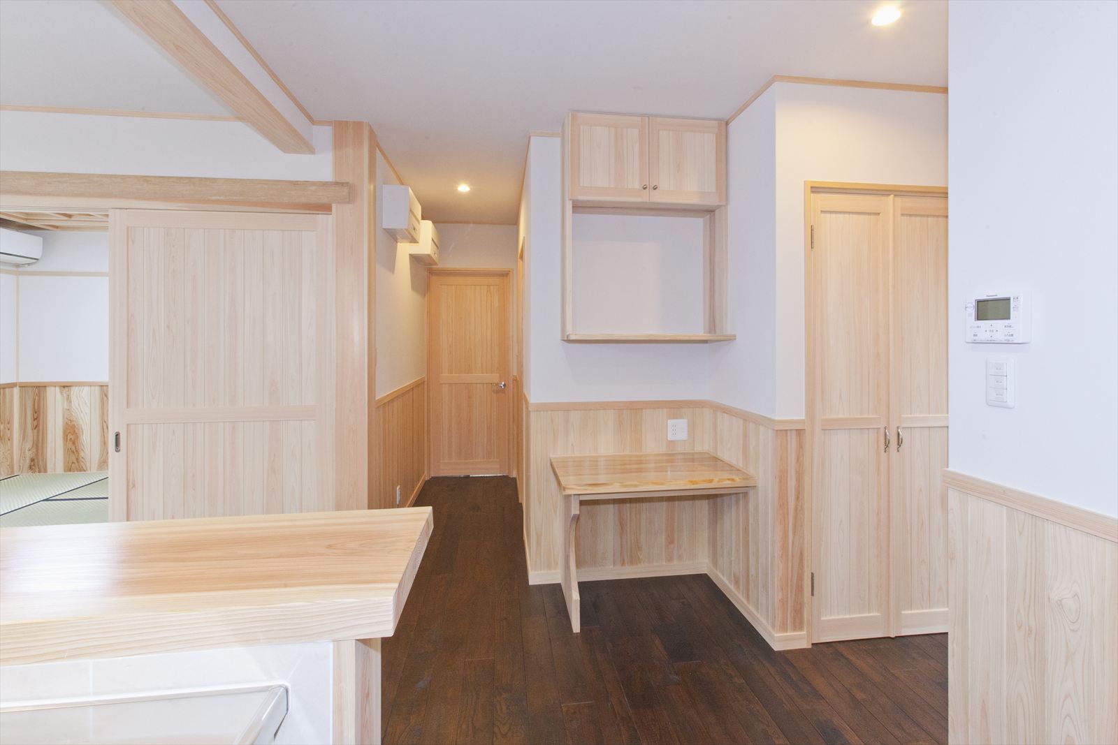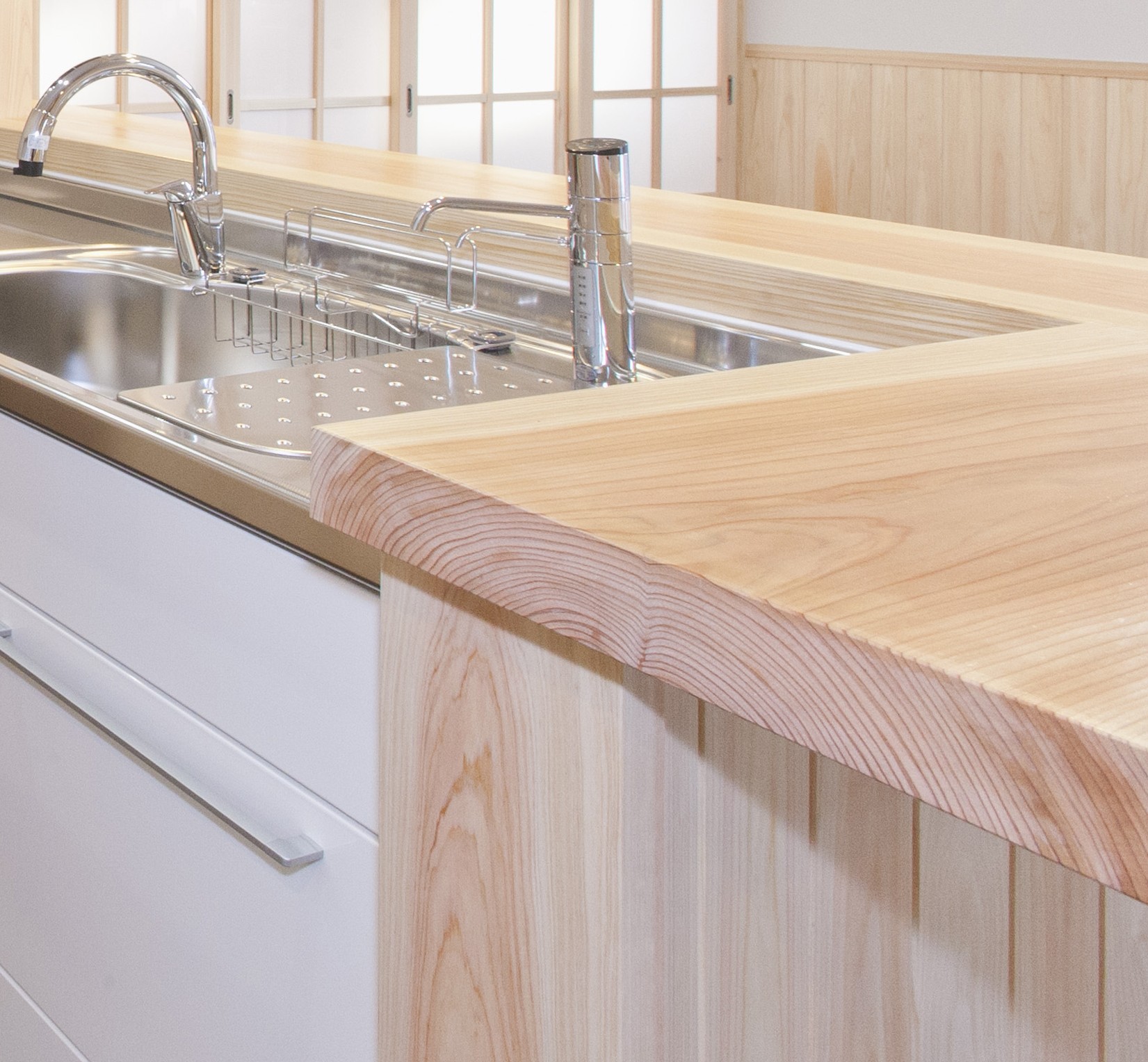 ・キッチンカウンター天板は、年輪が美しい杉の一枚板