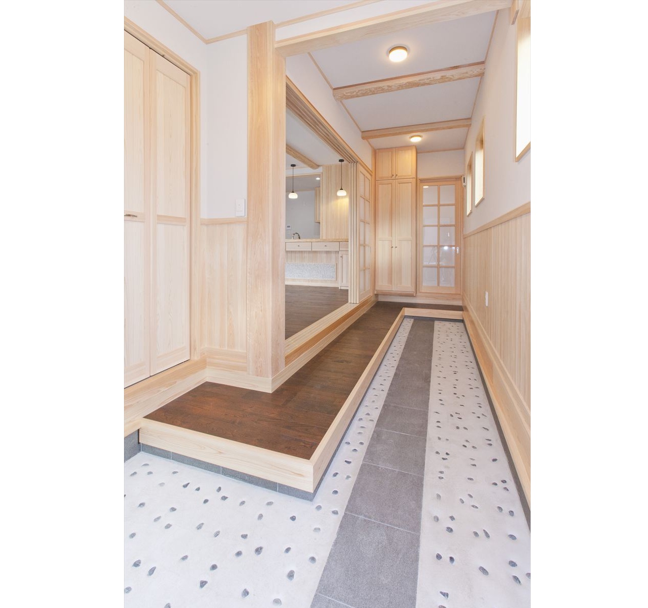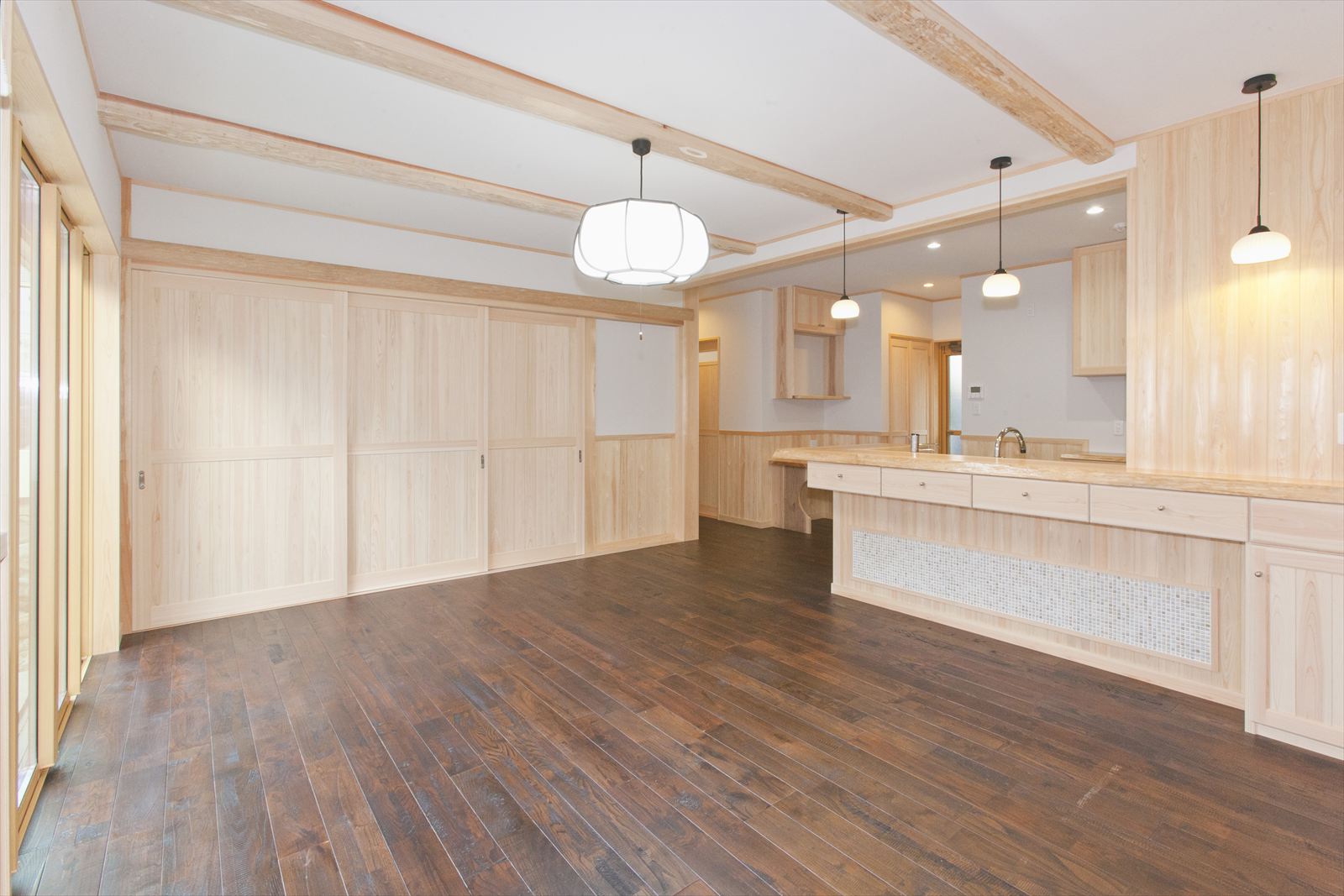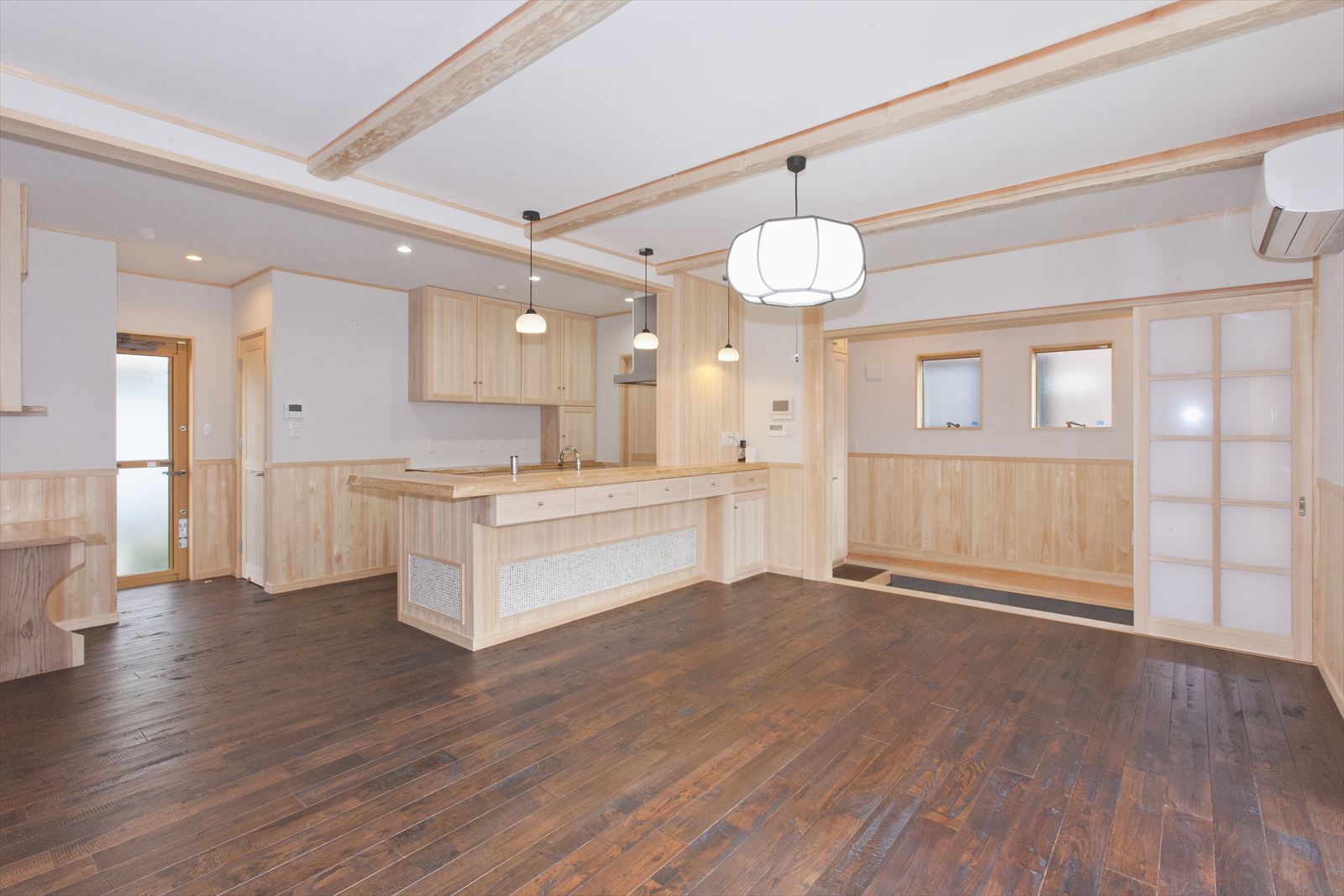 ・キッチンカウンター天板は、年輪が美しい杉の一枚板