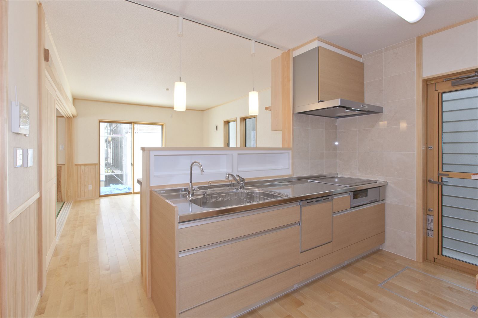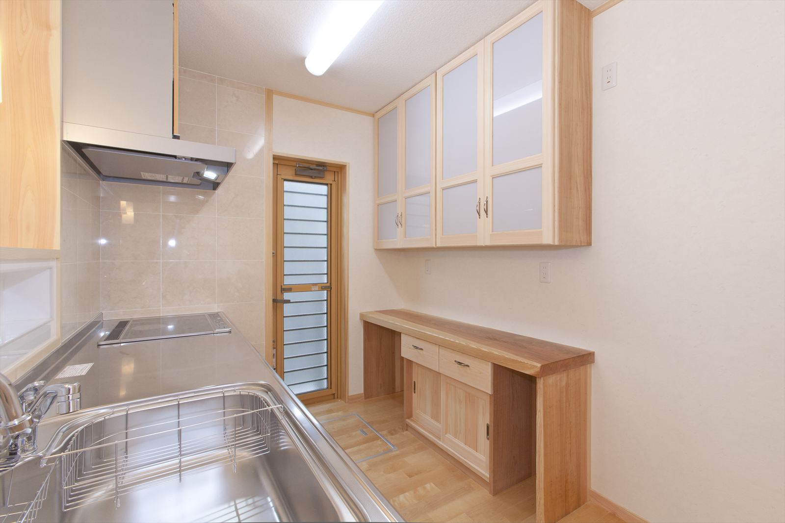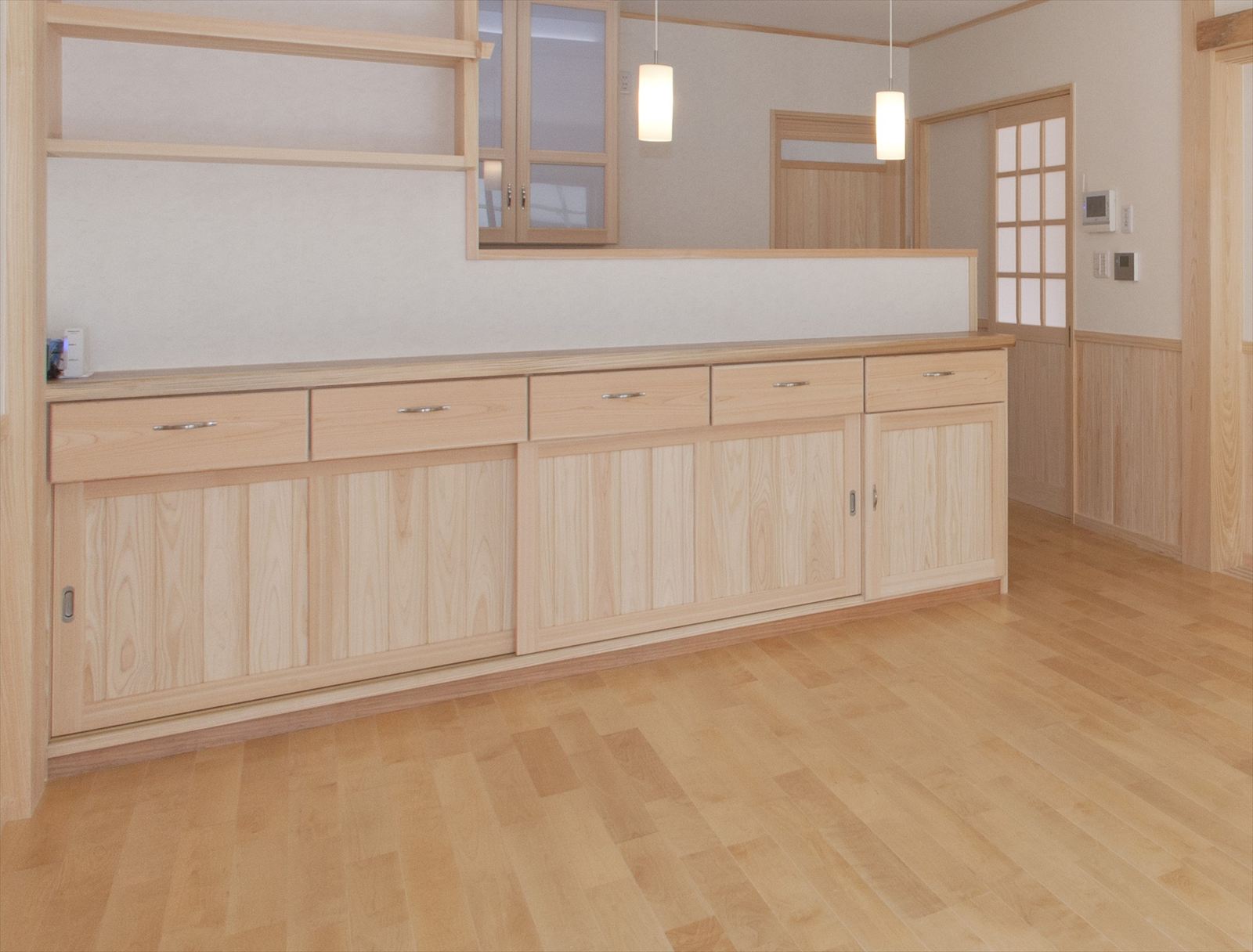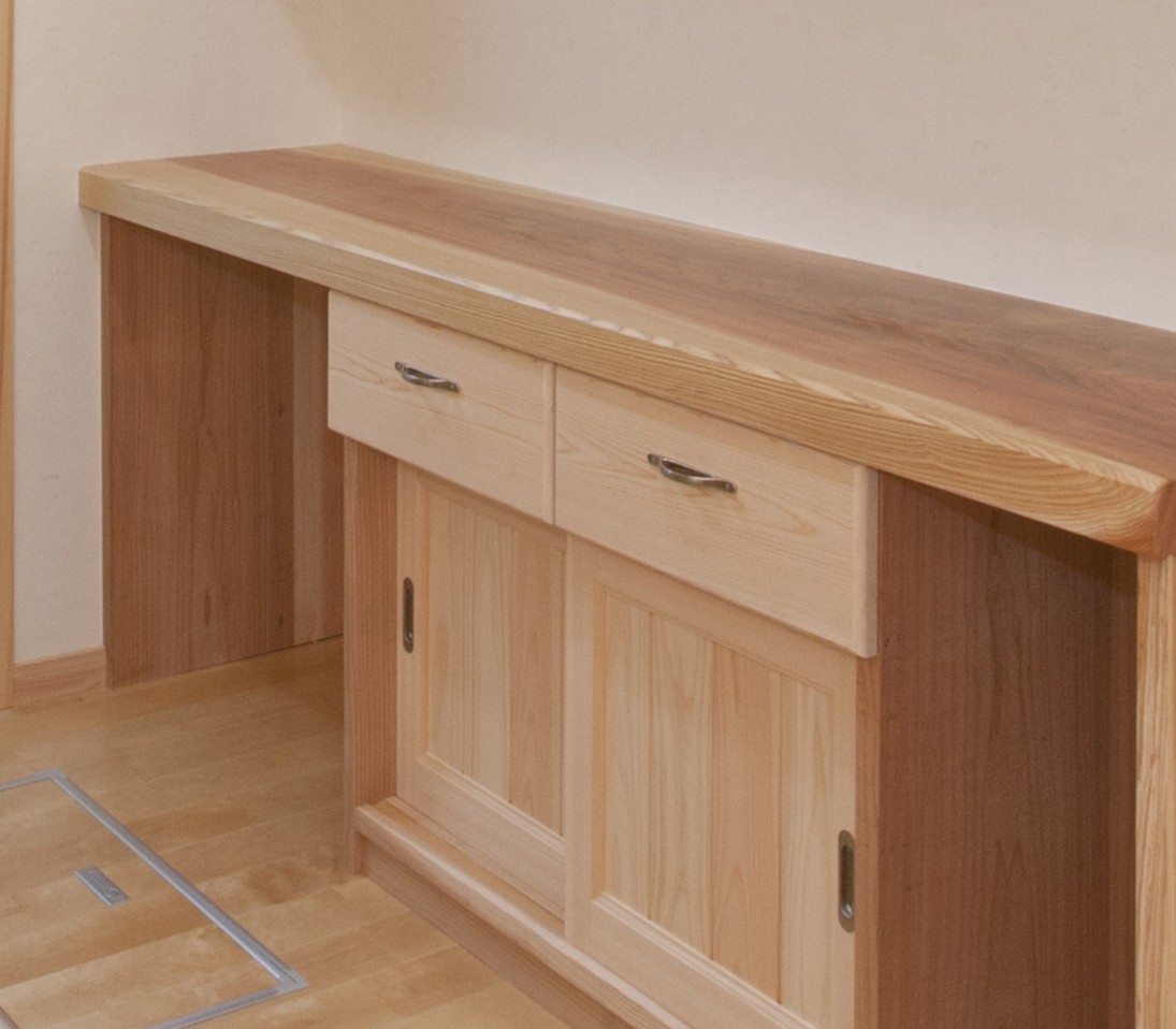 ・キッチンのバック棚は、桧と杉板での造作品