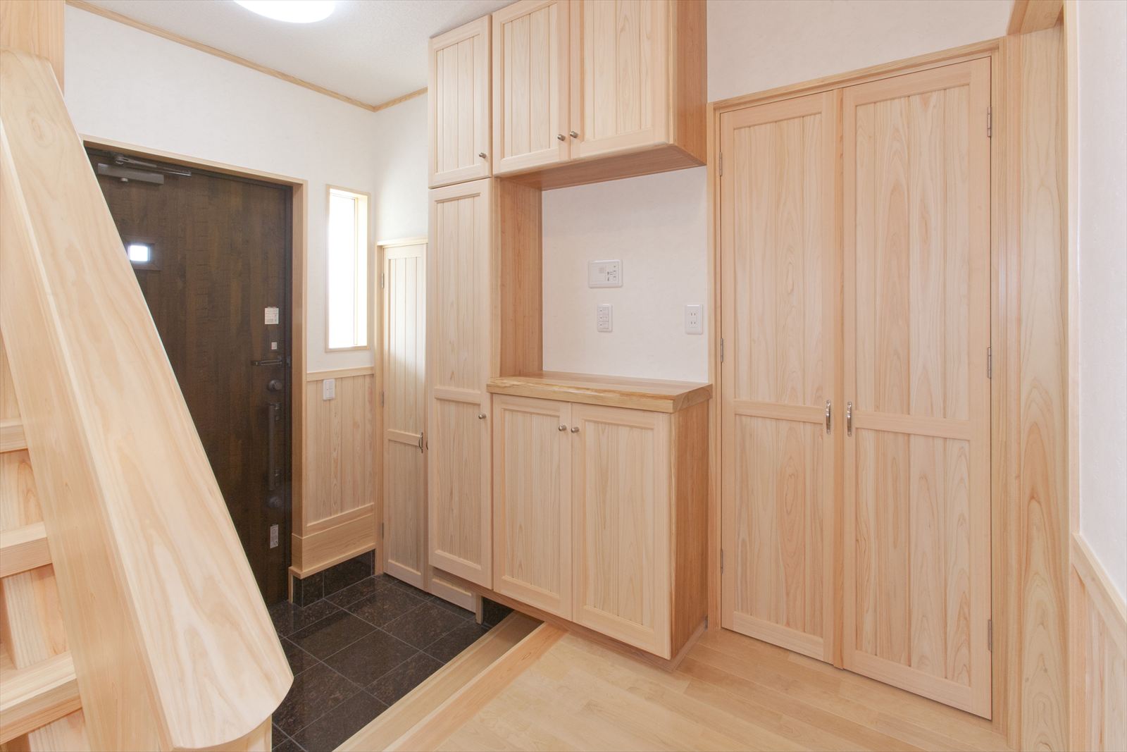・階段下を利用した杉板の収納スペース