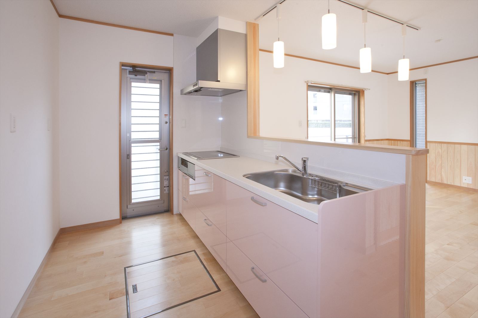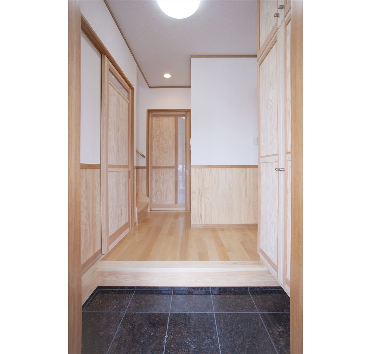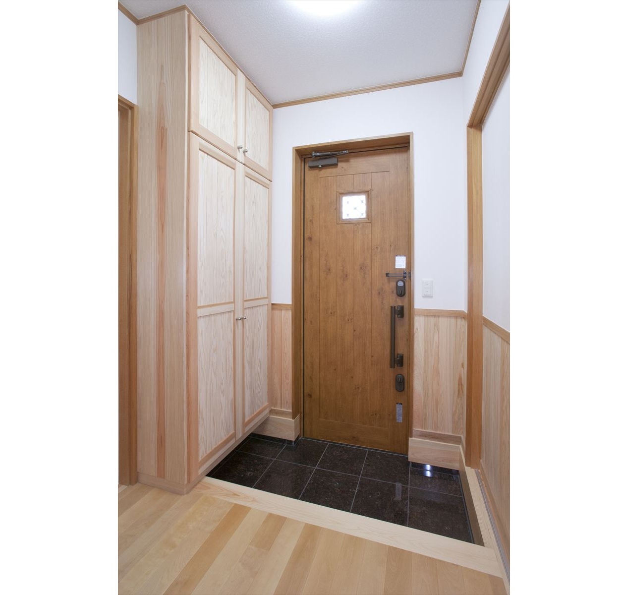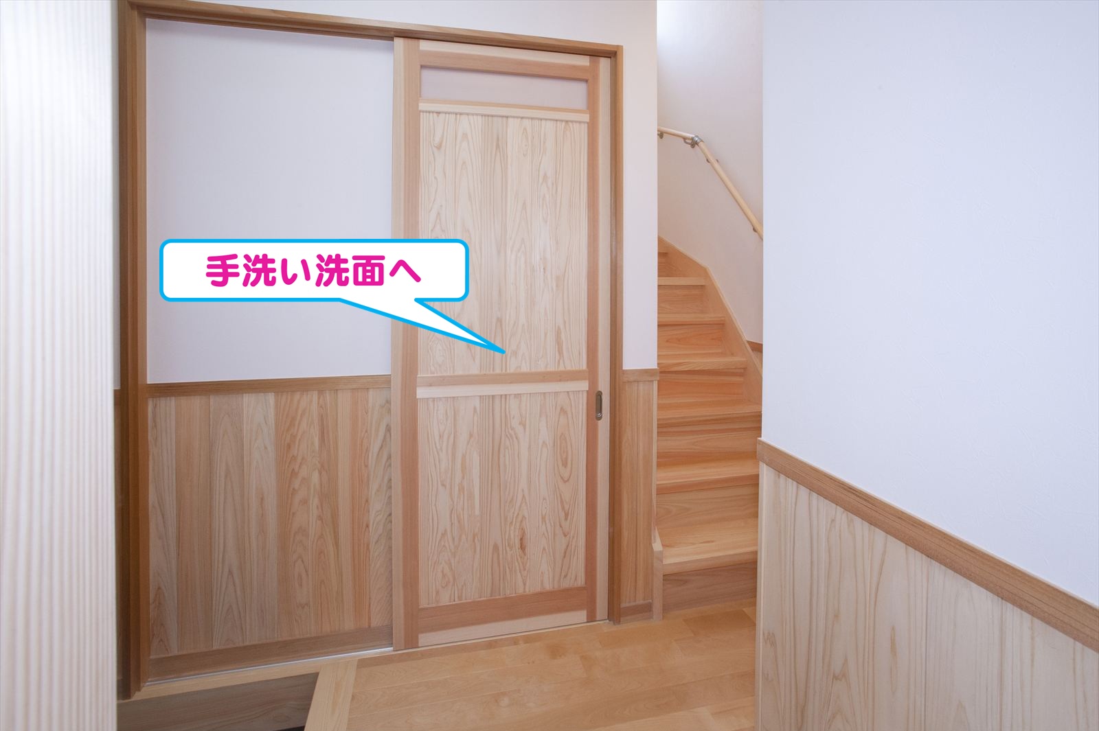 ・玄関ホールの建具の奥には、手洗い洗面台