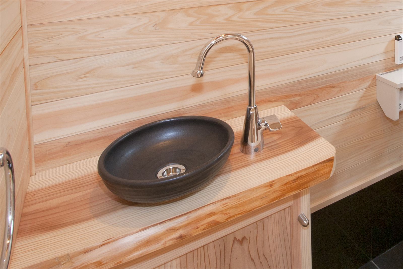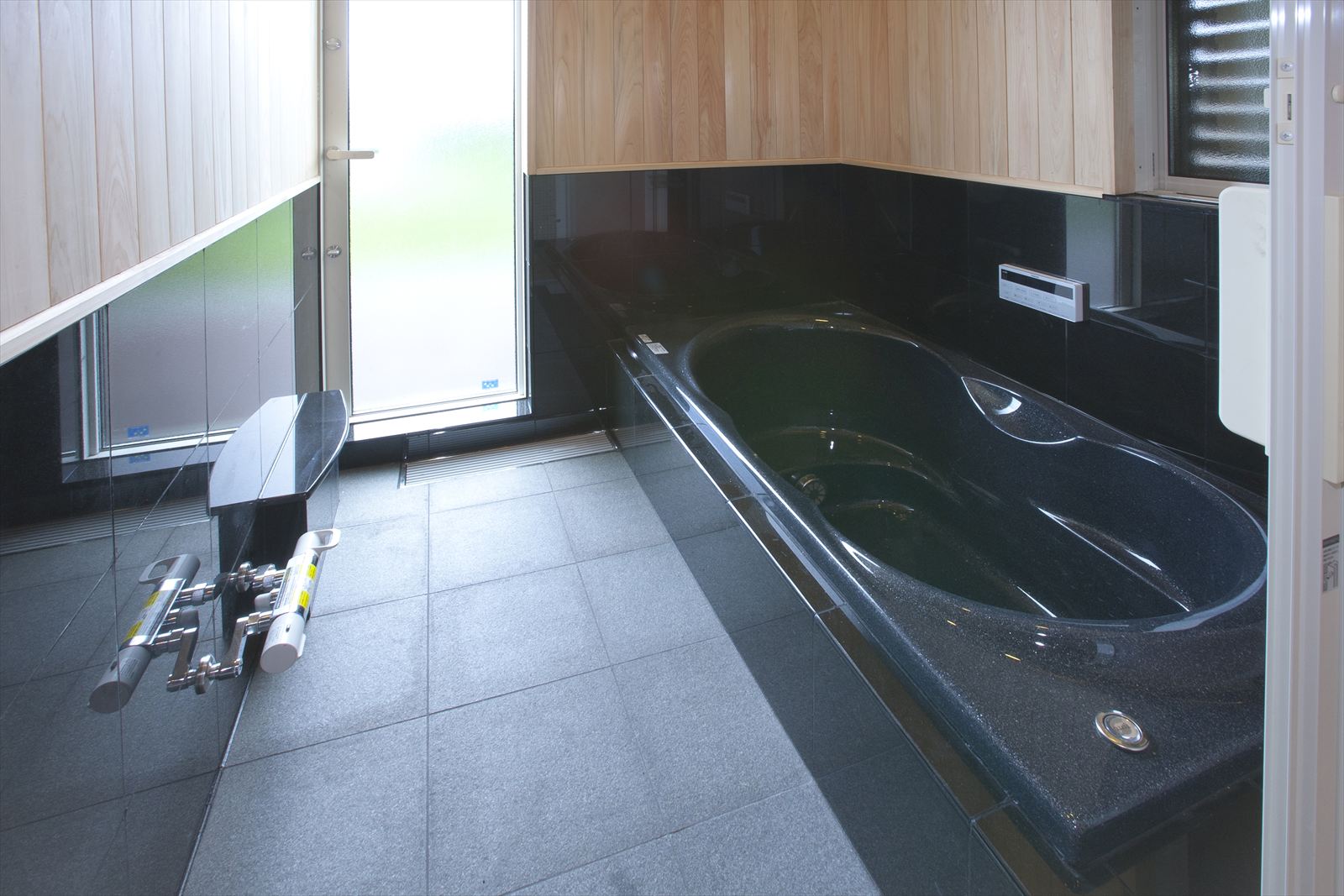 ・浴室は桧と御影石を使った手作り