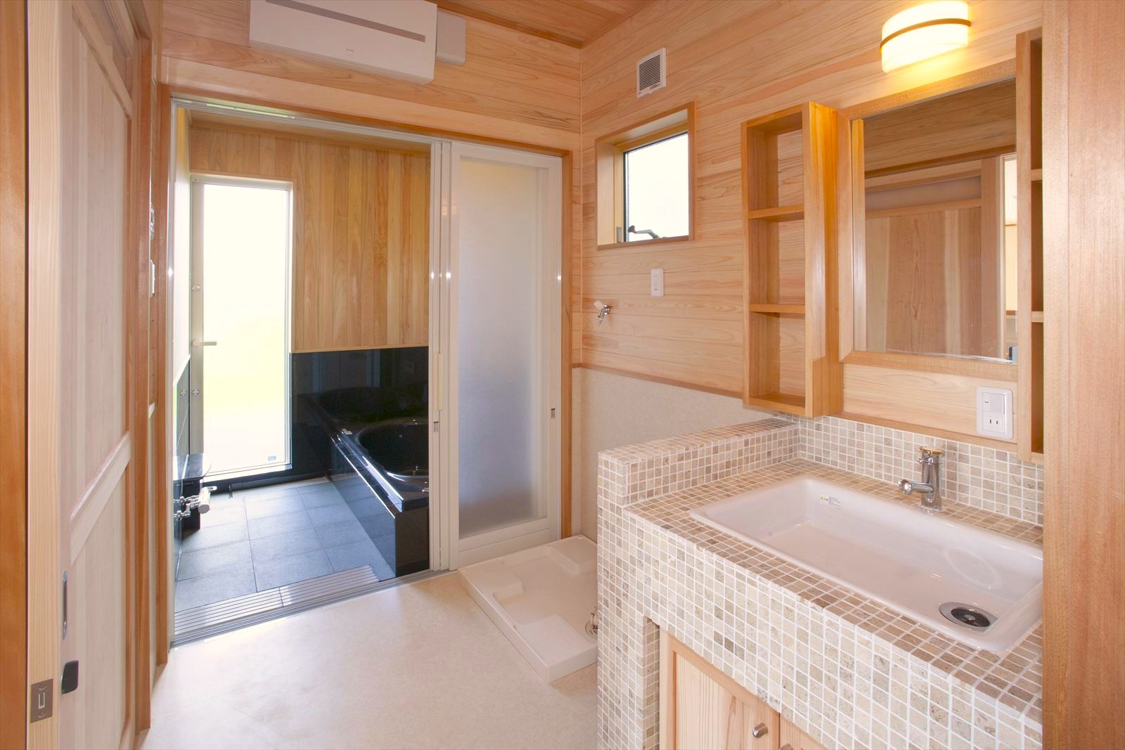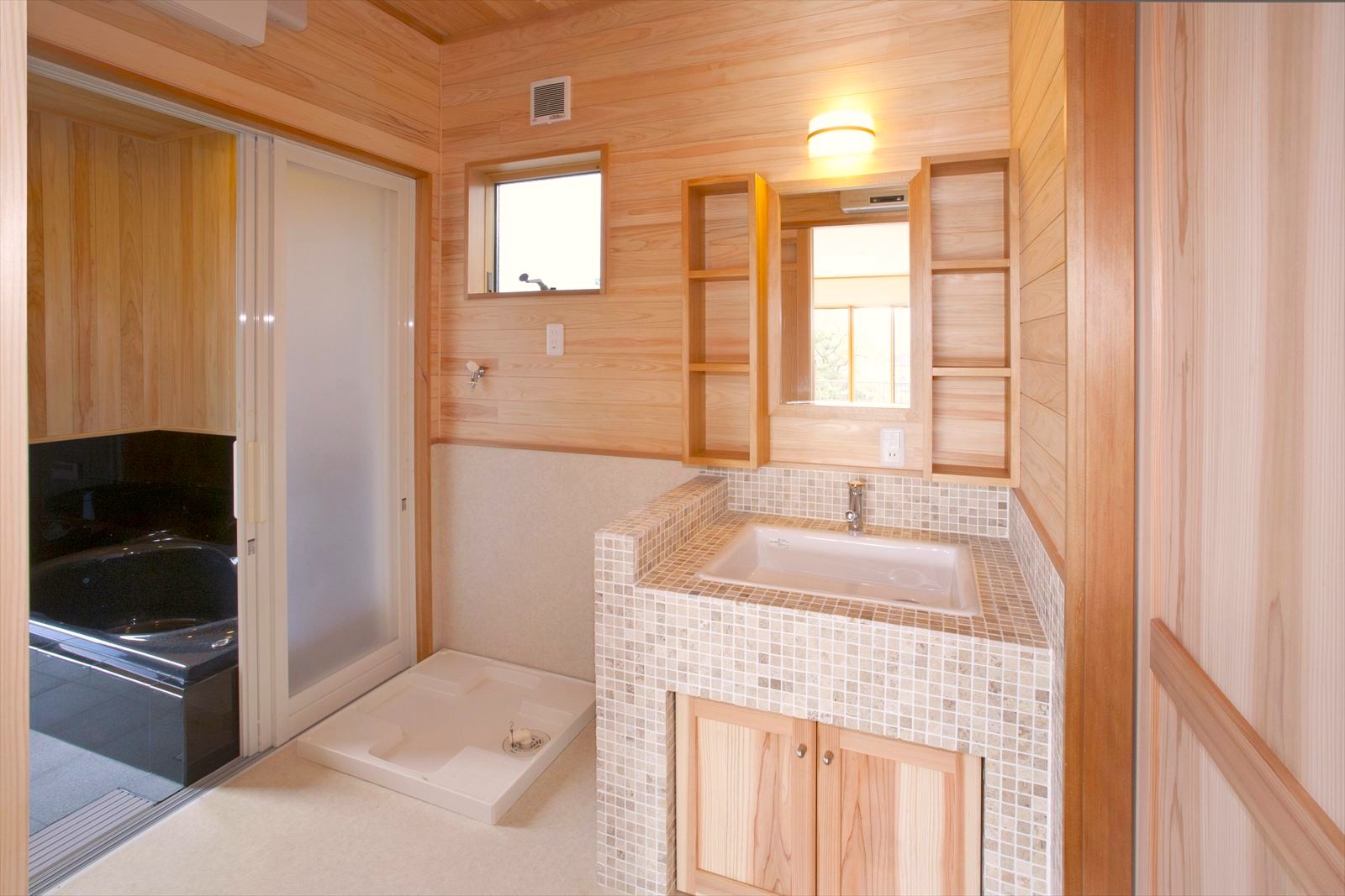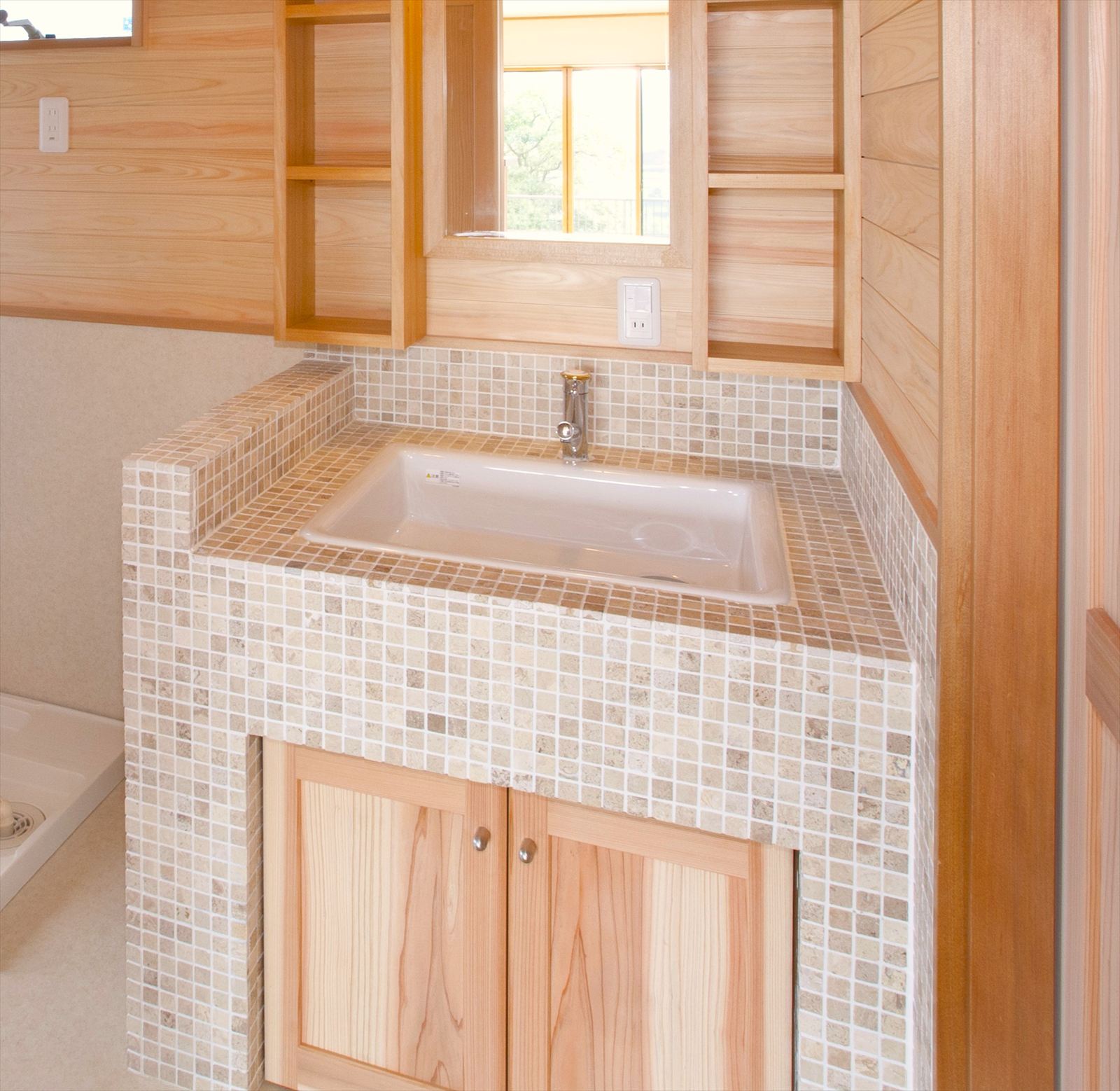 ・モザイクタイルをあしらった洗面化粧台