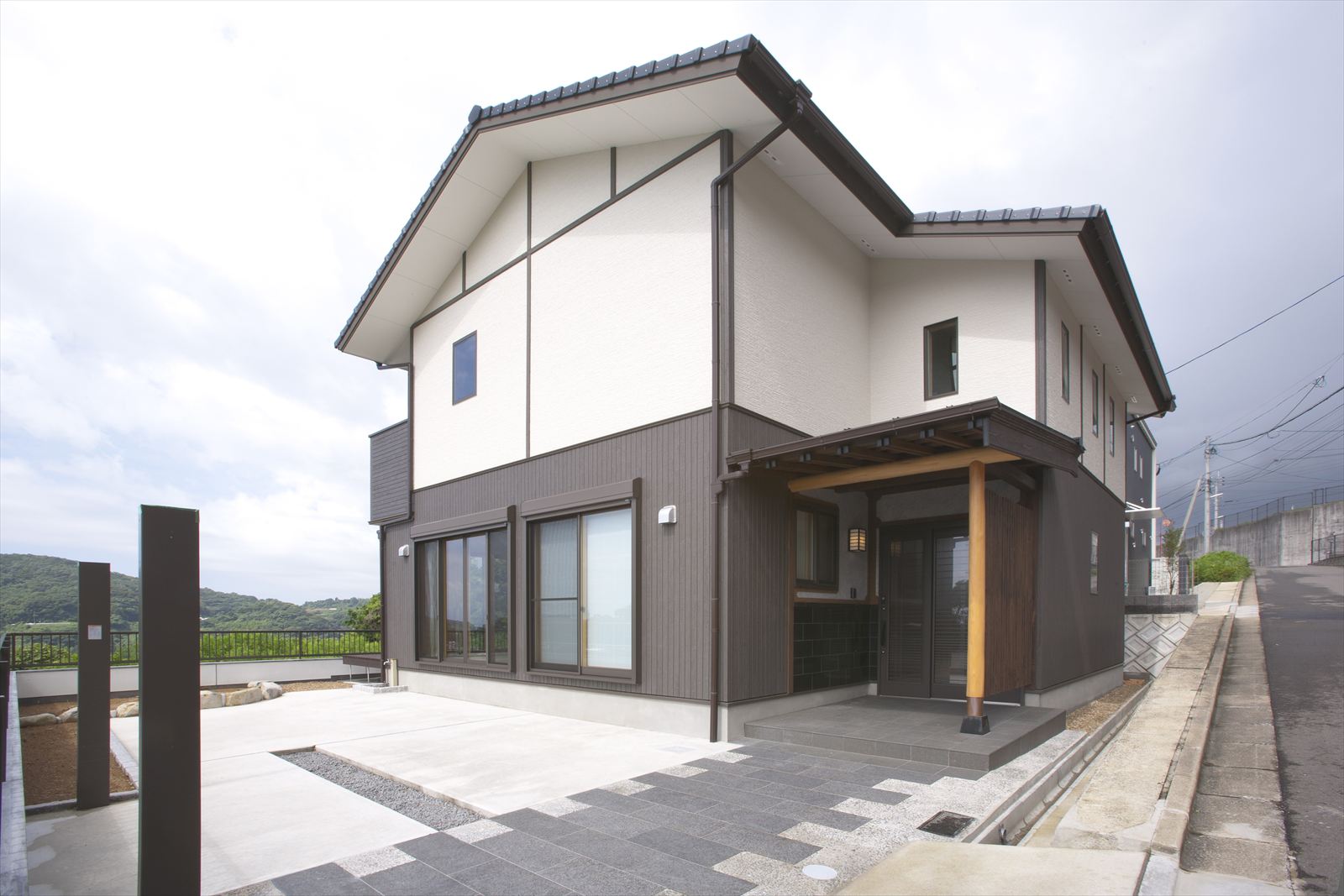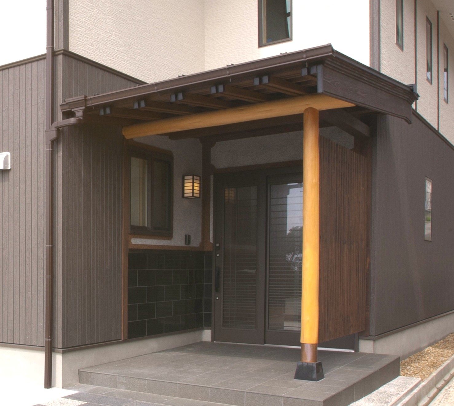 ・玄関ポーチの壁には、御影石