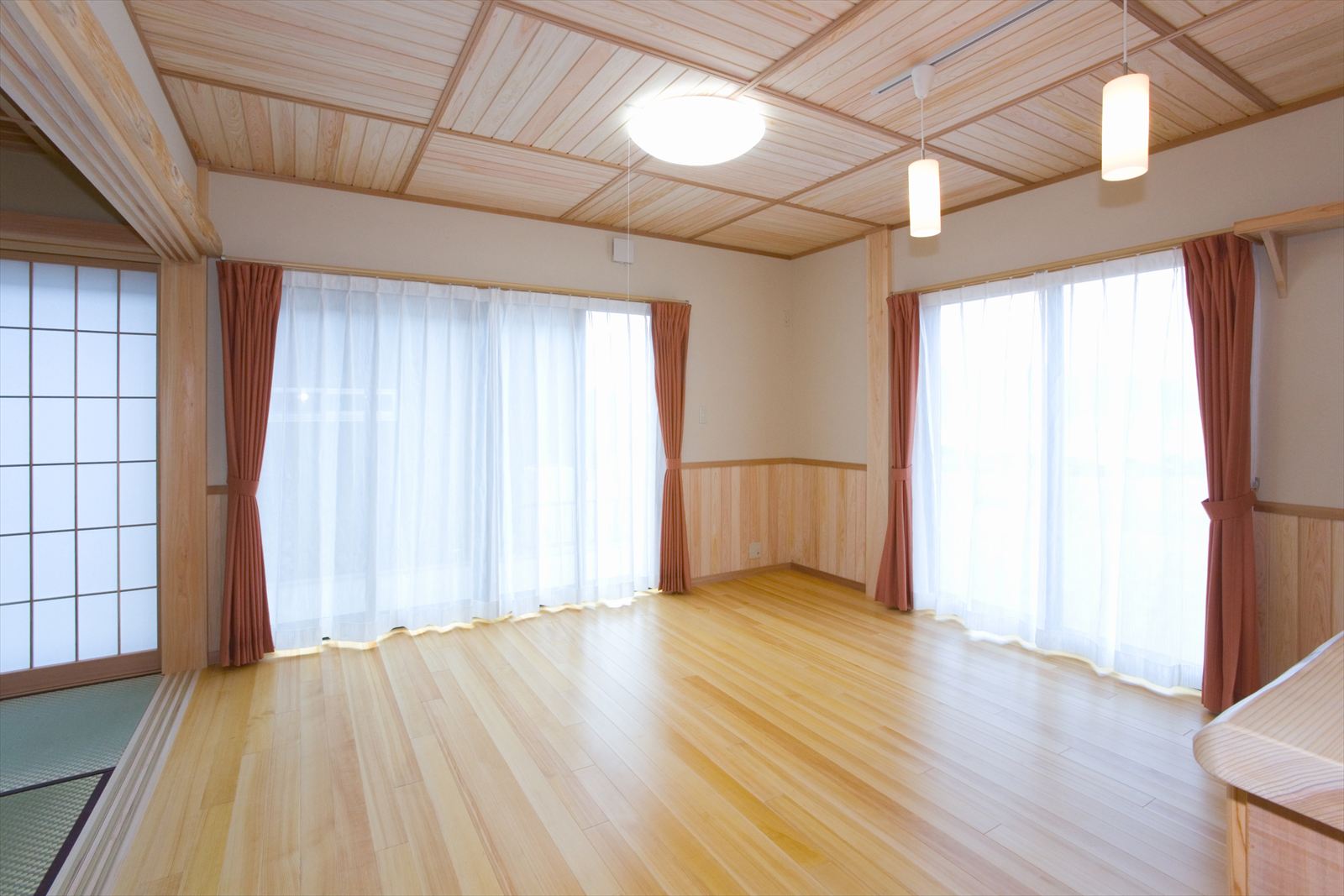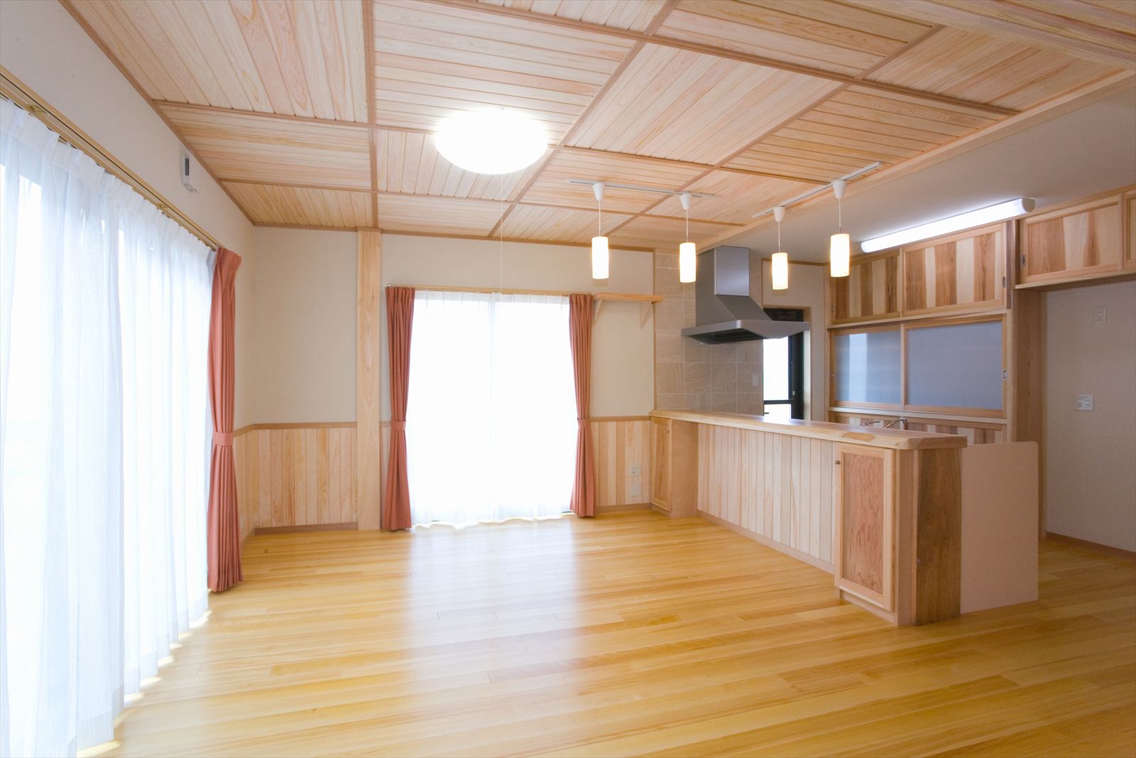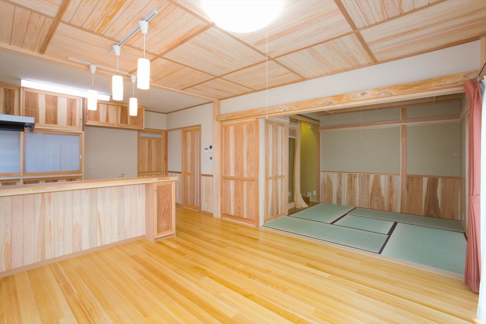 ・桧の天井が印象的なリビング