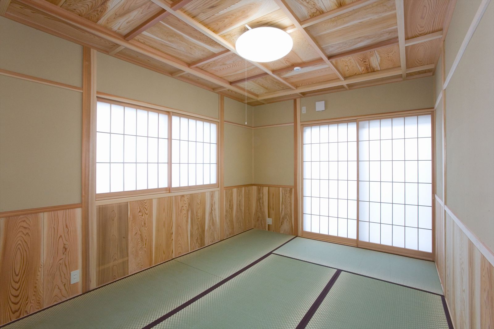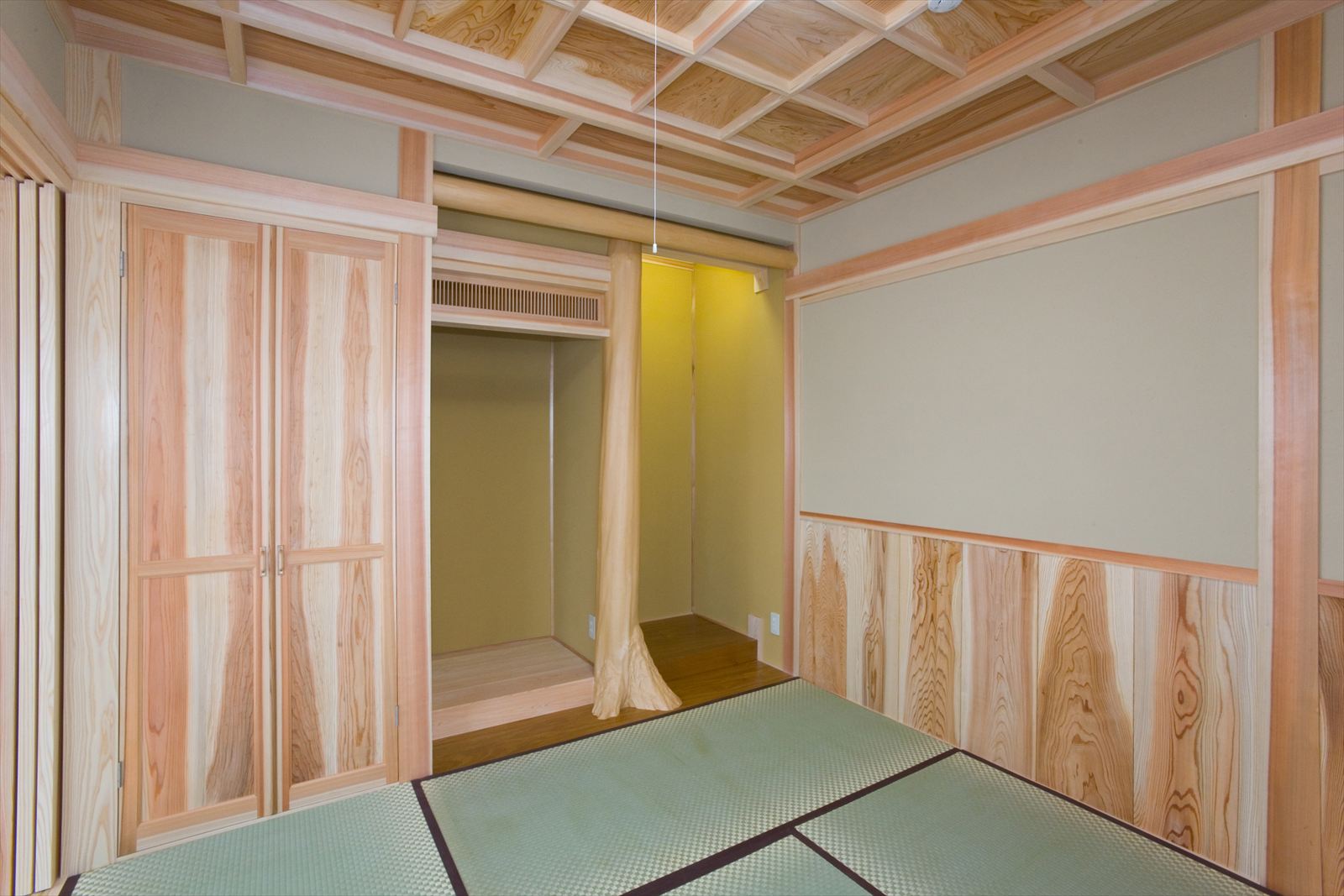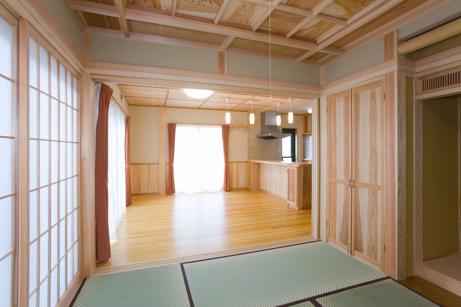 ・桧の天井が印象的なリビング