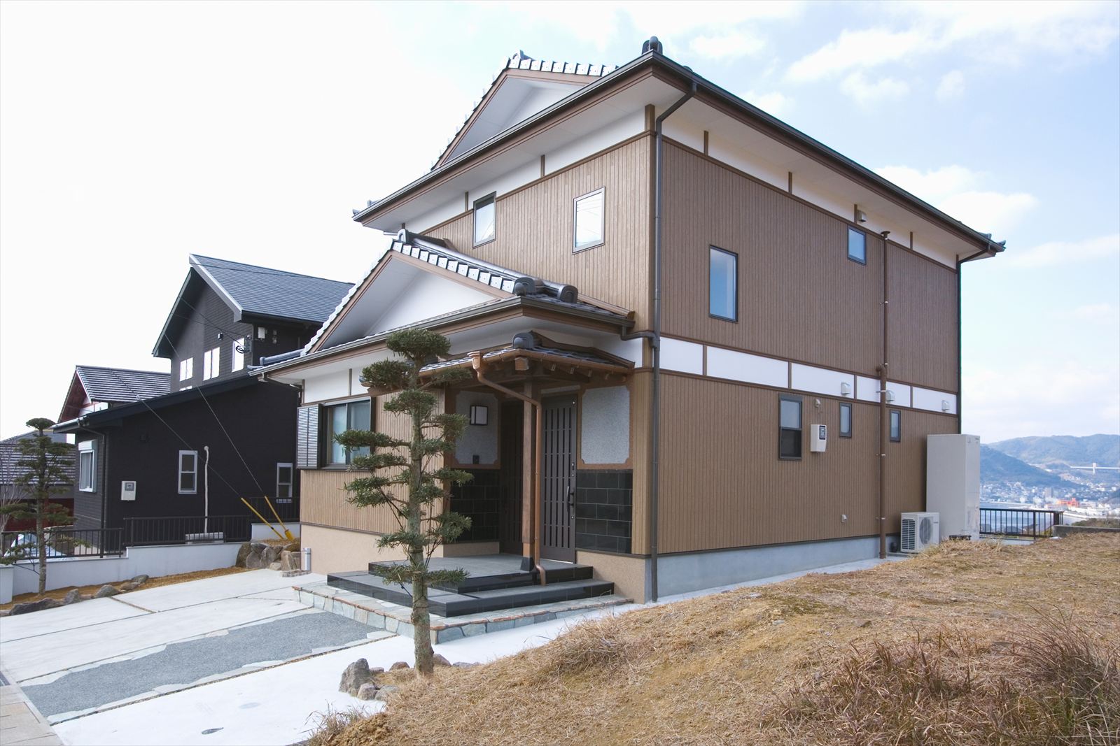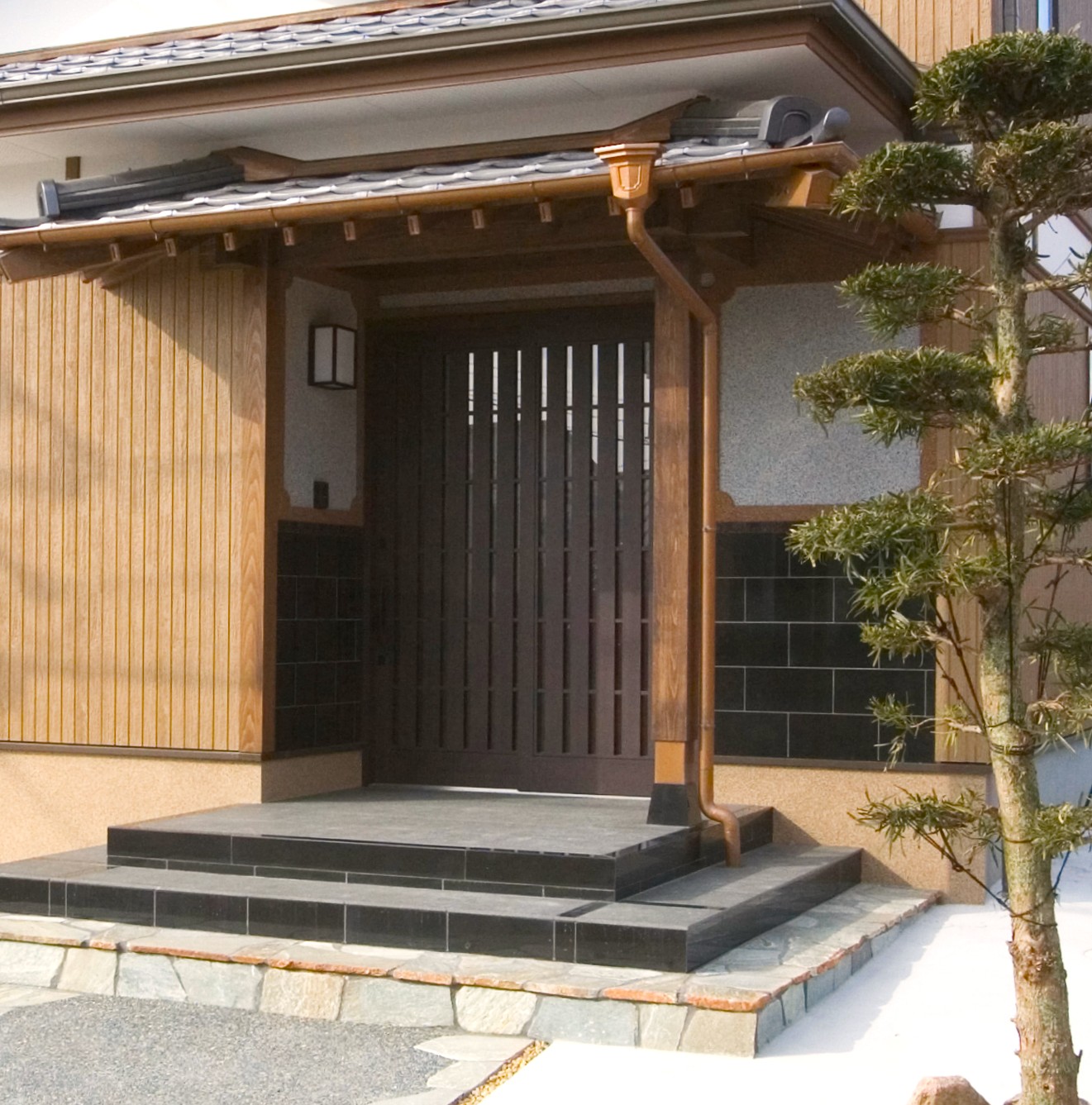 ・玄関ポーチの壁と床には、御影石を使用