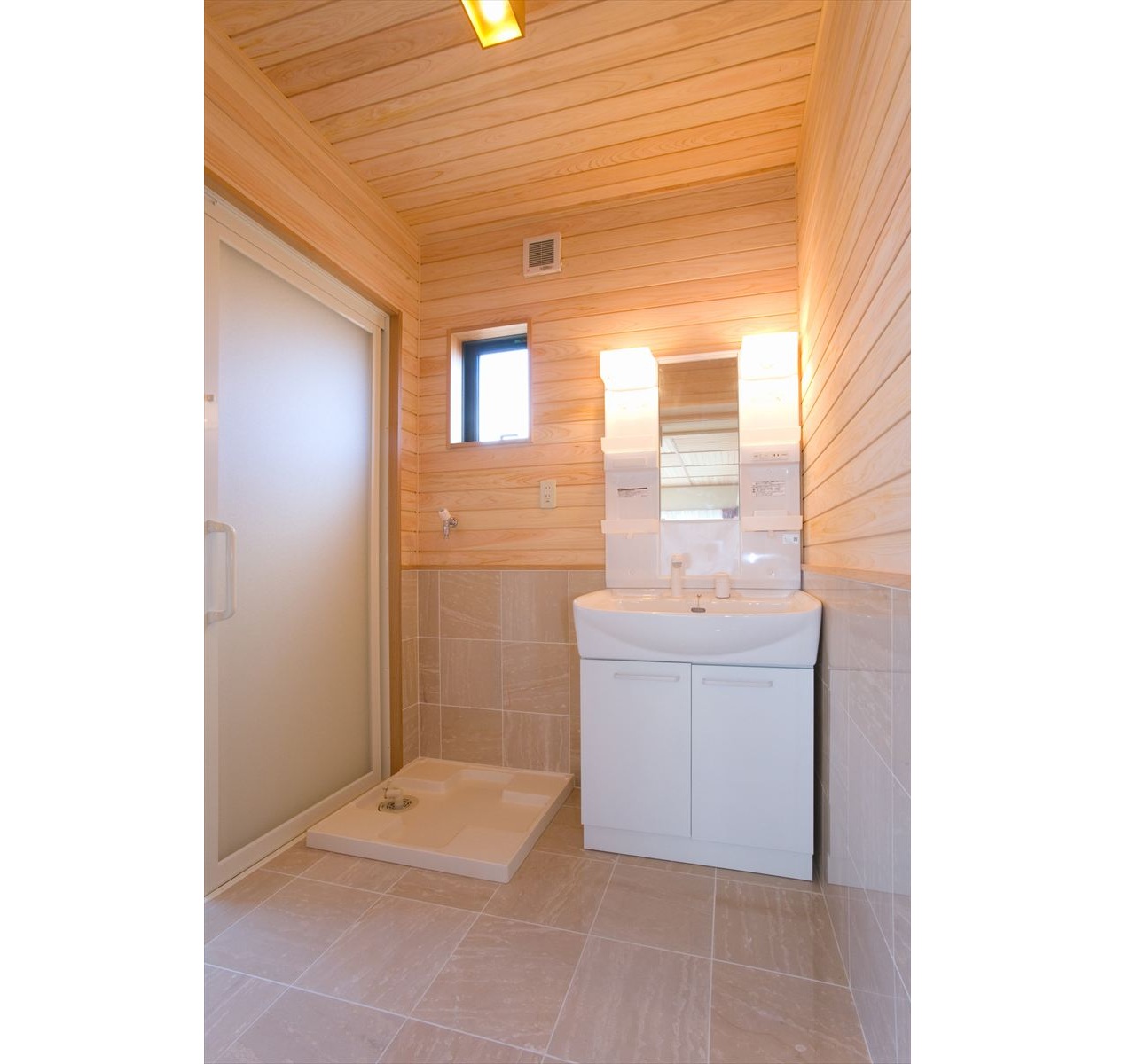 ・洗面脱衣室の腰壁と床は、大理石