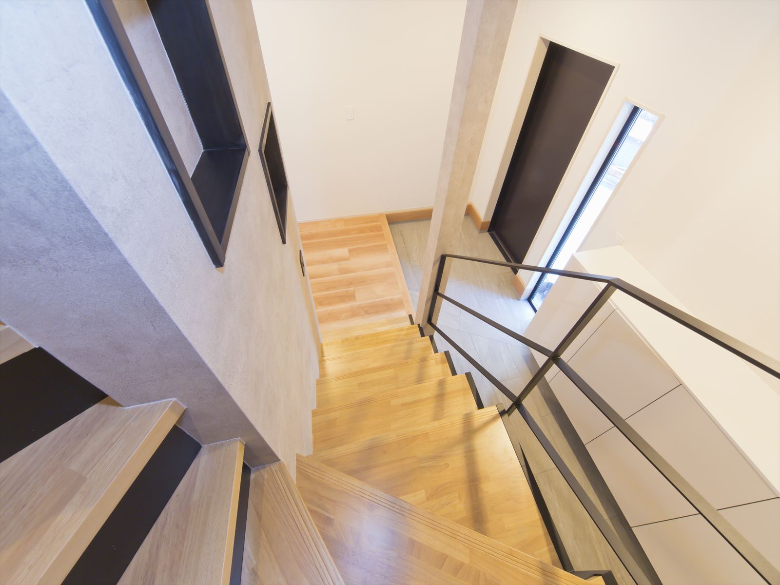 2階リビングを選択されたH様邸。住宅密集地という立地条件でありながら素晴らしい眺望を獲得することができました。室内は、落ち着いた色使いで統一され温かさと癒しに包まれています。リビングにあるスキップフロアでは、宿題をしたり、本を読んだりとスタディーコーナーとして使ったり、ワーキングスペースとしても大活躍です。